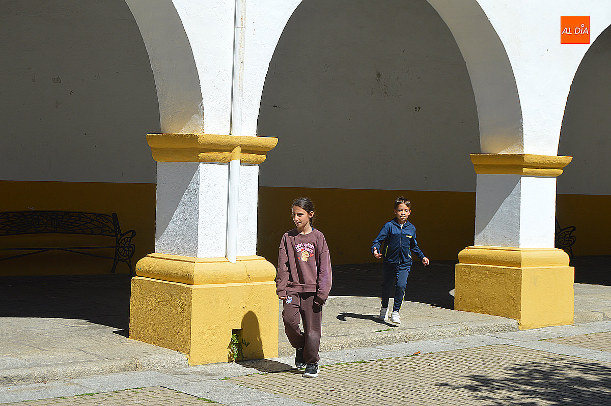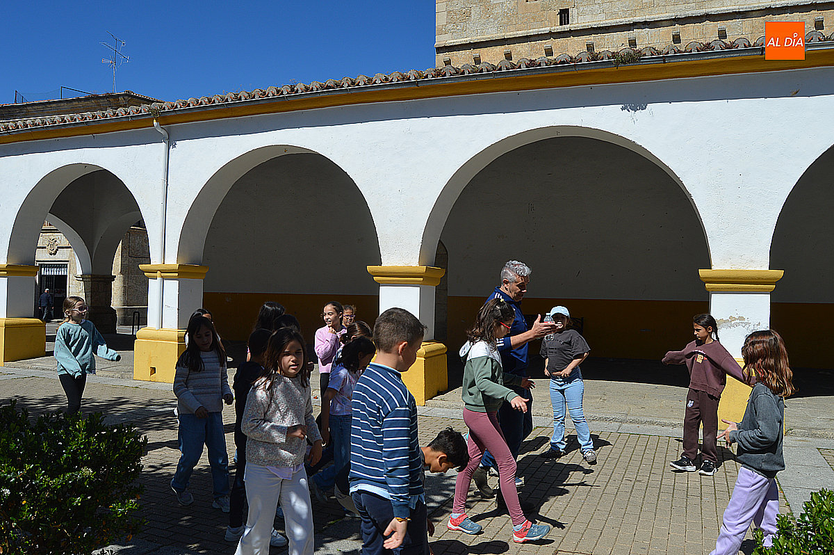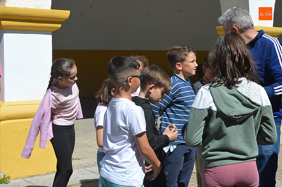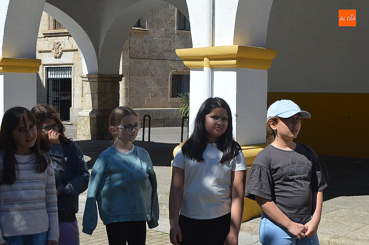 Los estudiantes de tercero de Primaria de los colegios San Francisco y Miróbriga han cambiado las aulas tradicionales por distintos espacios históricos del municipio en una jornada educativa conjunta que ha sacado a 80 alumnos a las calles de la localidad. La iniciativa busca acercar la historia local de forma dinámica, fomentando la interacción entre centros y apostando por una metodología más participativa y práctica que sustituye temporalmente a los libros de texto.