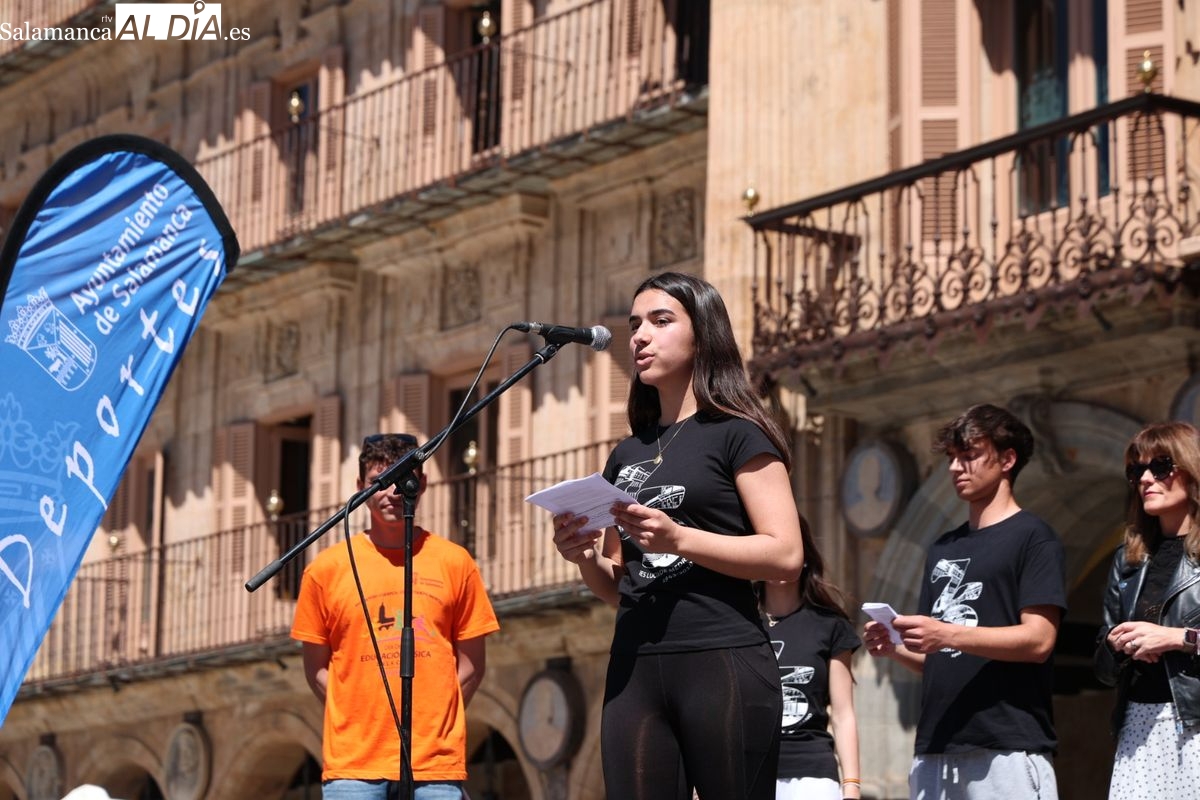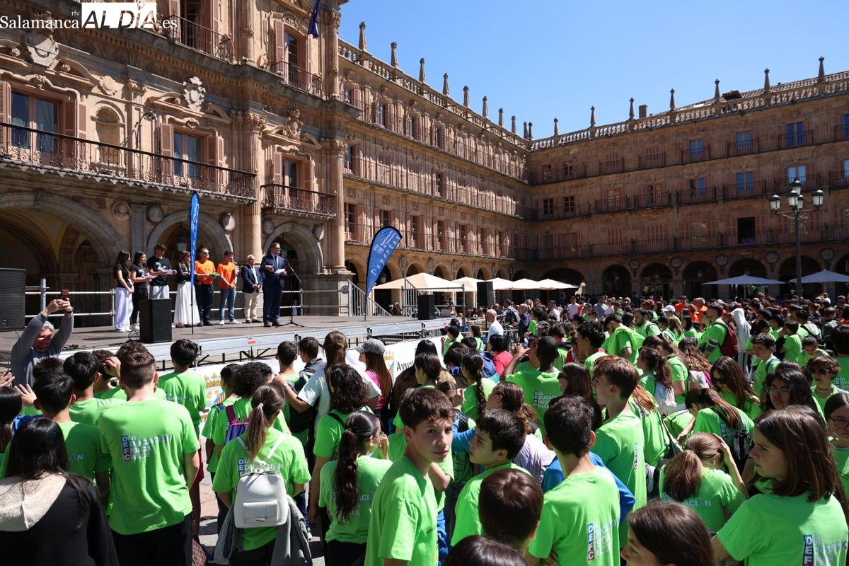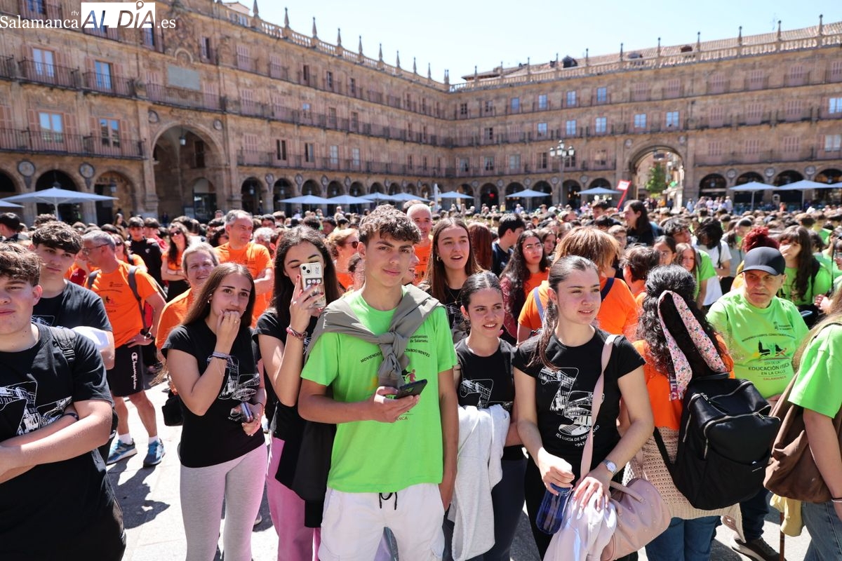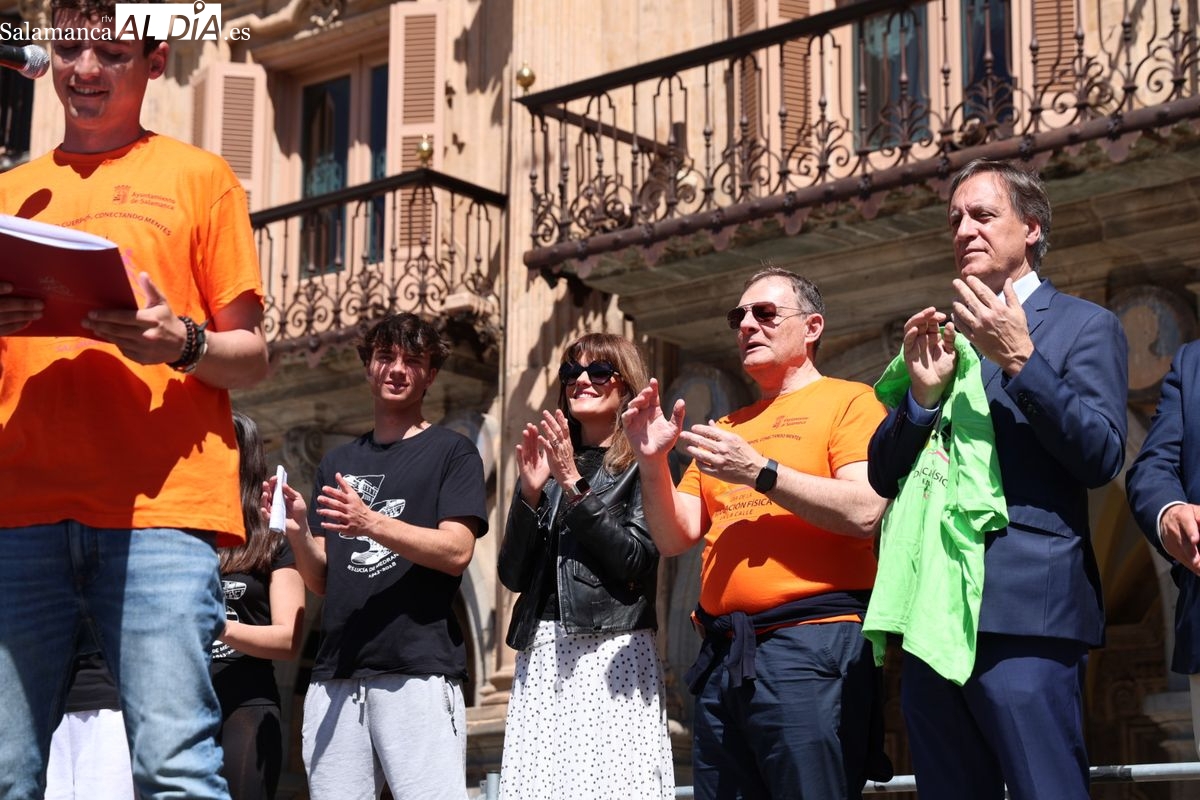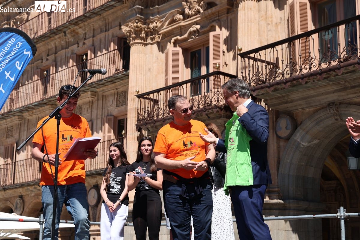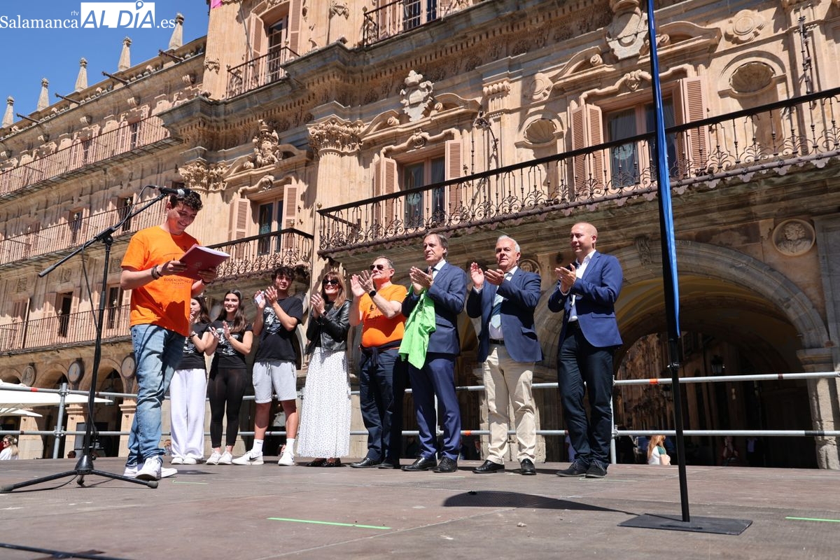 El punto álgido de la celebración ha tenido lugar en la Plaza Mayor, que ha acogido el acto central. El alcalde de Salamanca, Carlos García Carbayo, ha participado en este encuentro para agradecer la implicación de todos los centros y entidades asistentes.