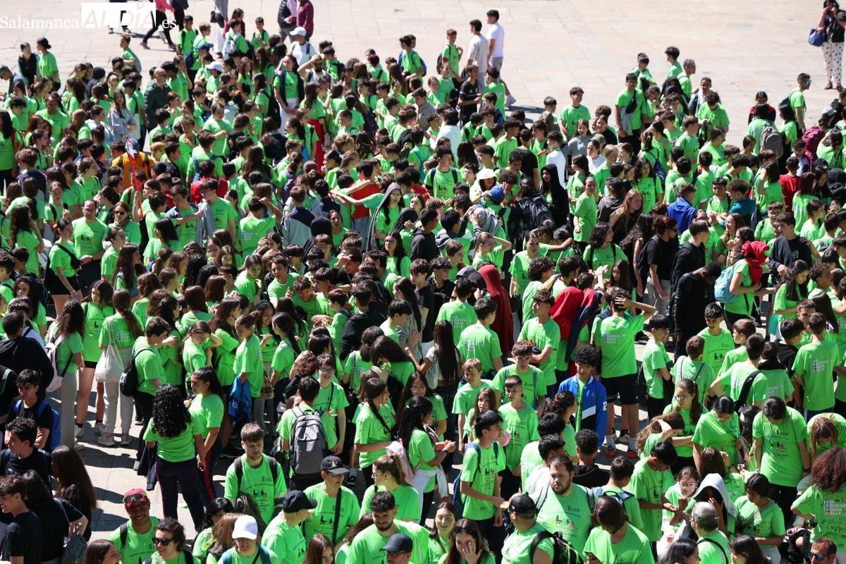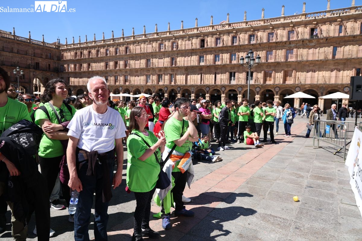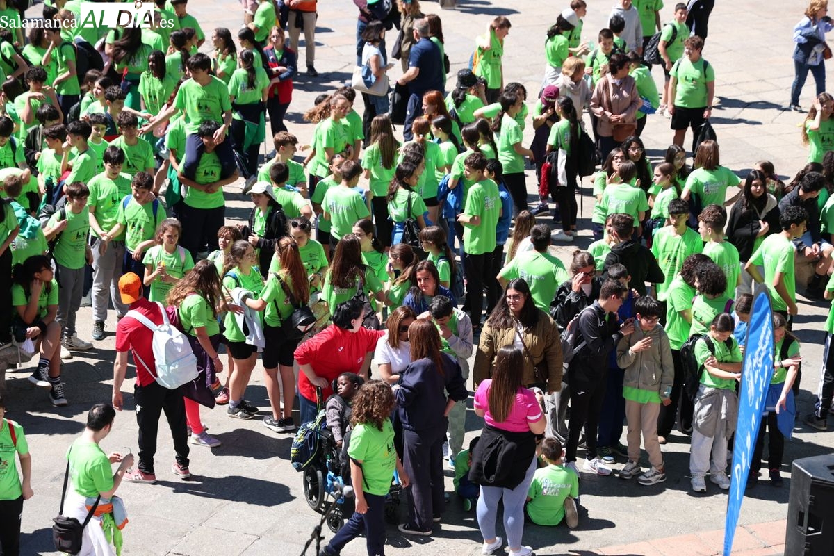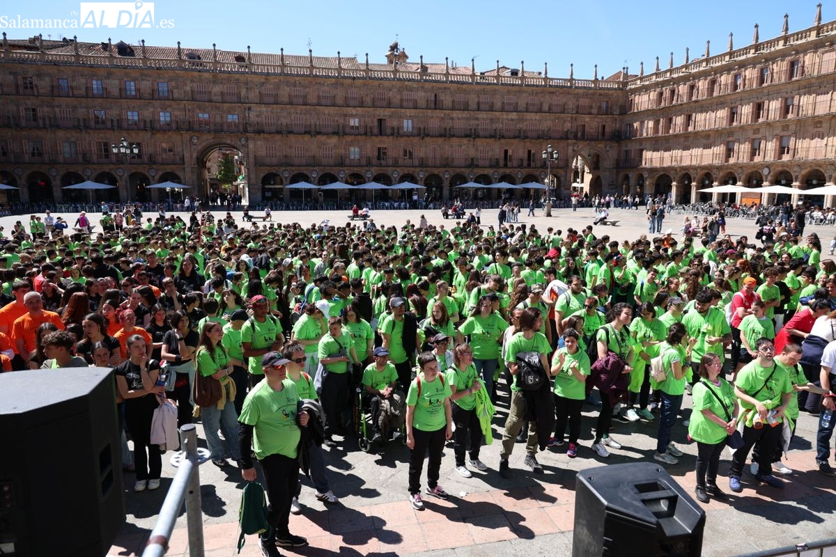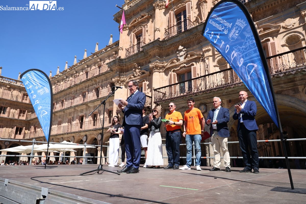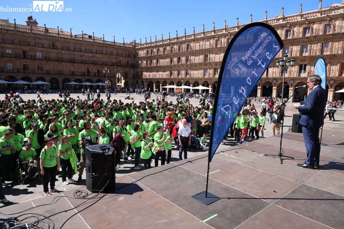 El punto álgido de la celebración ha tenido lugar en la Plaza Mayor, que ha acogido el acto central. El alcalde de Salamanca, Carlos García Carbayo, ha participado en este encuentro para agradecer la implicación de todos los centros y entidades asistentes.