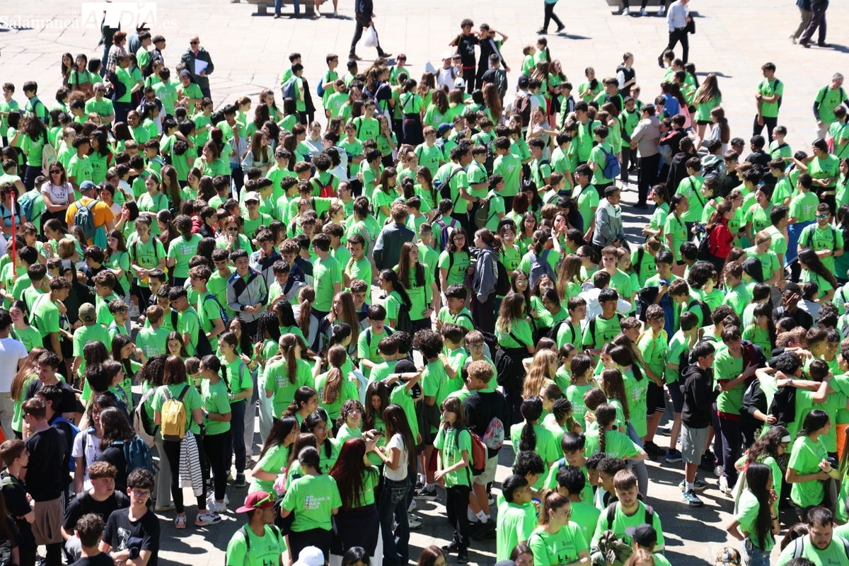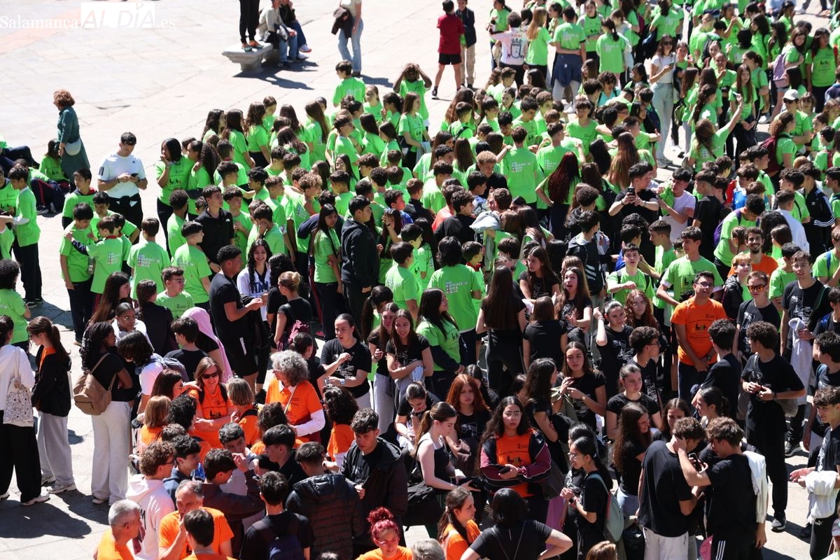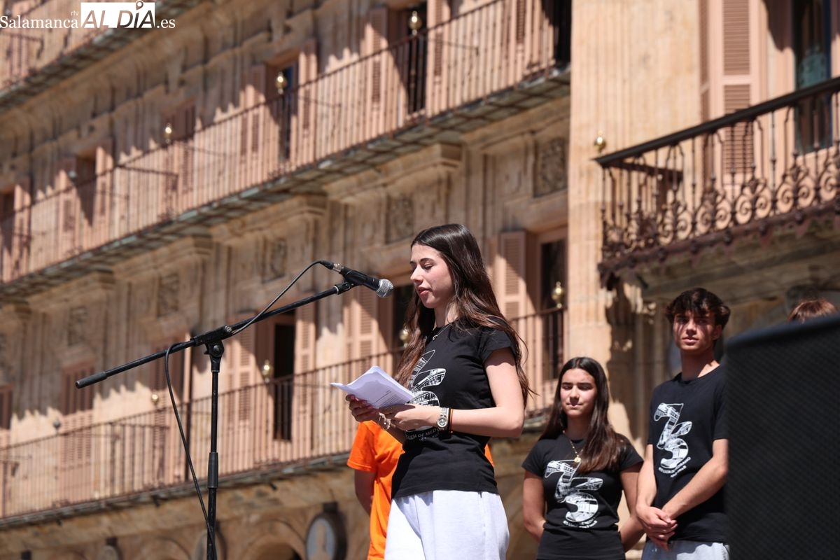 La jornada festiva y reivindicativa en el ágora salmantina ha puesto su broche final con la lectura de un manifiesto a cargo del propio alumnado y la realización de una gran coreografía grupal que ha unido a todos los participantes.
