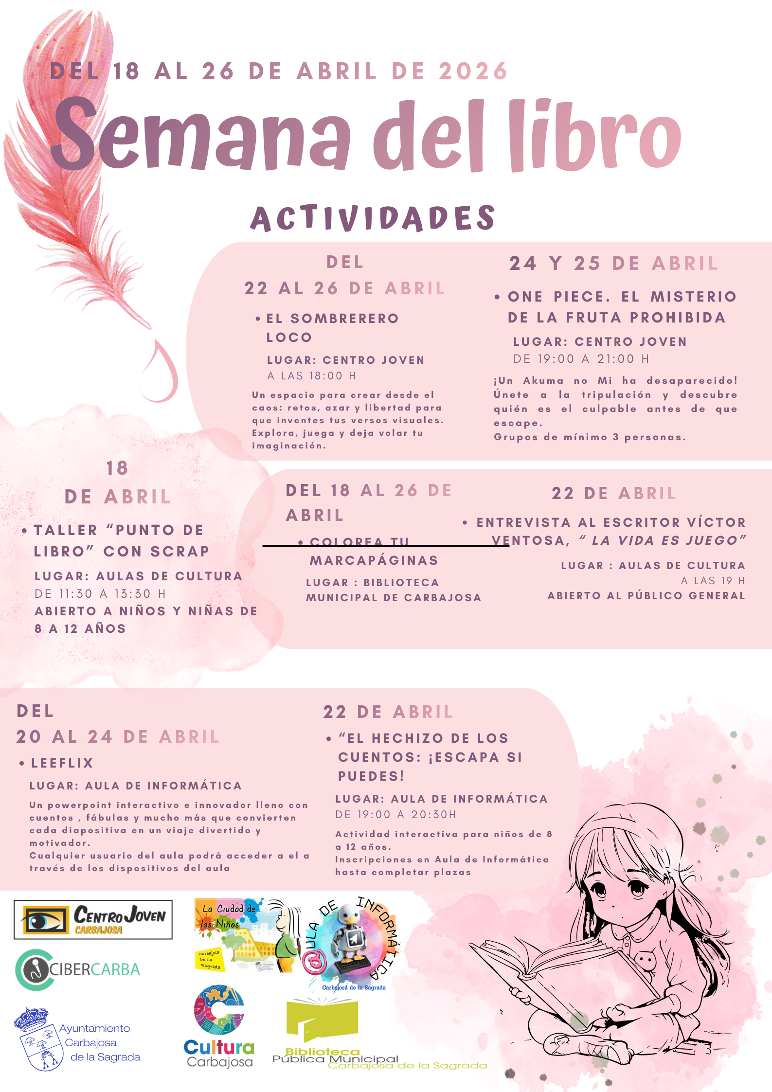 El Ayuntamiento de Carbajosa de la Sagrada se prepara para acoger una nueva edición de la Semana del Libro, un evento cultural que se desarrollará desde este sábado, 18 de abril, hasta el próximo domingo 26 de abril.