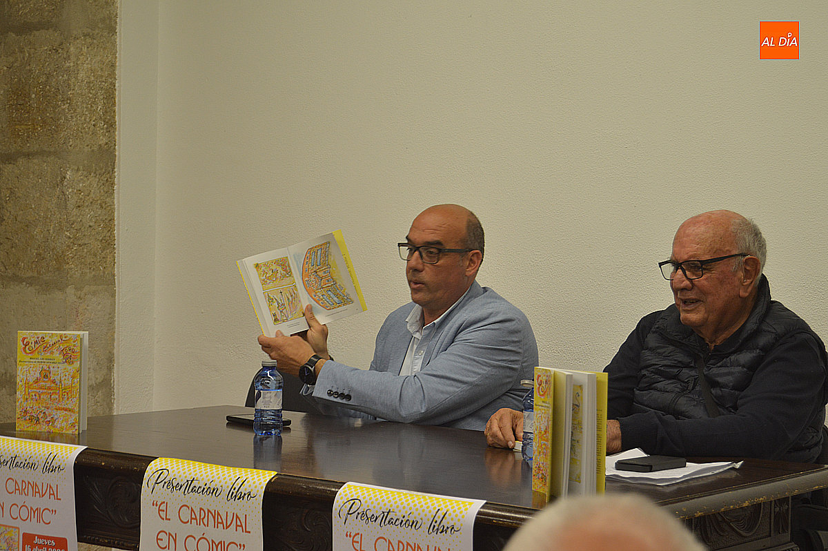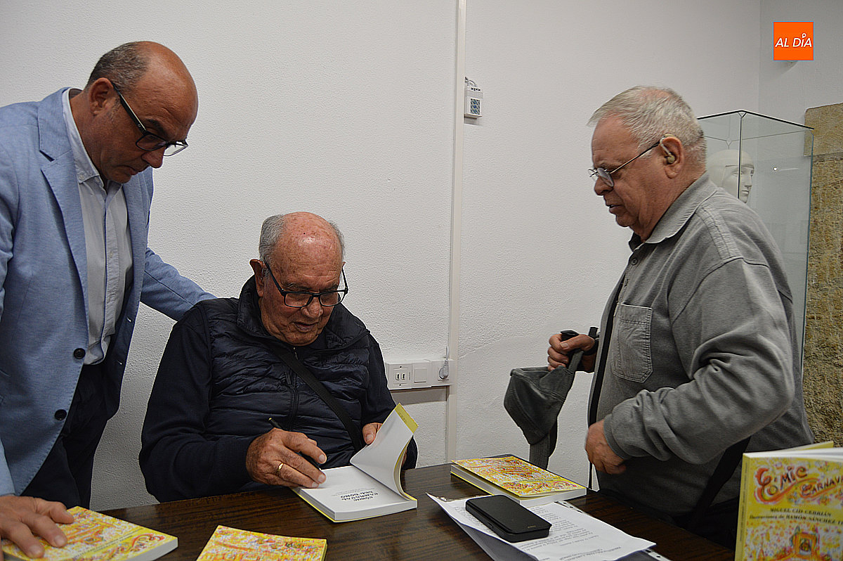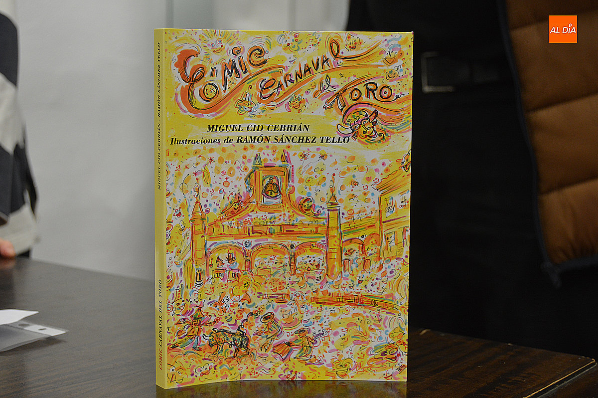 La Casa de la Cultura ha sido escenario esta tarde de la presentación del libro Comic Carnaval del Toro, una obra escrita por Miguel Cid Cebrián e ilustrada por el artista mirobrigense Ramón Sánchez Tello, creador del movimiento artístico "Espiralismo", cuya influencia queda reflejada a lo largo de la publicación.