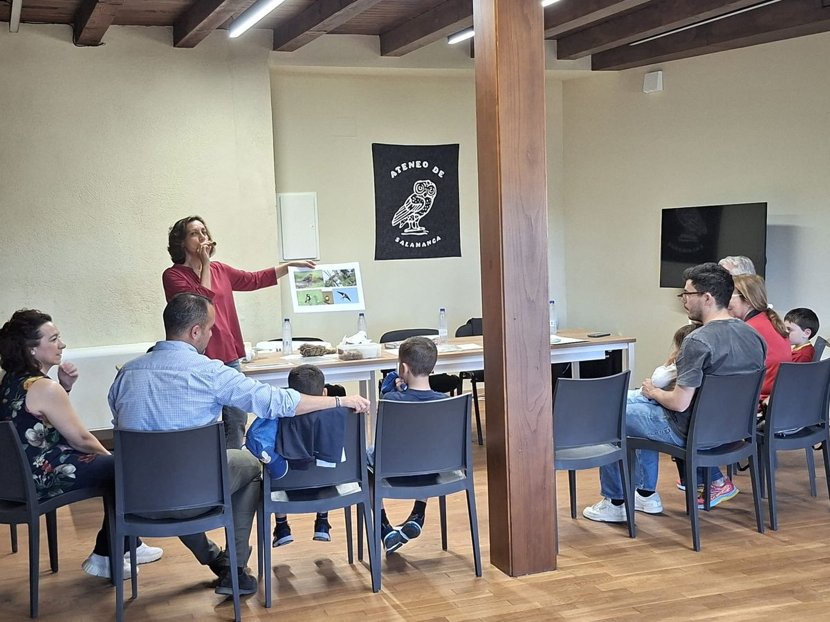 La reconocida escritora Pilar López Ávila, doctora en Veterinaria y catedrática de Biología, docente en el IES Norba Caesarina, de Cáceres, cuya dedicación a la literatura infantil y juvenil ha recibido importantes reconocimientos como el de Innovación Educativa, tercer premio “Joaquin Sama” (2010) por proyectos de aprovechamiento de materiales de desecho, así como numerosos galardones en certámenes de cuentos infantiles y reconocimientos internacionales por la calidad artística de sus álbumes, impartió ayer, viernes, un cuentacuentos para niños y familia en la sede del Ateneo de Salamanca, situada en la Fonda Veracruz.