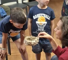 Ávila mostró a los niños distintos nidos auténticos de pájaros explicando cómo los hacen las aves, enseñó a los asistentes a confeccionar una vistosa postal viviente y leyó poemas de su libro “El abecedario inventado”.
