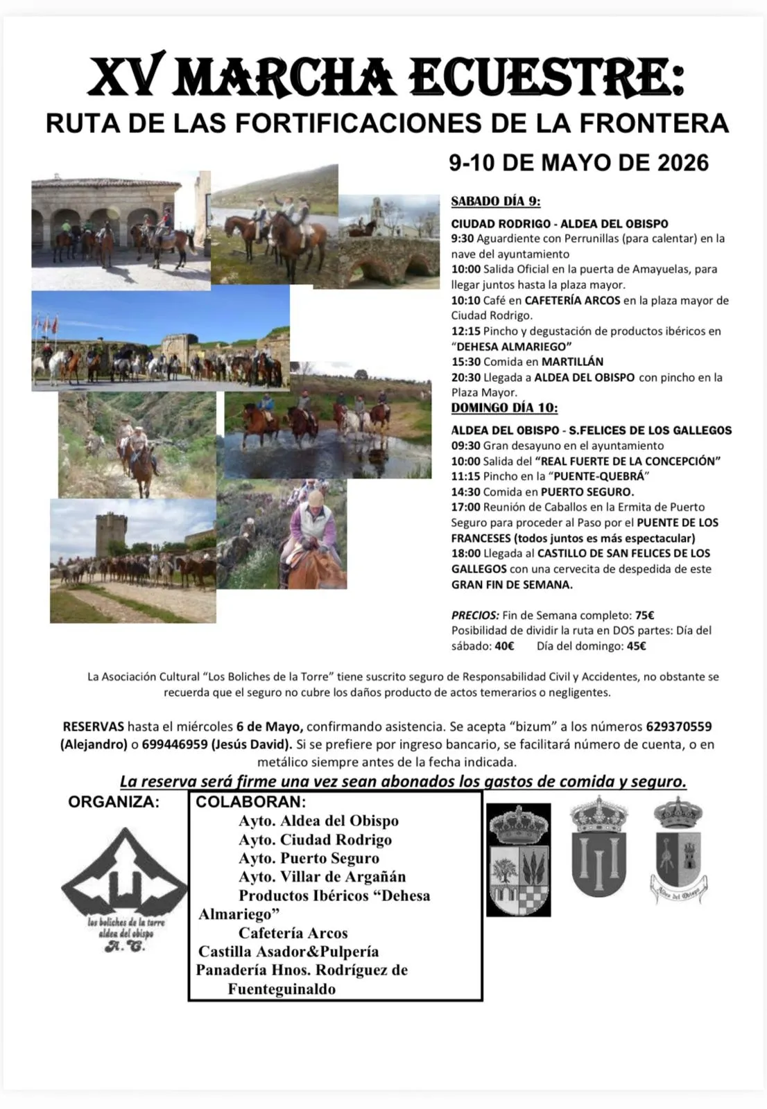 La comarca mirobrigense volverá a convertirse en punto de encuentro para los amantes del mundo ecuestre con la celebración de la XV Marcha Ecuestre: Ruta de las Fortificaciones de la Frontera, que tendrá lugar los días 9 y 10 de mayo de 2026. Esta iniciativa propone un recorrido a caballo por distintos enclaves de gran valor patrimonial entre Ciudad Rodrigo y varias localidades del entorno fronterizo.