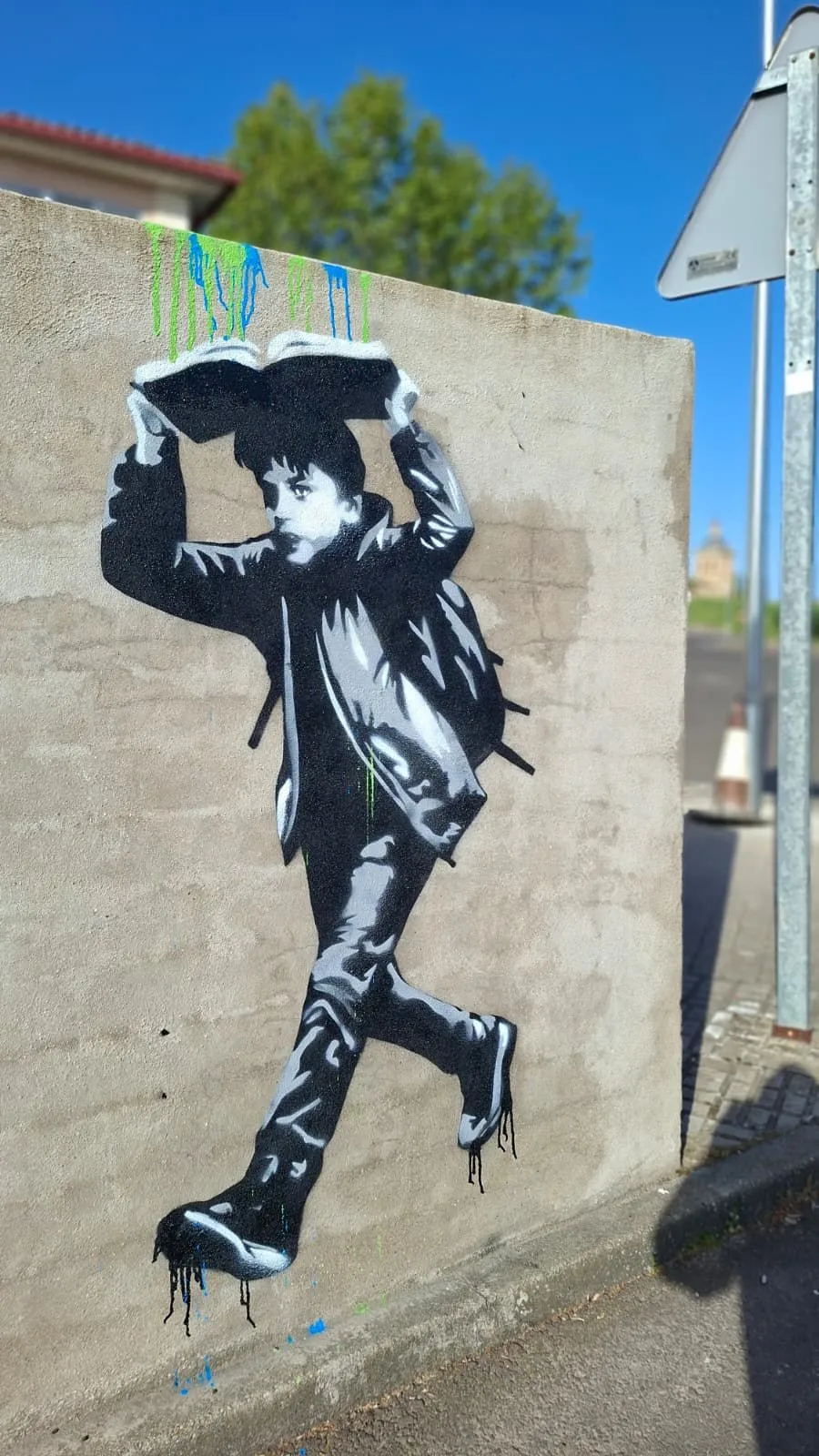 El creador mirobrigense, NADIE, amplía la galería de arte al aire libre de la localidad con una pieza visual cargada de simbolismo. La pintura coincide con la celebración de la cita literaria anual, X Feria del Libro Fernando Arrabal, y reivindica la lectura como un espacio de protección y conocimiento frente a las adversidades.