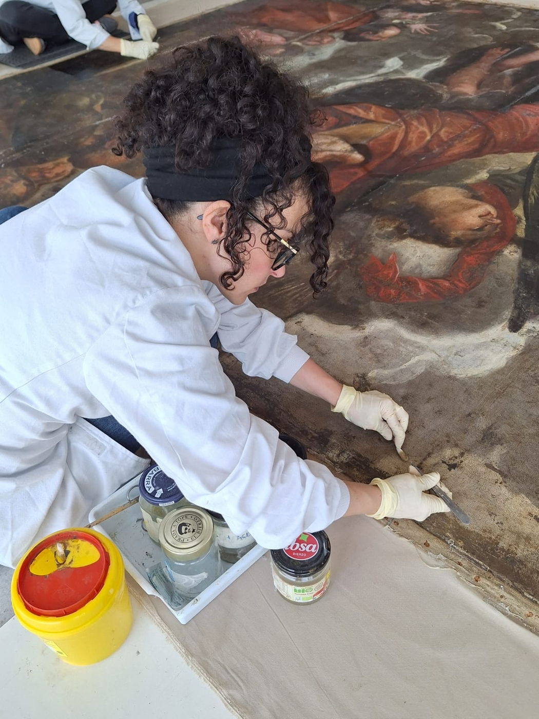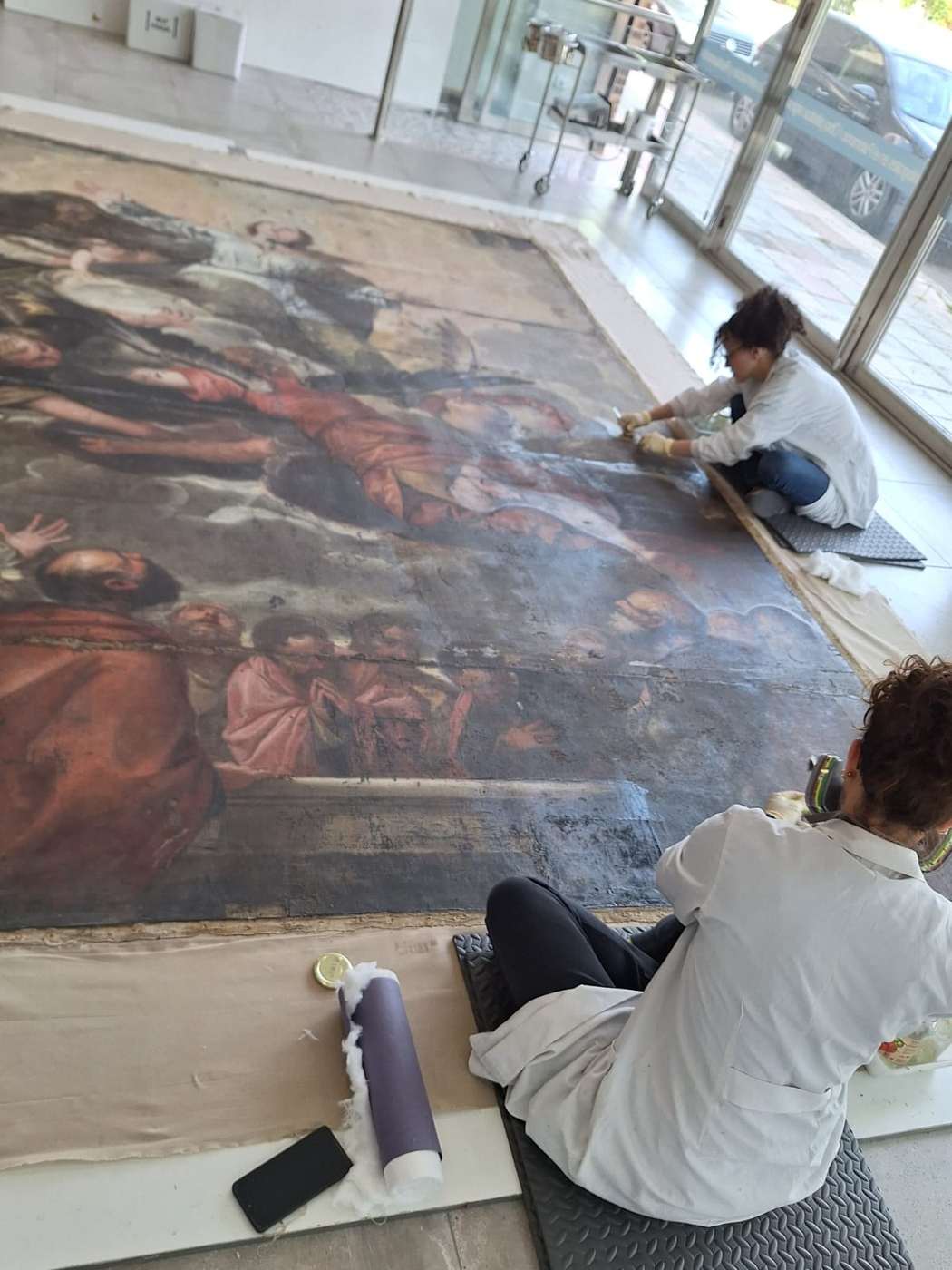 Los profesionales del taller Uffizi están realizando un trabajo muy minucioso sobre la tela. El diagnóstico inicial ya reveló la existencia de desgarros, tensiones estructurales y pérdidas significativas de policromía, problemas que se habían visto agravados por la oxidación de los barnices y repintes antiguos.