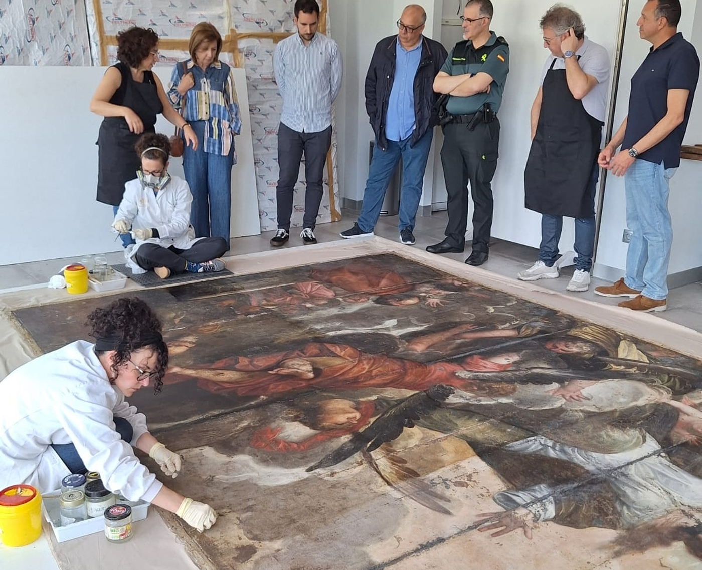 La subdelegada del Gobierno en Salamanca, y presidenta de la Fundación Inés Luna, ha supervisado la restauración del lienzo monumental 'La Asunción de la Virgen'. Los trabajos, financiados con 63.000 euros por la Fundación Inés Luna Terrero, buscan frenar el deterioro de la obra y confirmar si pertenece al pintor barroco Juan Martín Cabezalero