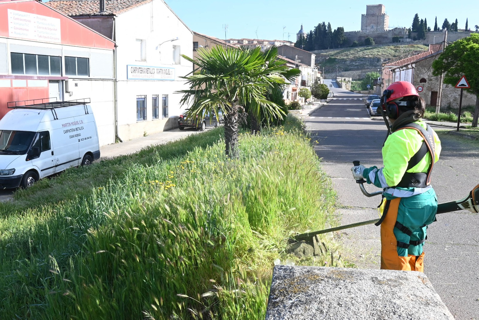 El Ayuntamiento de Ciudad Rodrigo refuerza los trabajos de limpieza y mantenimiento en zonas verdes y riberas ante el crecimiento de la vegetación primaveral, con un equipo de 15 operarios.