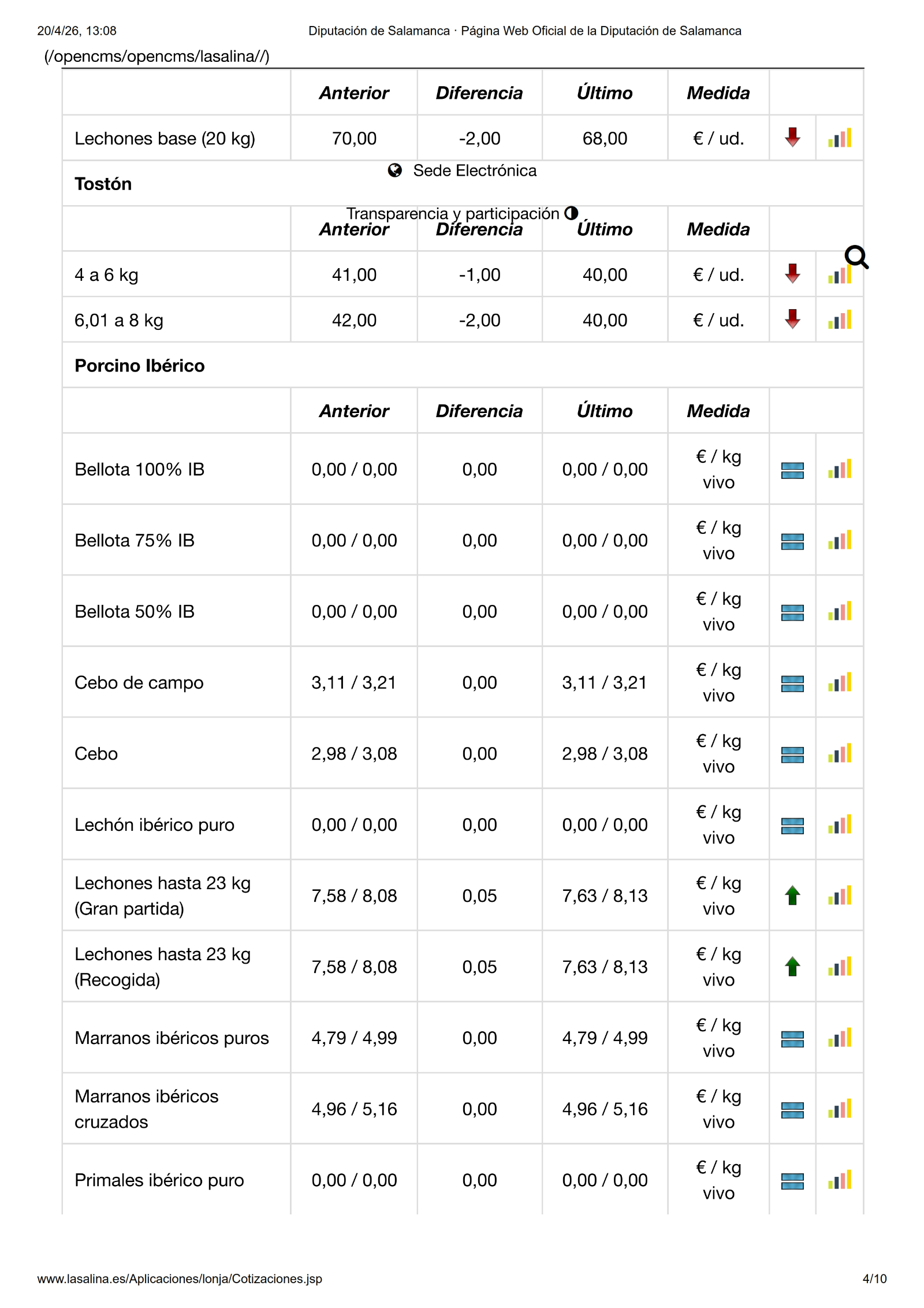 En la Mesa de Porcino bajan -0,02 €/kg las cerdas de blanco y -2,00 €/ud. los lechones. También bajan los tostones blancos, -1,00 €/ud. los más pequeños y -2,00 €/ud. los de 6 a 8 kg. En ibérico, repetición para el cebo y cebo de campo y subida de 0,05 €/kg para los lechones y de 5,00 €/ud. para los tostones de 9 a 12 kg.