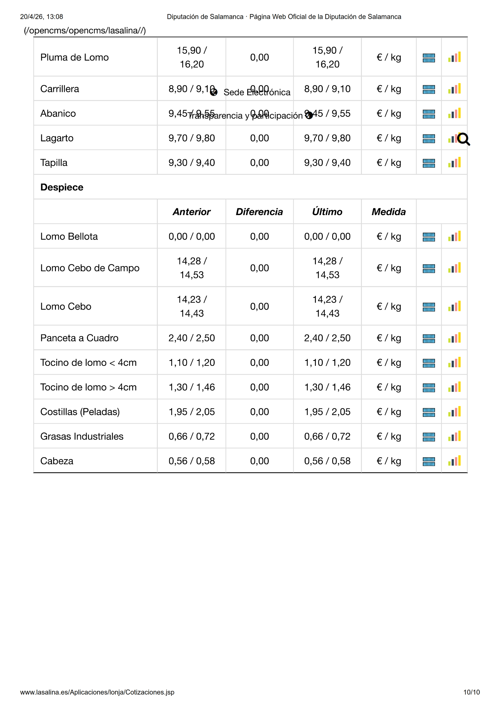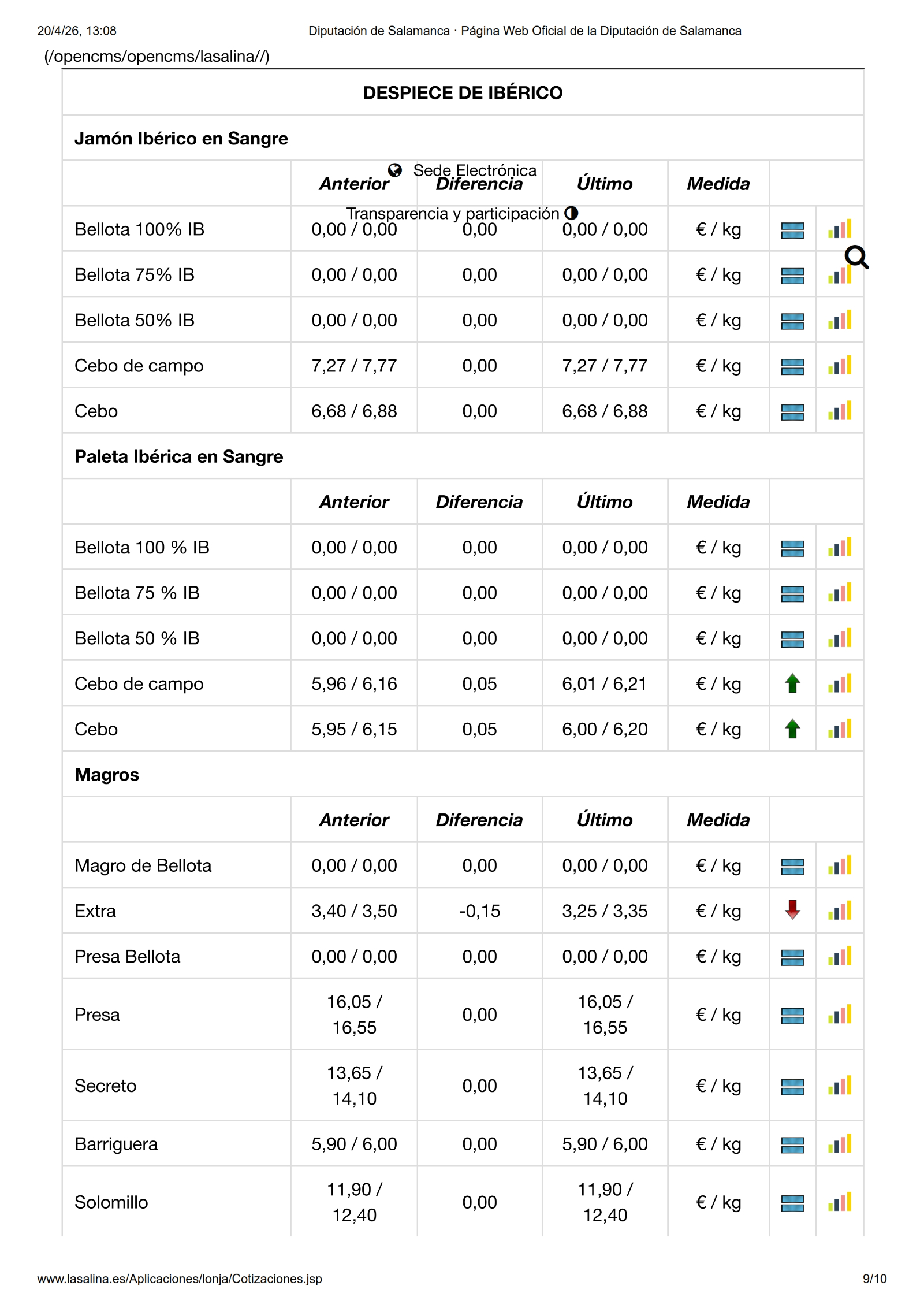 En la Mesa de Ovino, corderos y lechazos no se mueven. En la Mesa de Despiece de ibérico, suben 0,05 €/kg las paletas en sangre de cebo y cebo de campo. Por último, el magro extra baja -0,15 €/kg.