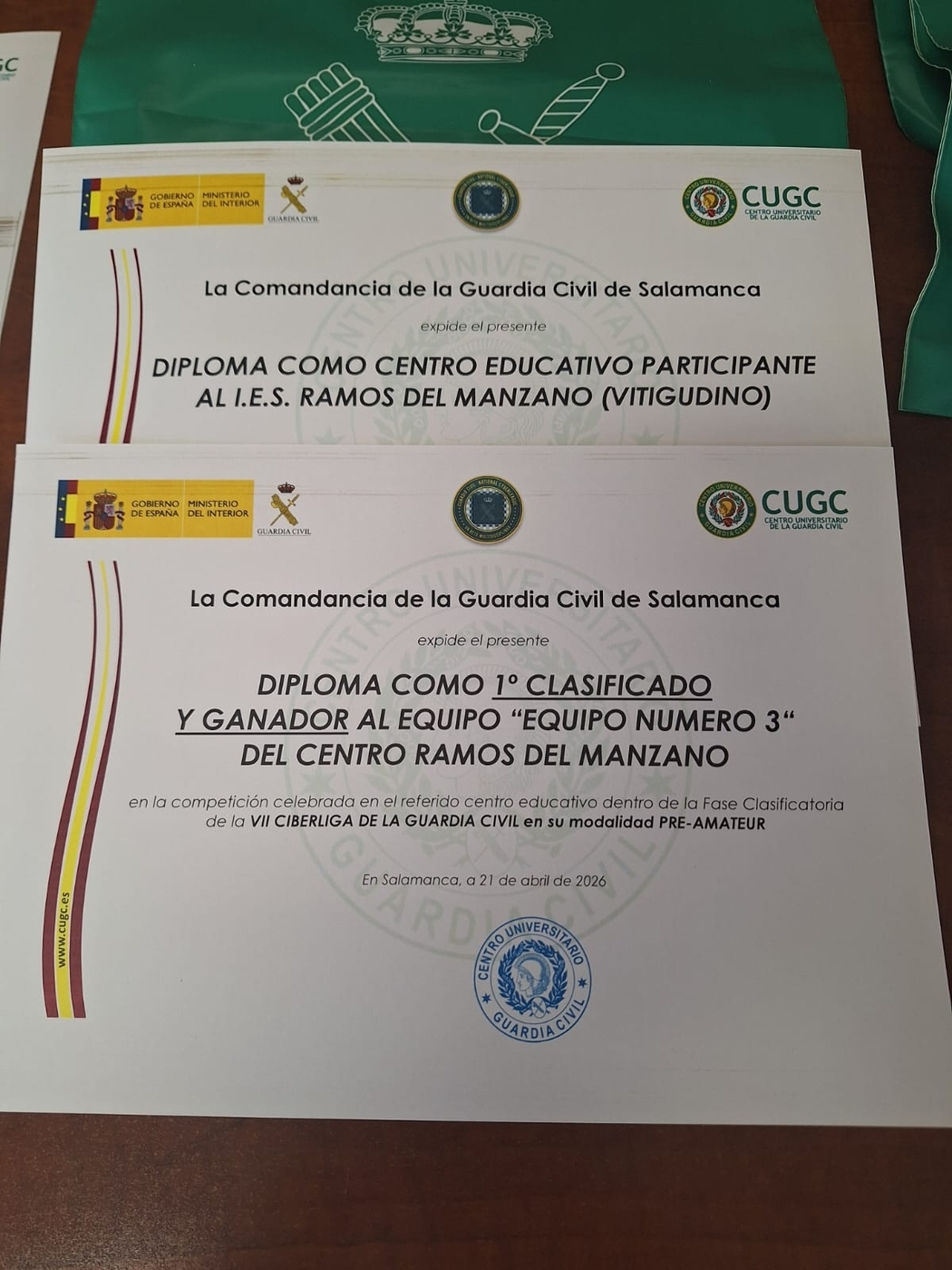El equipo de alumnos de cuarto de la ESO del IES Ramos del Manzano, situado en Vitigudino, se ha proclamado vencedor absoluto de la séptima edición de la CiberLiga en Salamanca. La subdelegada del Gobierno, Rosa López, y el teniente coronel jefe de la Comandancia de la Guardia Civil, Arturo Marcos, han sido los encargados de entregar este máximo galardón durante el acto oficial de resolución del certamen.