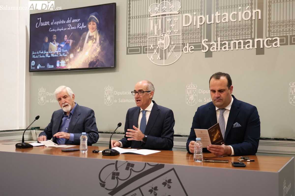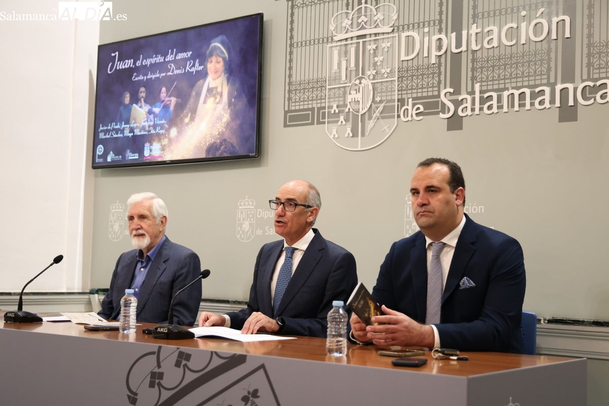 La Diputación de Salamanca ha presentado este martes el montaje teatral "Juan, el espíritu del amor", una obra escrita y dirigida por Denis Rafter. La iniciativa se enmarca dentro de los actos conmemorativos del III Centenario de la canonización de San Juan de la Cruz y del I Centenario de su proclamación como Doctor de la Iglesia, y recorrerá los municipios salmantinos con una propuesta escénica itinerante.