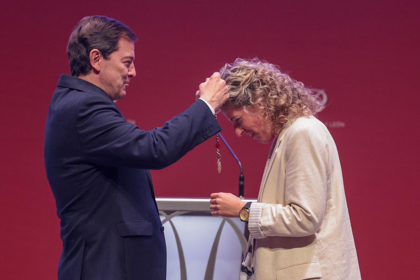 Igualmente, han recogido el galardón, de manos del presidente de la Junta en funciones, Alfonso Fernández Mañueco, la Asociación Proyecto Hombre Castilla y León, Premio Castilla y León de Valores Humanos y Sociales, presidida por Manuel Muiños; el Ayuntamiento de Benavente (Zamora), Premio de la Tauromaquia, y el escritor zamorano Tomás Sánchez Santiago, Premio de Las Letras, quien ha leído el discurso en nombre de todos los premiados para pedir que se cuide la cultura como "puerta a la esperanza" y defender la Comunidad como tierra de acogida.