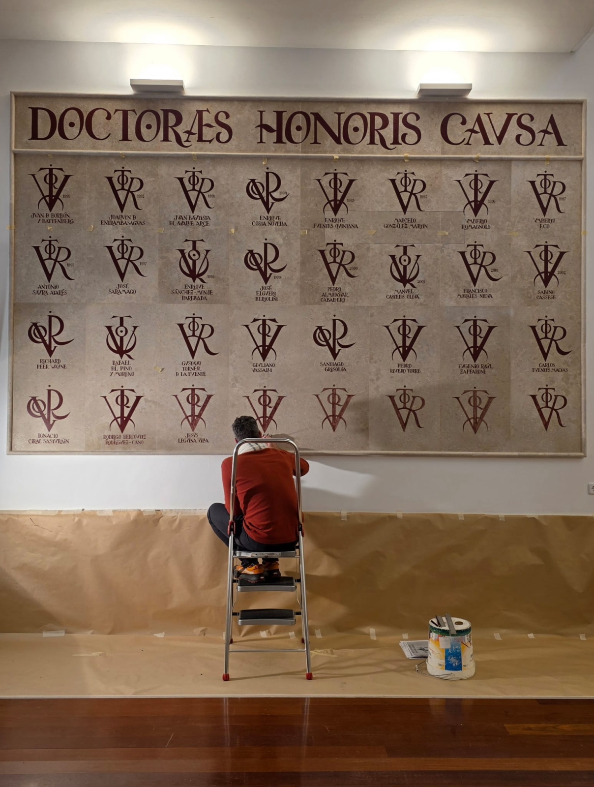 Para celebrar sus cuatro décadas de historia, el gabinete del rectorado de la Universidad de Castilla-La Mancha (UCLM) contactó con el artista salmantino Miguel García antes de la pasada Navidad. El encargo consistía en plasmar los emblemas de los 46 doctores Honoris Causa reconocidos por la institución académica.