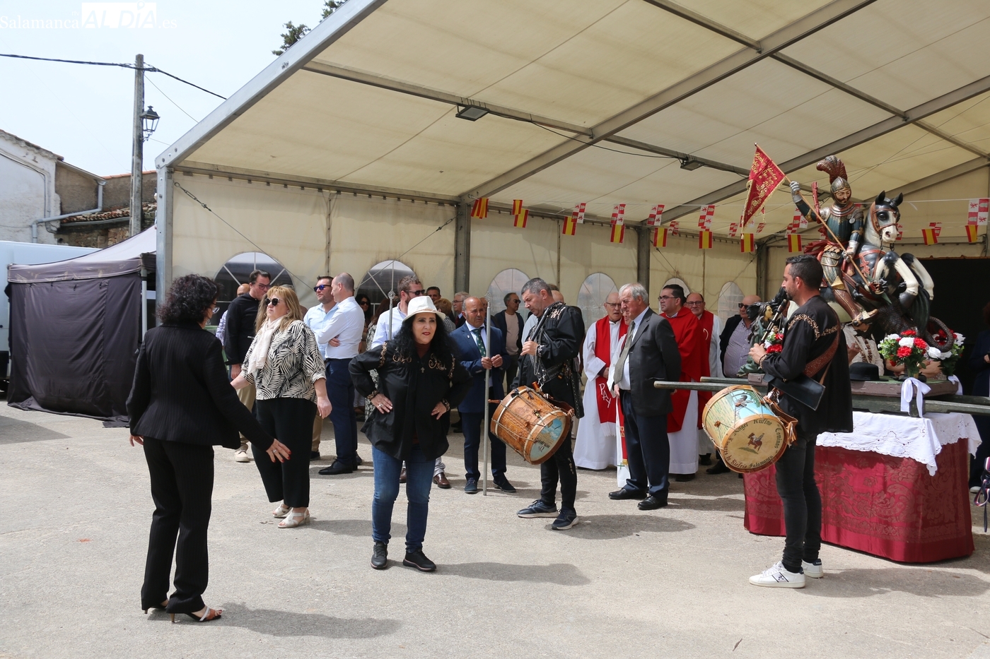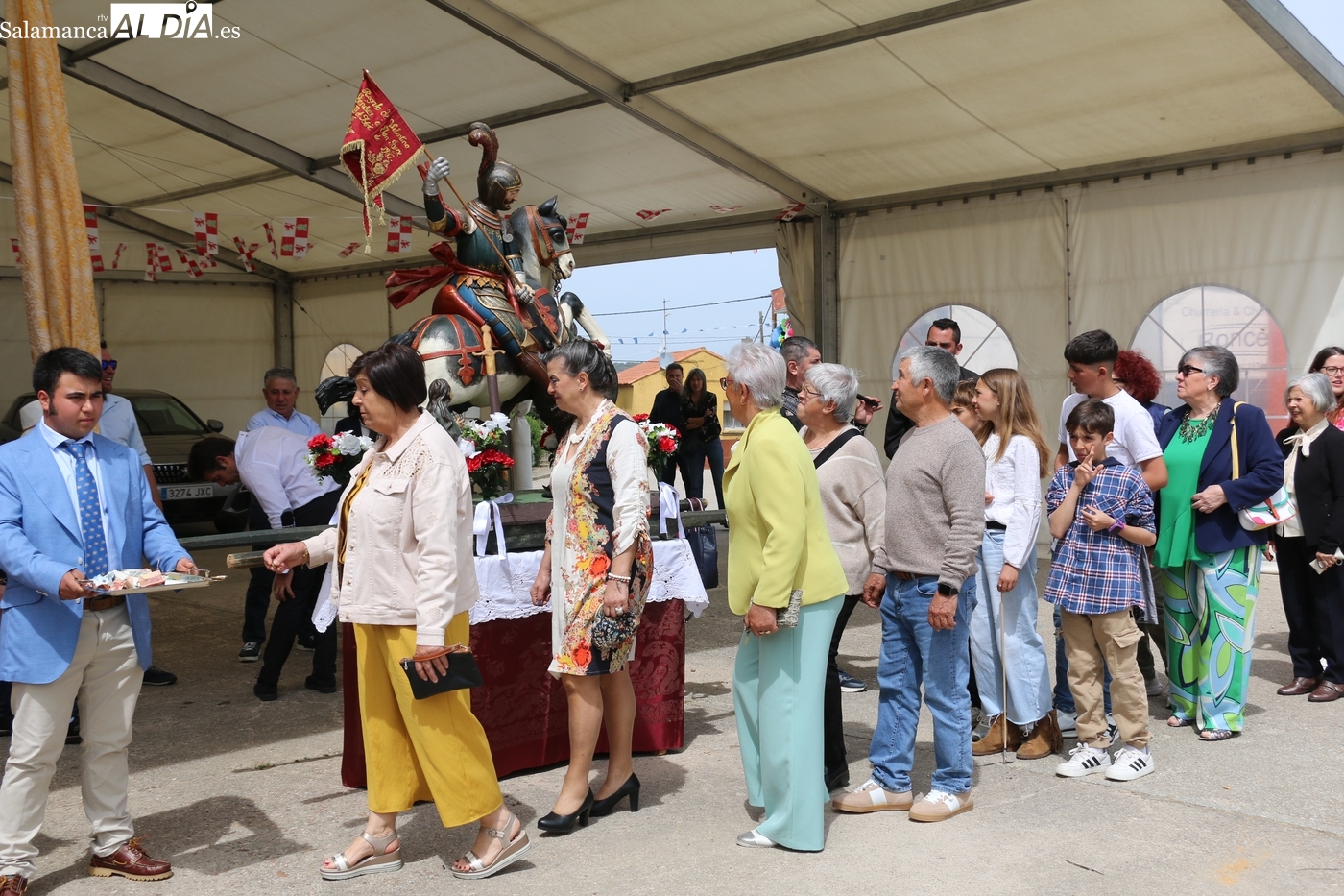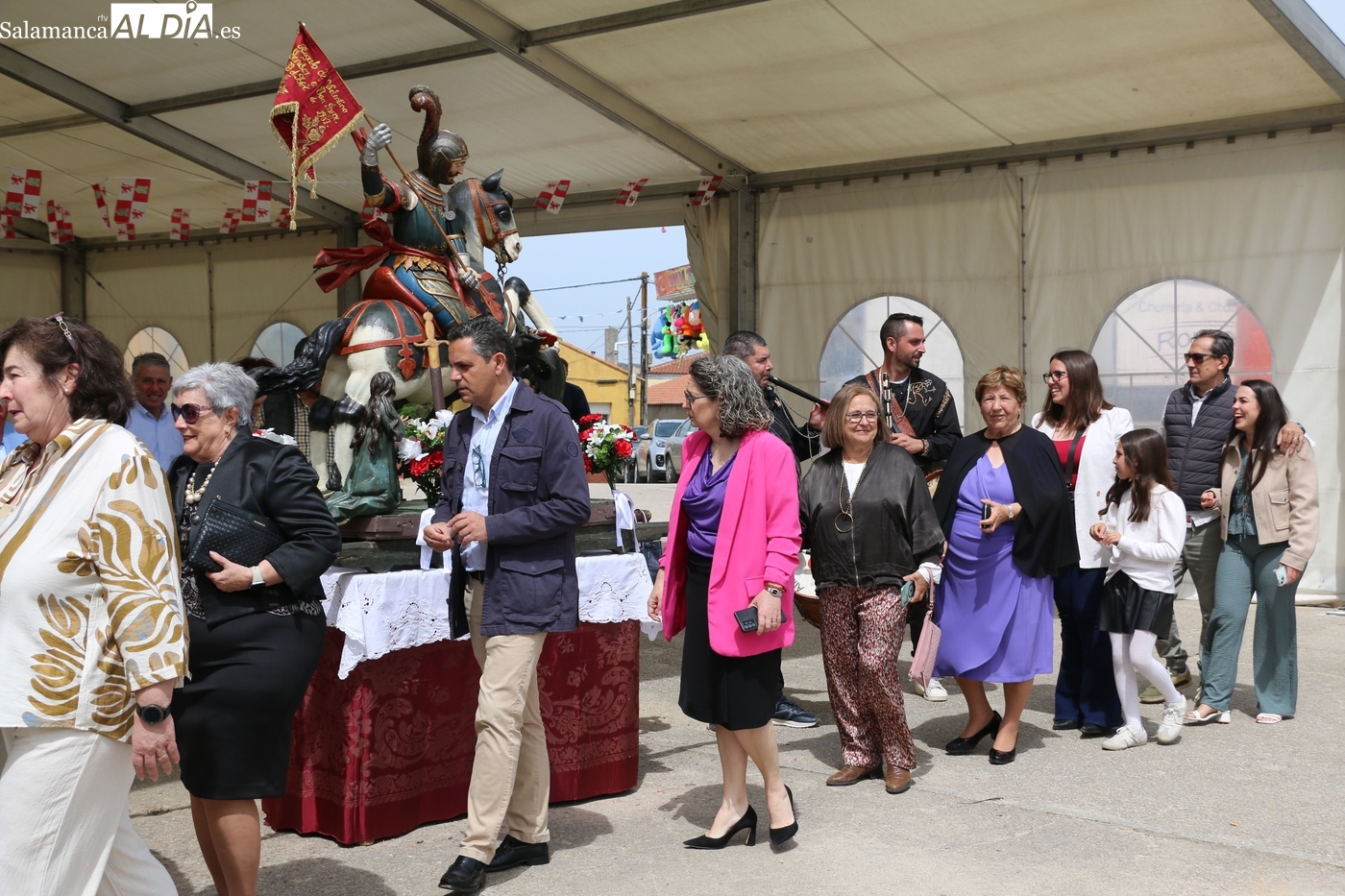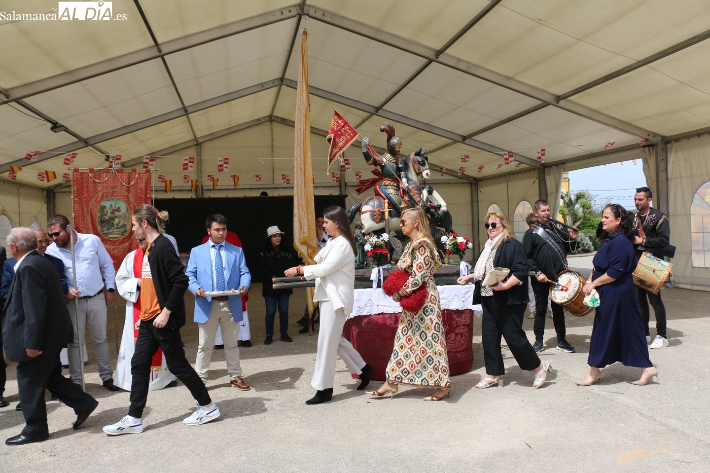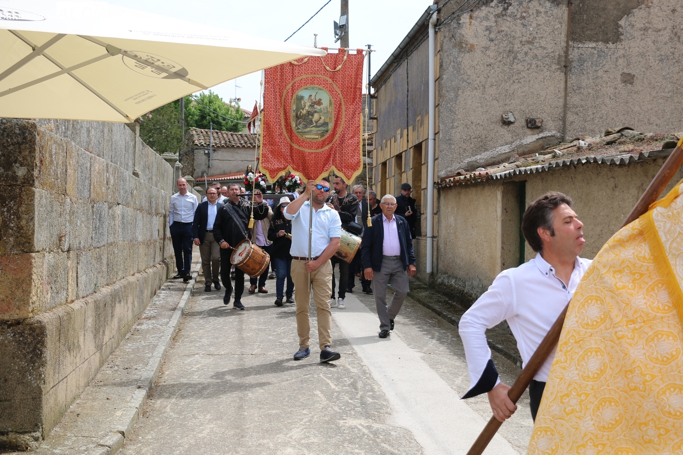 Durante este jueves, 23 de abril, día grande de las fiestas, los vecinos han participado pasado el mediodía en la eucaristía en honor al Patrón. El acto religioso ha estado cooficiado por los sacerdotes del Arciprestazgo del Abadengo y amenizado por los sones de Ángel Rufino, 'El Mariquelo', quien en esta ocasión ha estado acompañado por Álvaro, 'El mozo de Linares'.