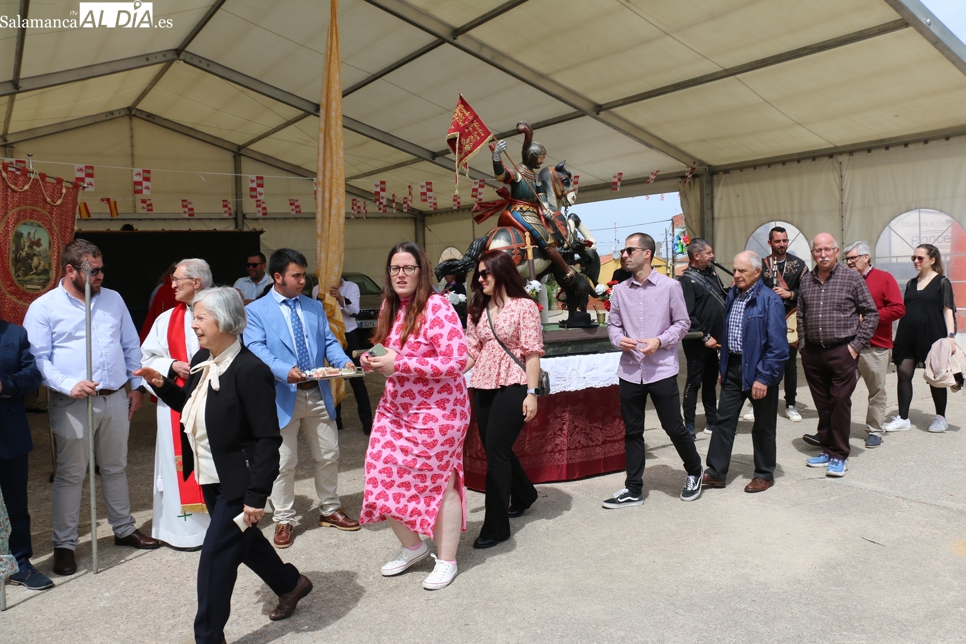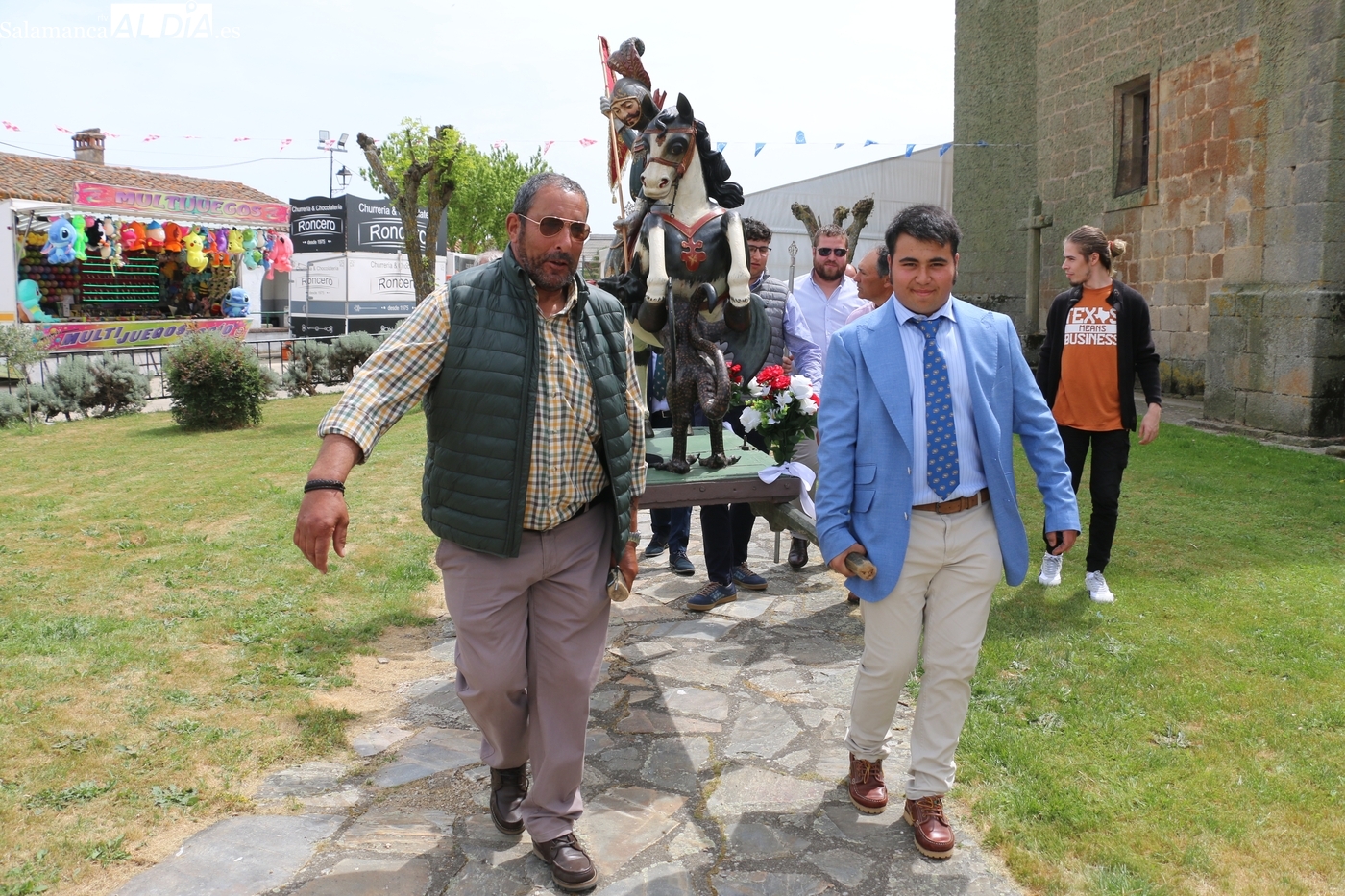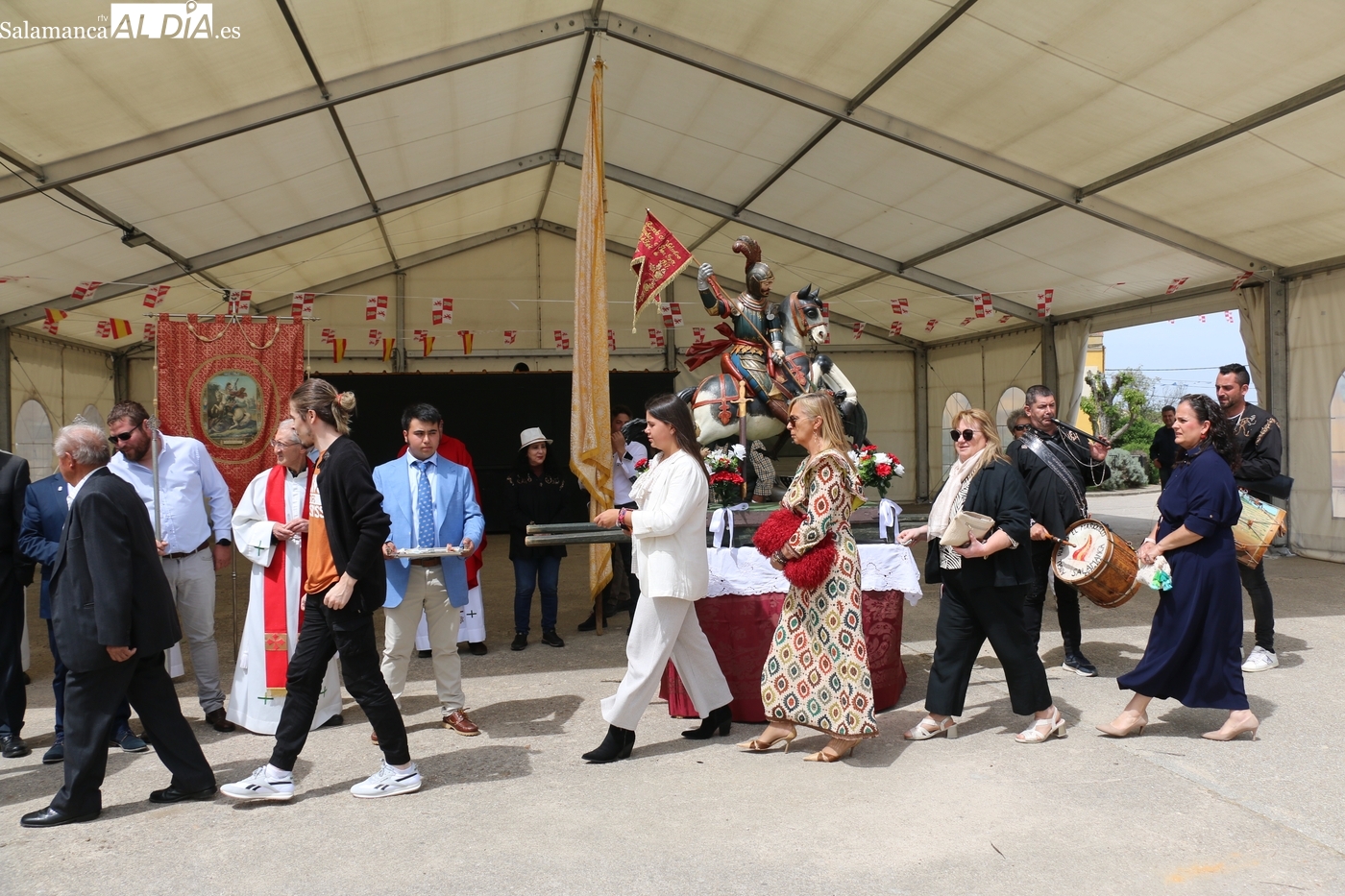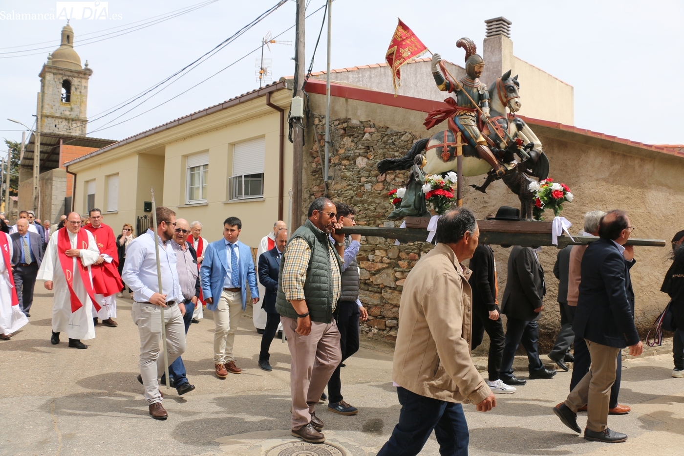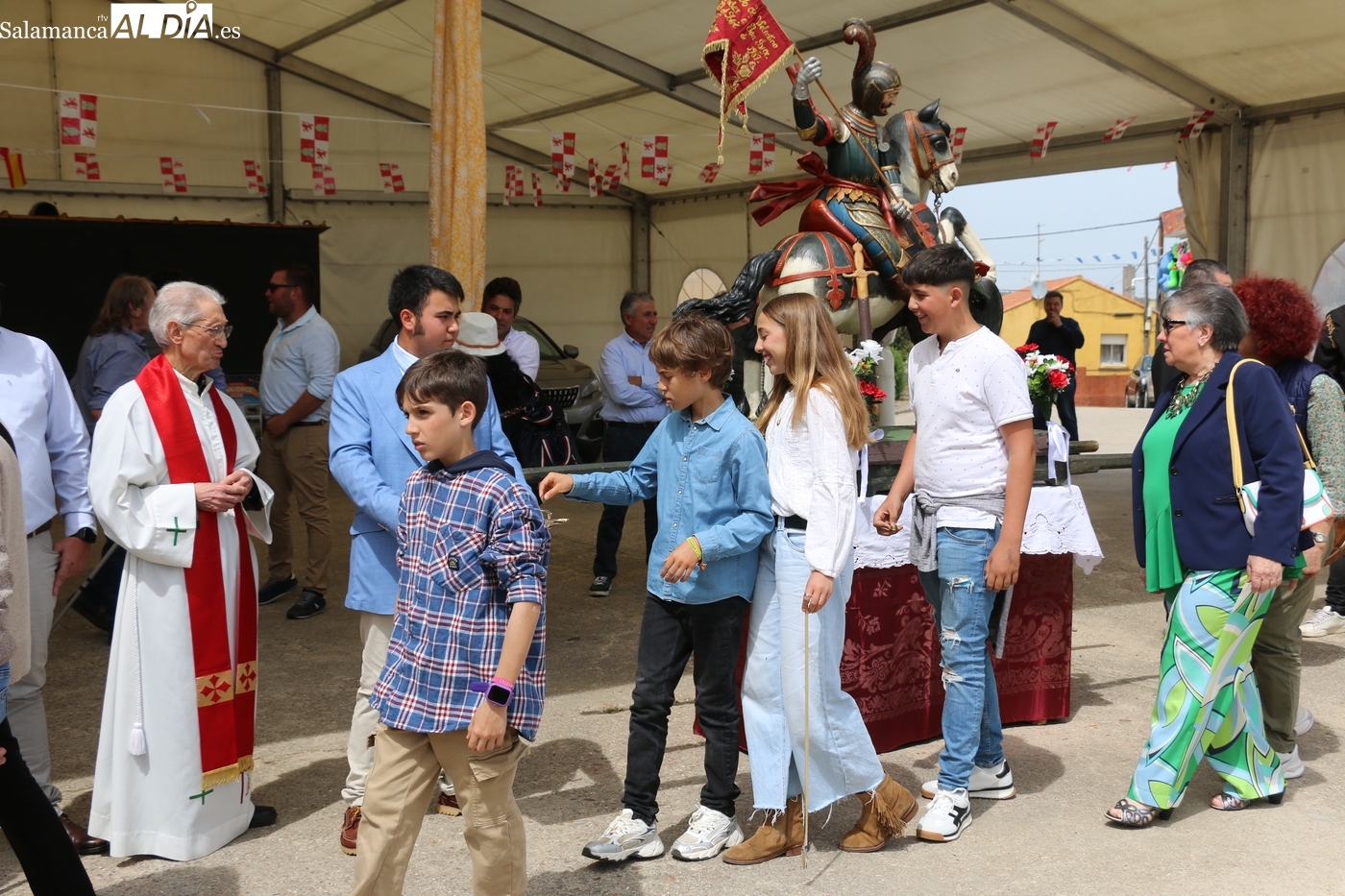 Durante este jueves, 23 de abril, día grande de las fiestas, los vecinos han participado pasado el mediodía en la eucaristía en honor al Patrón. El acto religioso ha estado cooficiado por los sacerdotes del Arciprestazgo del Abadengo y amenizado por los sones de Ángel Rufino, 'El Mariquelo', quien en esta ocasión ha estado acompañado por Álvaro, 'El mozo de Linares'.