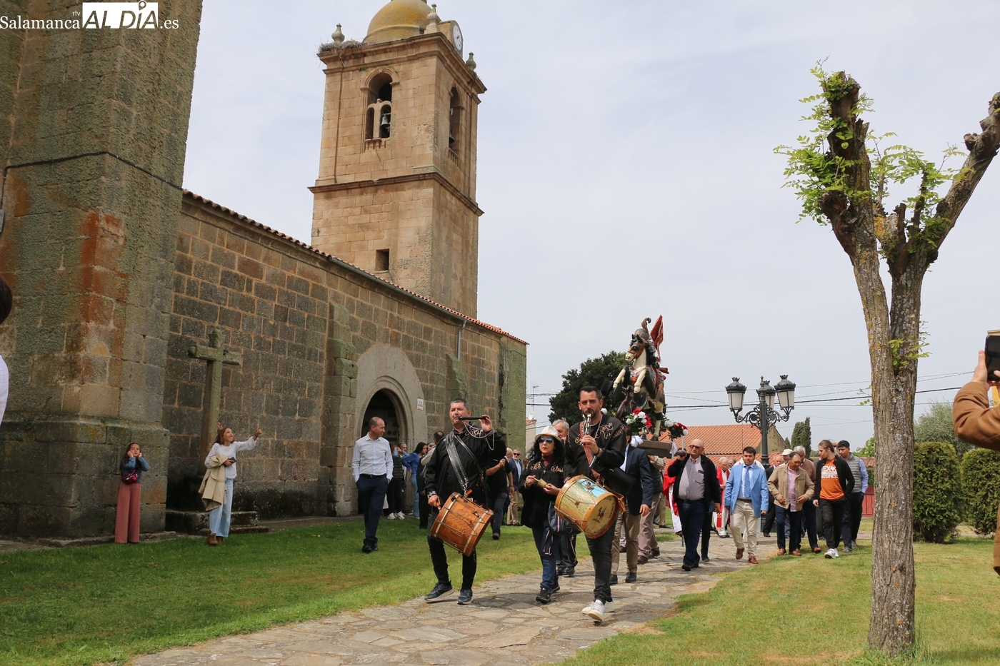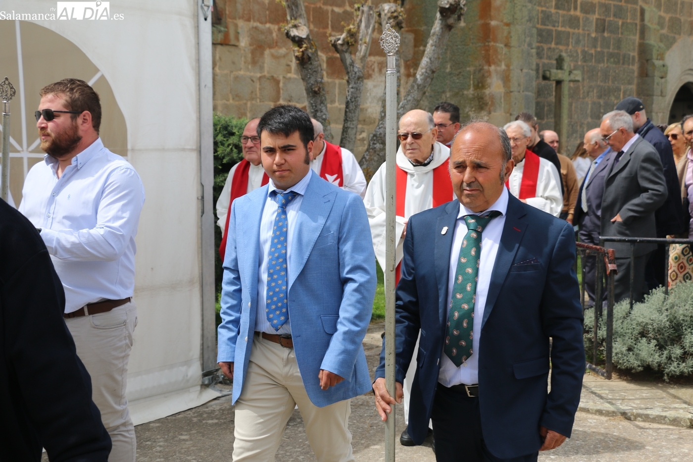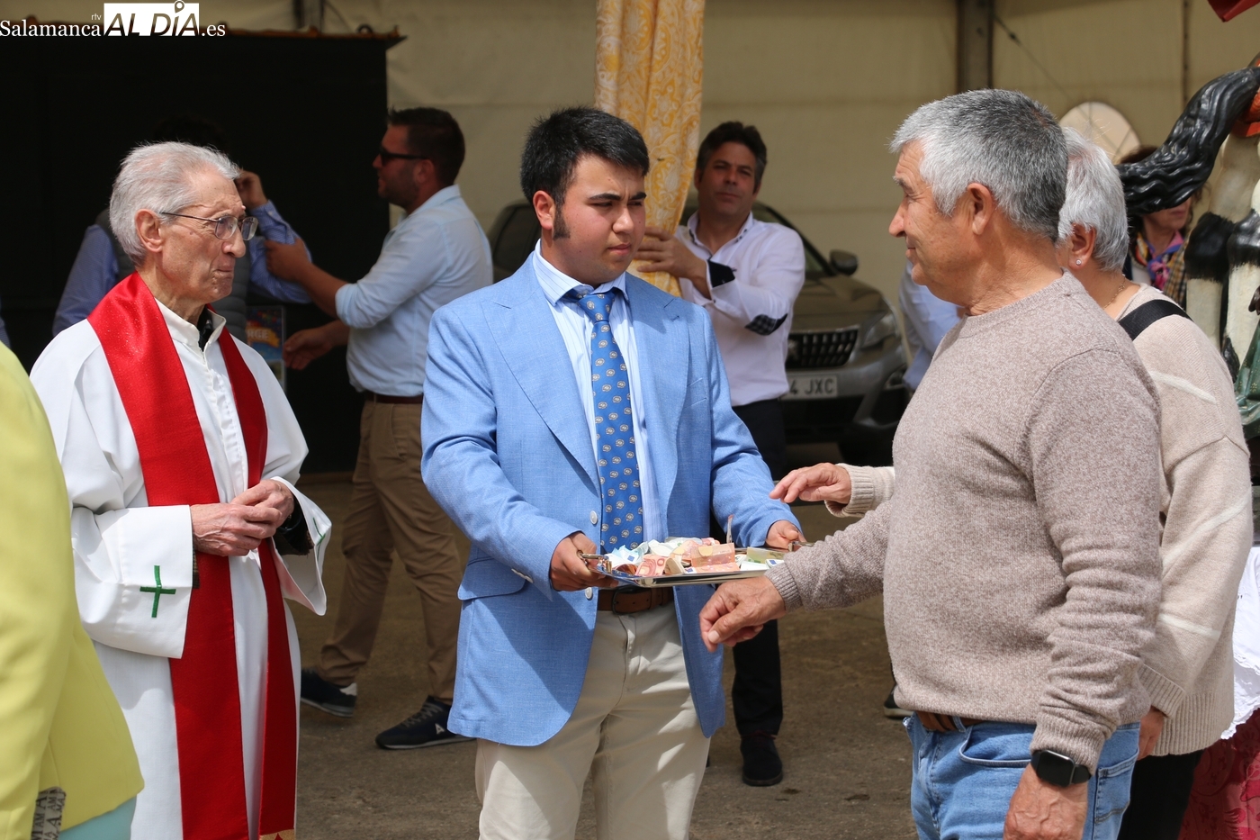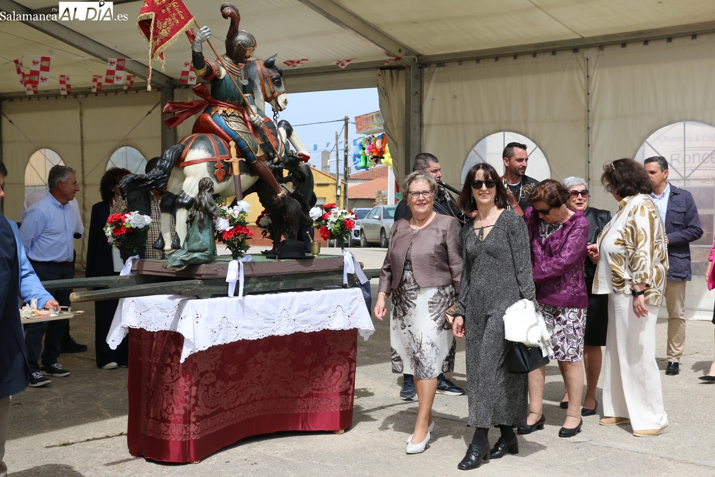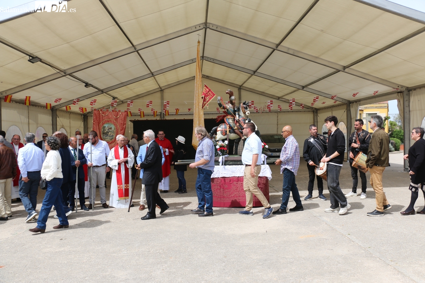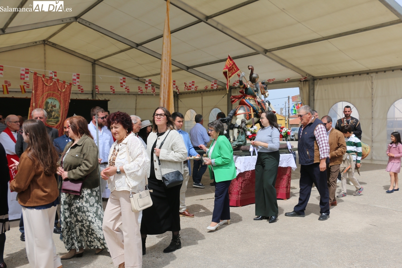 Durante este jueves, 23 de abril, día grande de las fiestas, los vecinos han participado pasado el mediodía en la eucaristía en honor al Patrón. El acto religioso ha estado cooficiado por los sacerdotes del Arciprestazgo del Abadengo y amenizado por los sones de Ángel Rufino, 'El Mariquelo', quien en esta ocasión ha estado acompañado por Álvaro, 'El mozo de Linares'.