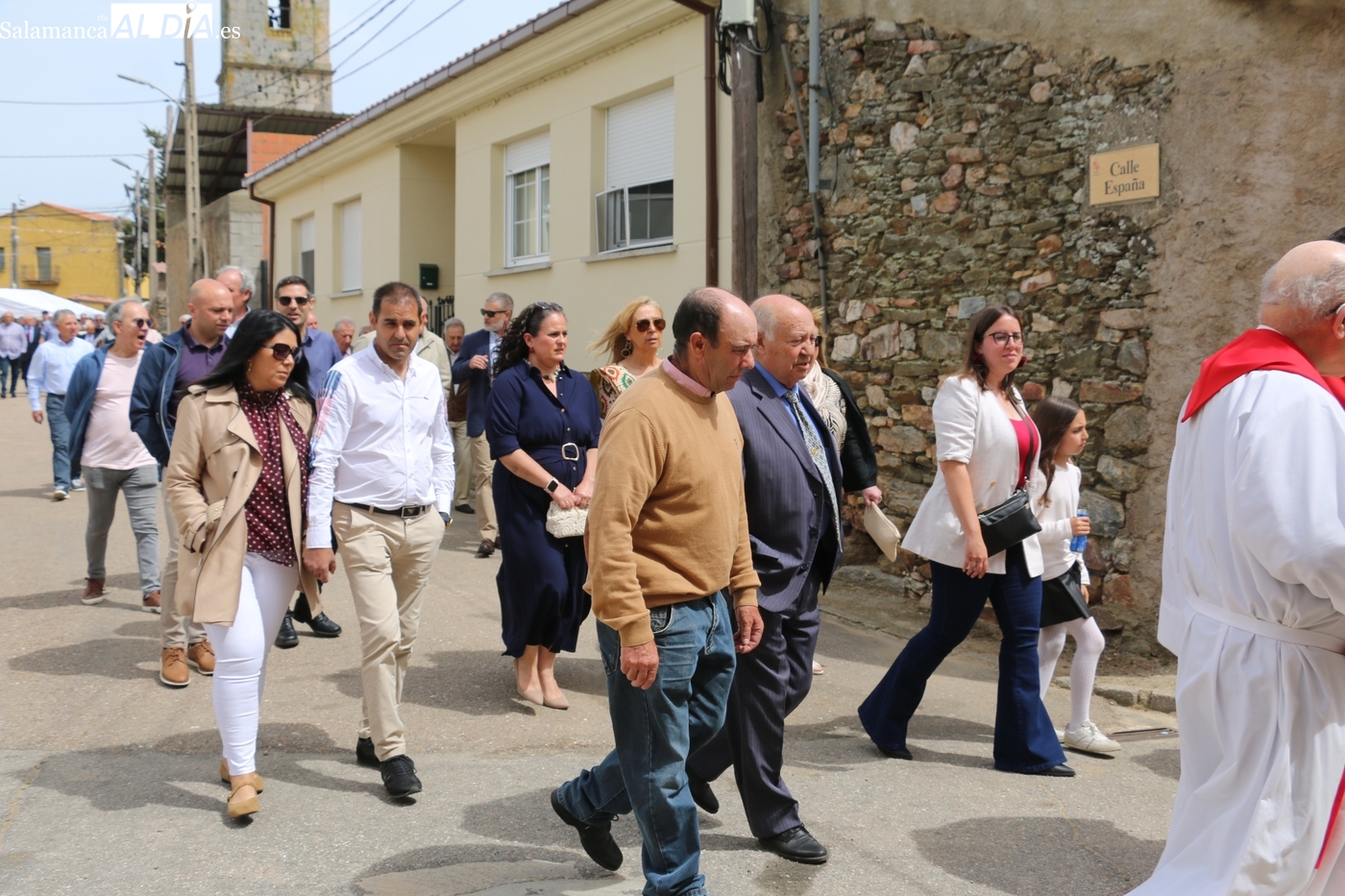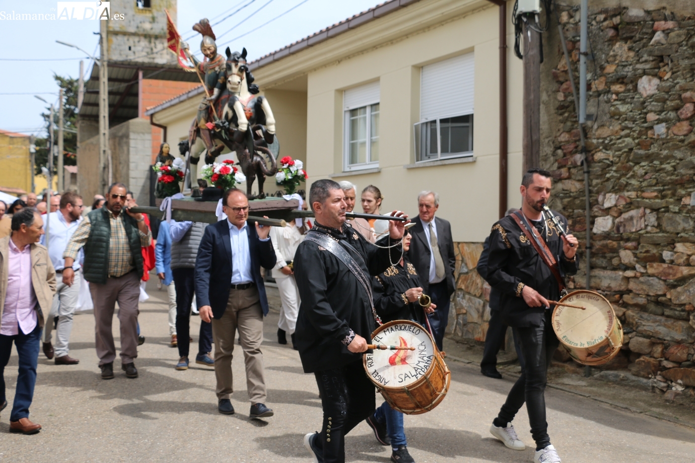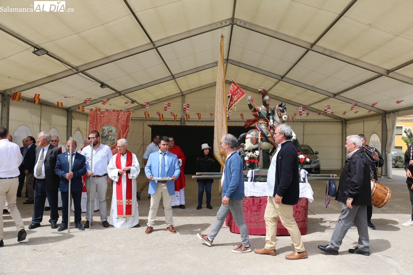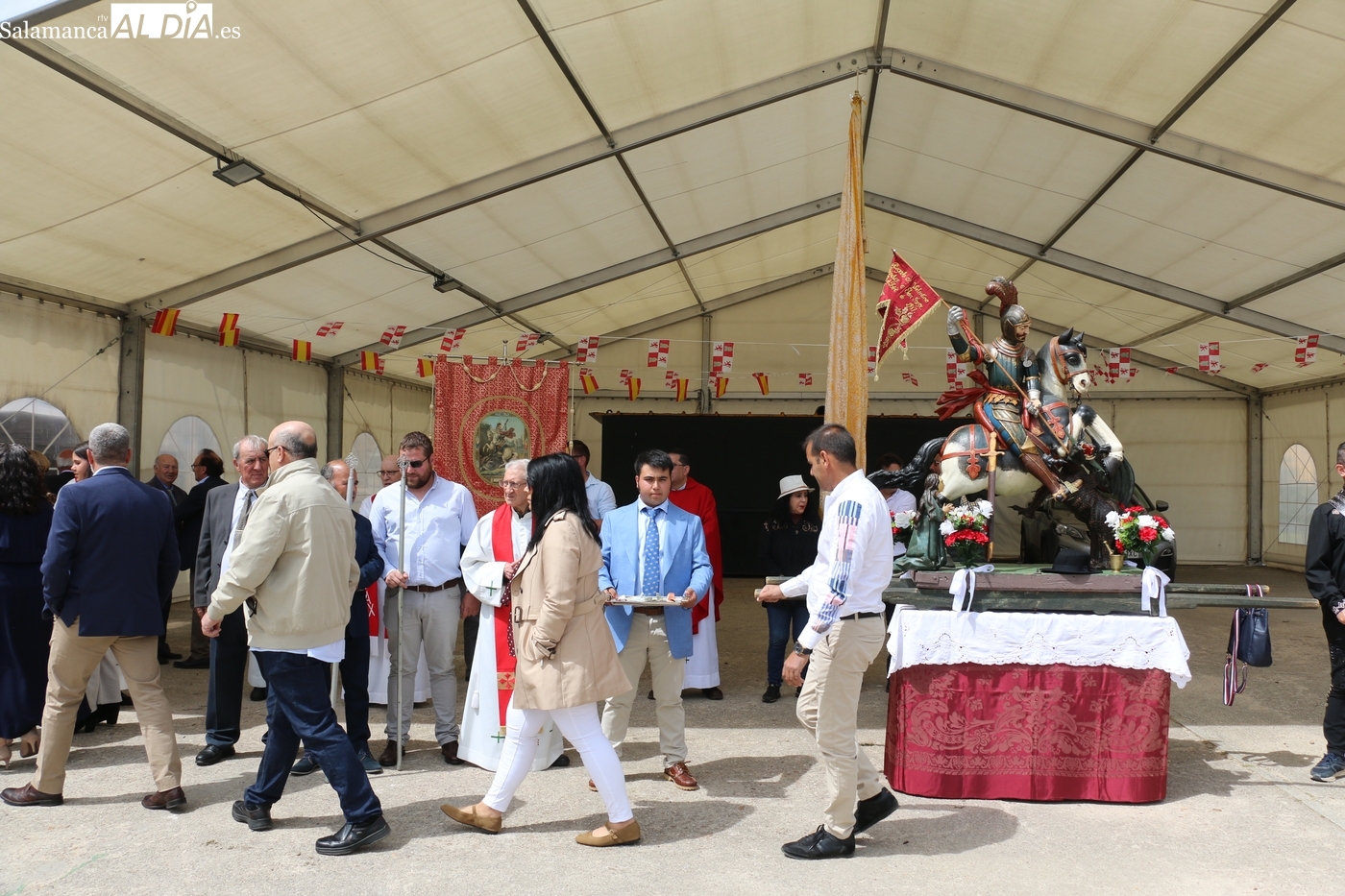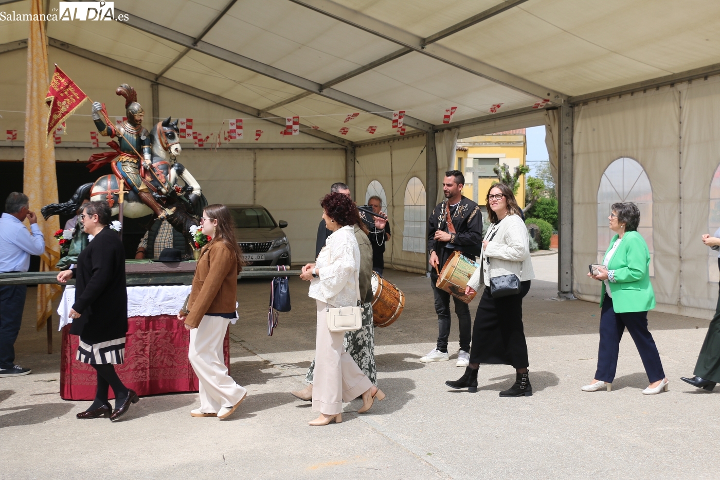 Durante este jueves, 23 de abril, día grande de las fiestas, los vecinos han participado pasado el mediodía en la eucaristía en honor al Patrón. El acto religioso ha estado cooficiado por los sacerdotes del Arciprestazgo del Abadengo y amenizado por los sones de Ángel Rufino, 'El Mariquelo', quien en esta ocasión ha estado acompañado por Álvaro, 'El mozo de Linares'.
