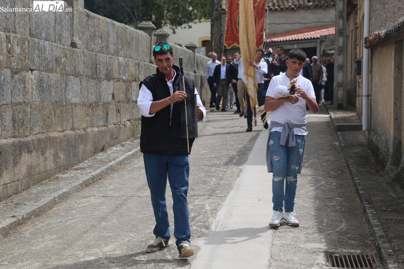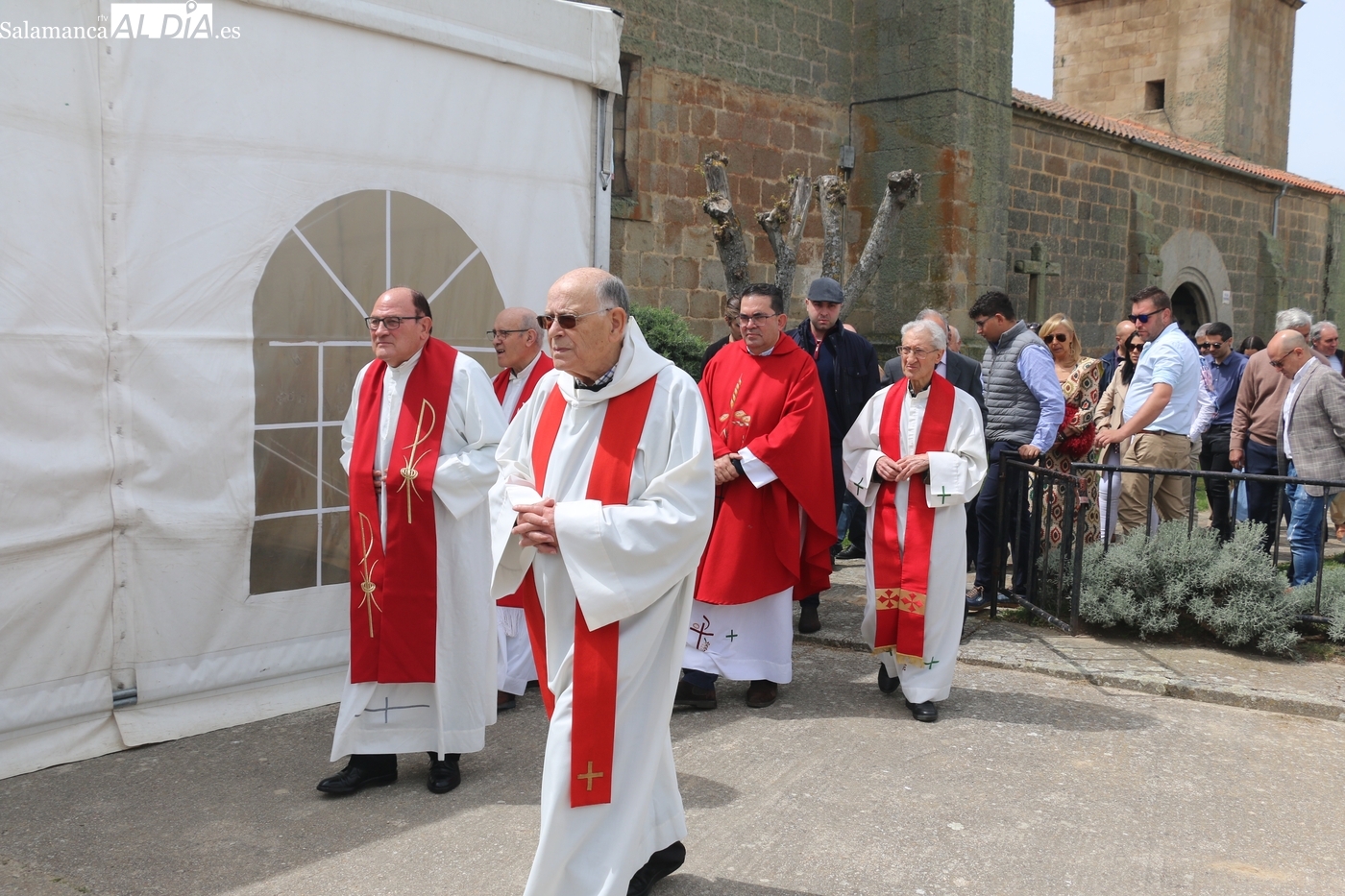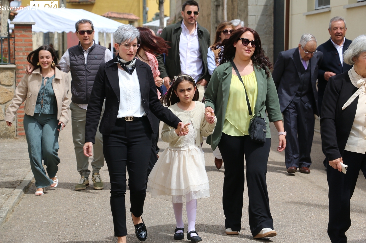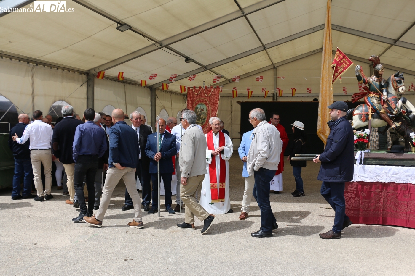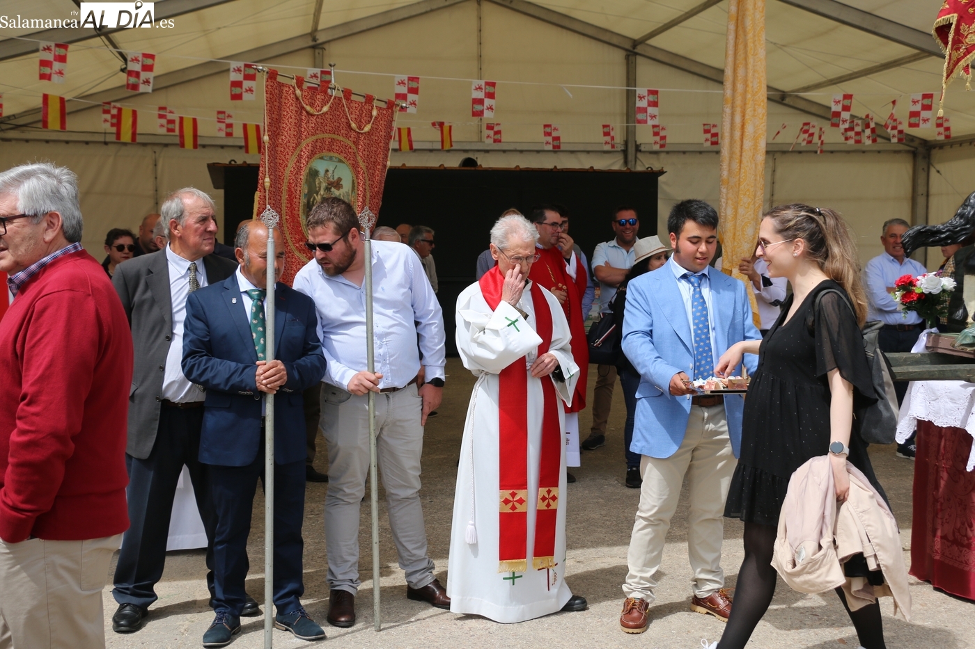 Durante este jueves, 23 de abril, día grande de las fiestas, los vecinos han participado pasado el mediodía en la eucaristía en honor al Patrón. El acto religioso ha estado cooficiado por los sacerdotes del Arciprestazgo del Abadengo y amenizado por los sones de Ángel Rufino, 'El Mariquelo', quien en esta ocasión ha estado acompañado por Álvaro, 'El mozo de Linares'.