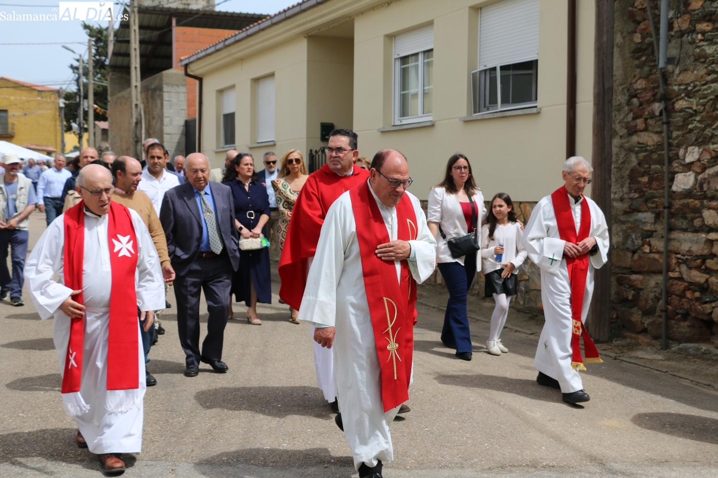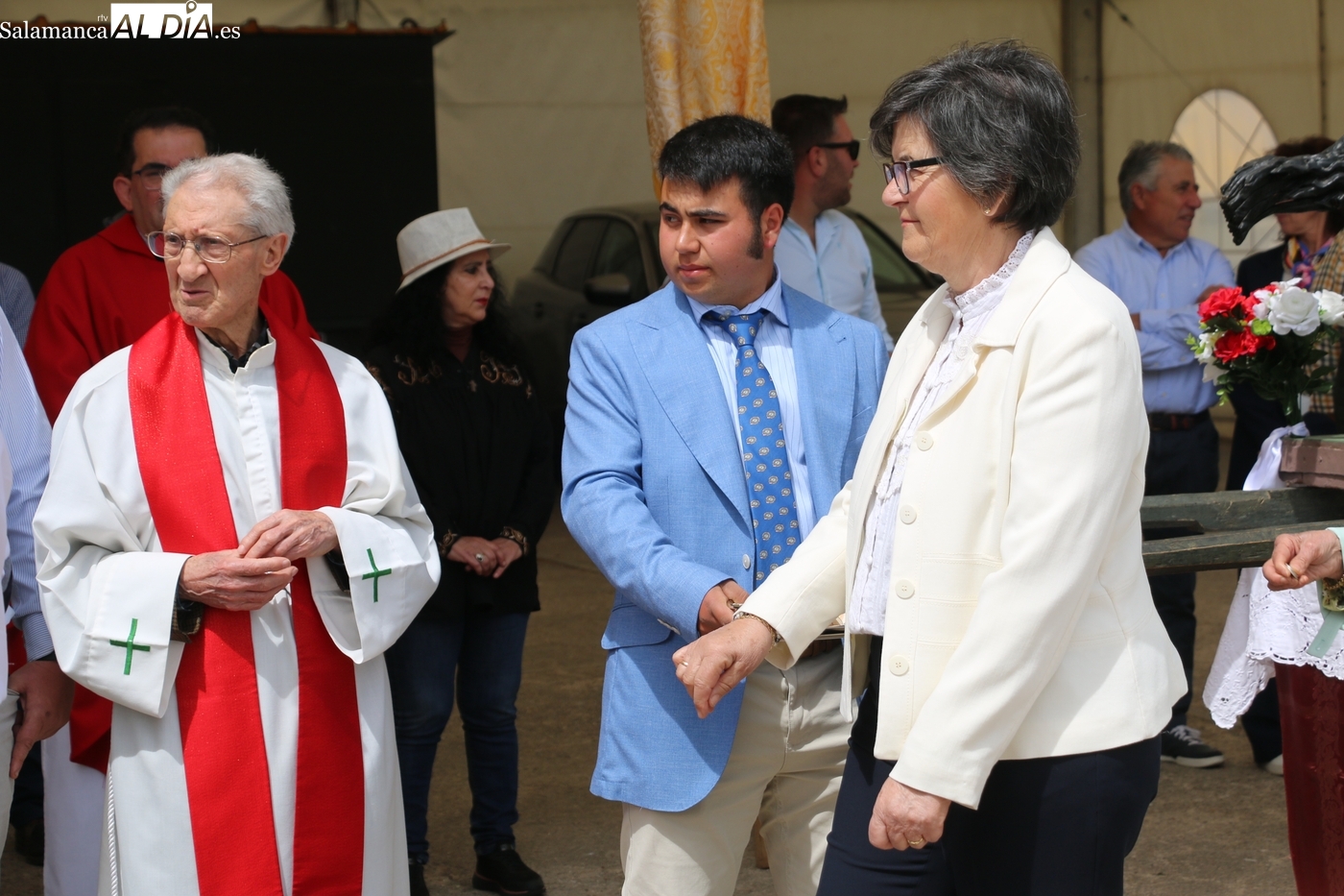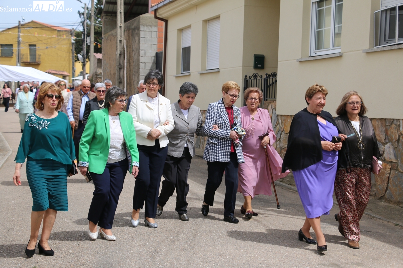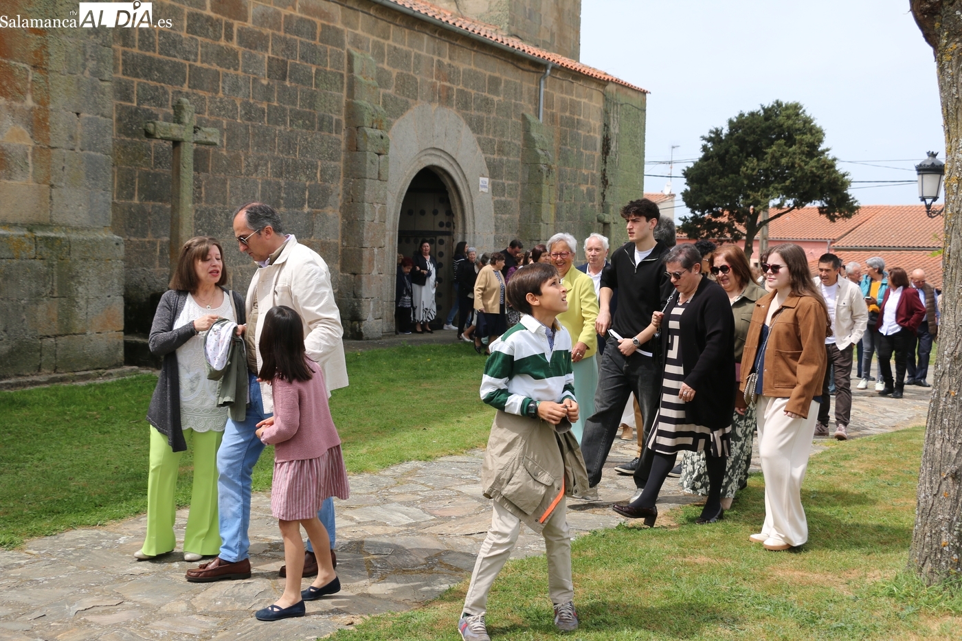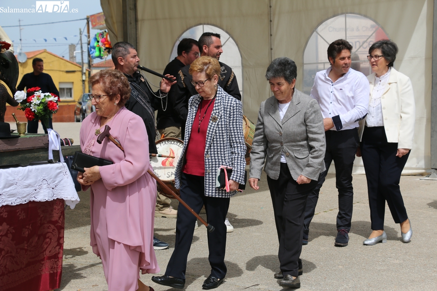 Durante este jueves, 23 de abril, día grande de las fiestas, los vecinos han participado pasado el mediodía en la eucaristía en honor al Patrón. El acto religioso ha estado cooficiado por los sacerdotes del Arciprestazgo del Abadengo y amenizado por los sones de Ángel Rufino, 'El Mariquelo', quien en esta ocasión ha estado acompañado por Álvaro, 'El mozo de Linares'.