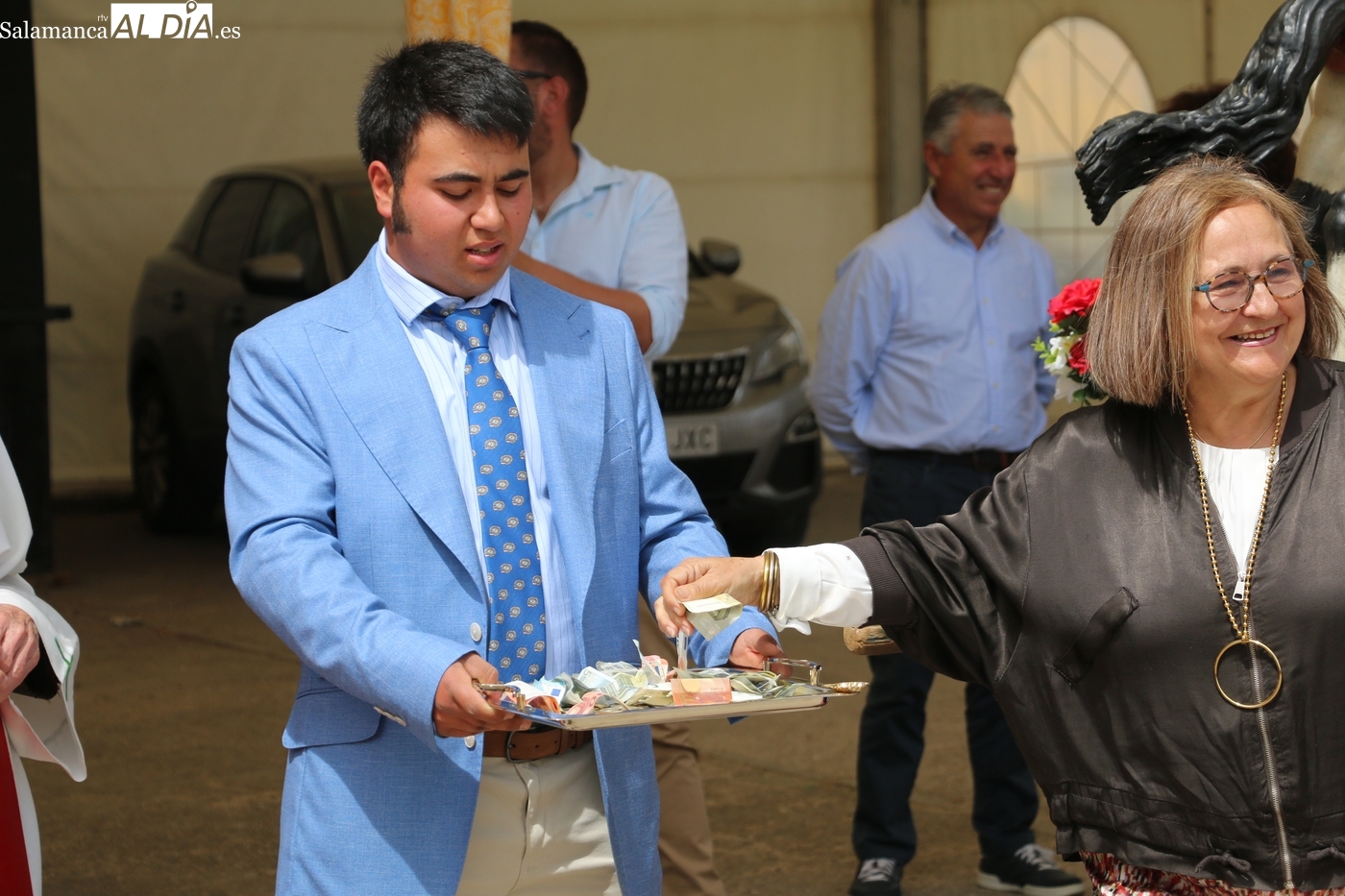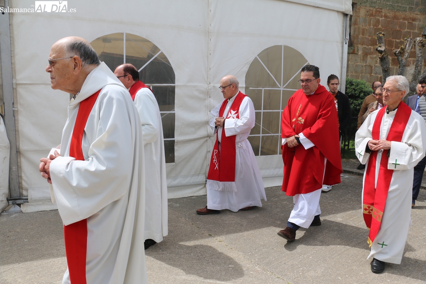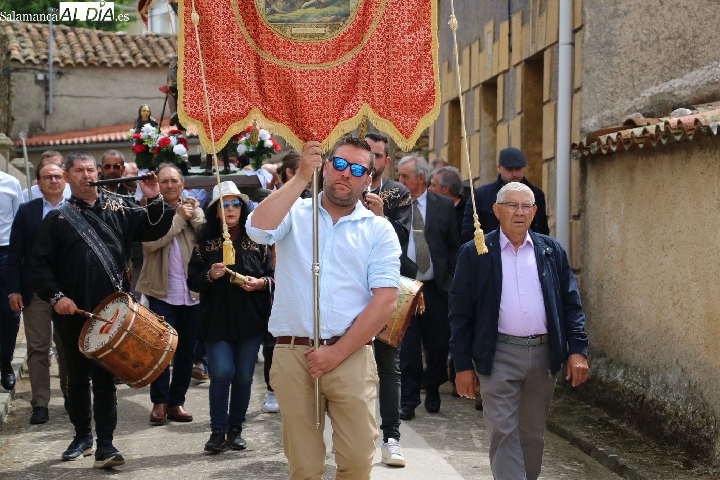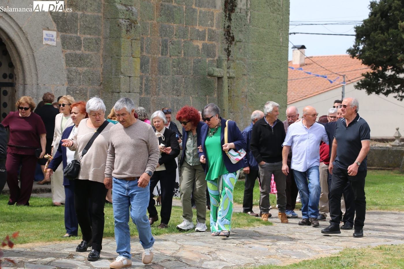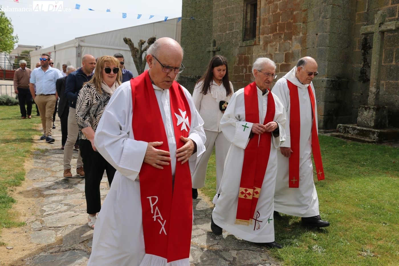 Durante este jueves, 23 de abril, día grande de las fiestas, los vecinos han participado pasado el mediodía en la eucaristía en honor al Patrón. El acto religioso ha estado cooficiado por los sacerdotes del Arciprestazgo del Abadengo y amenizado por los sones de Ángel Rufino, 'El Mariquelo', quien en esta ocasión ha estado acompañado por Álvaro, 'El mozo de Linares'.