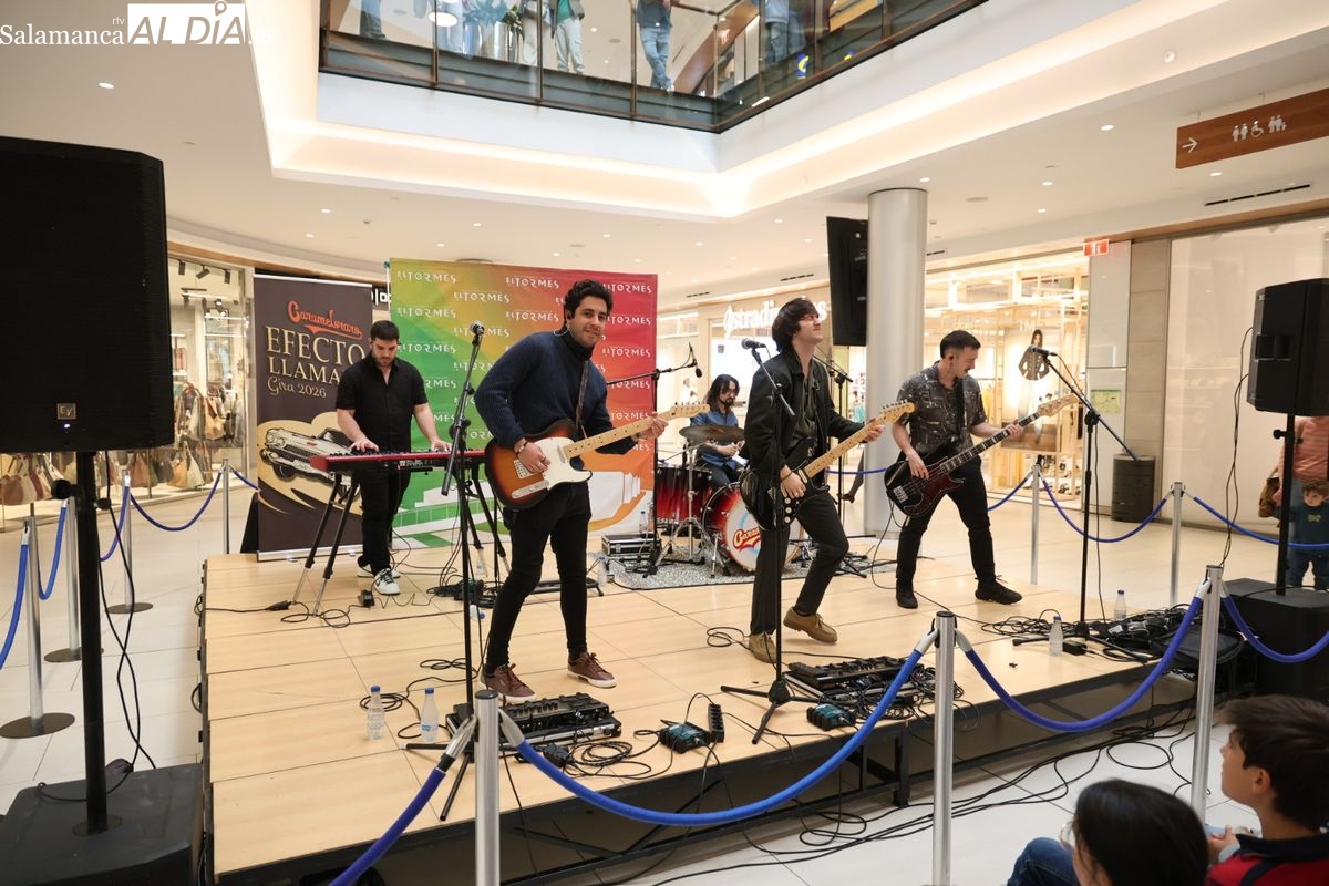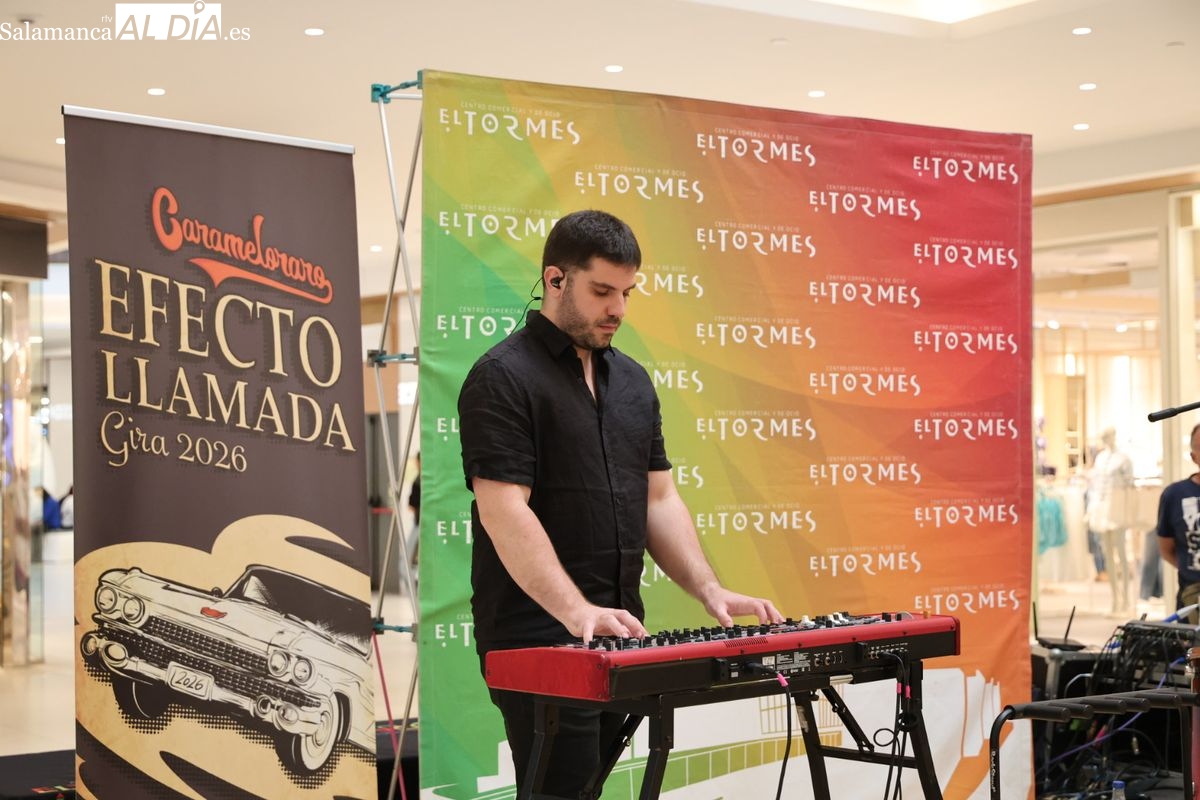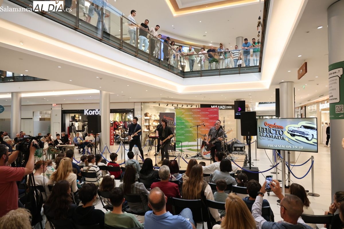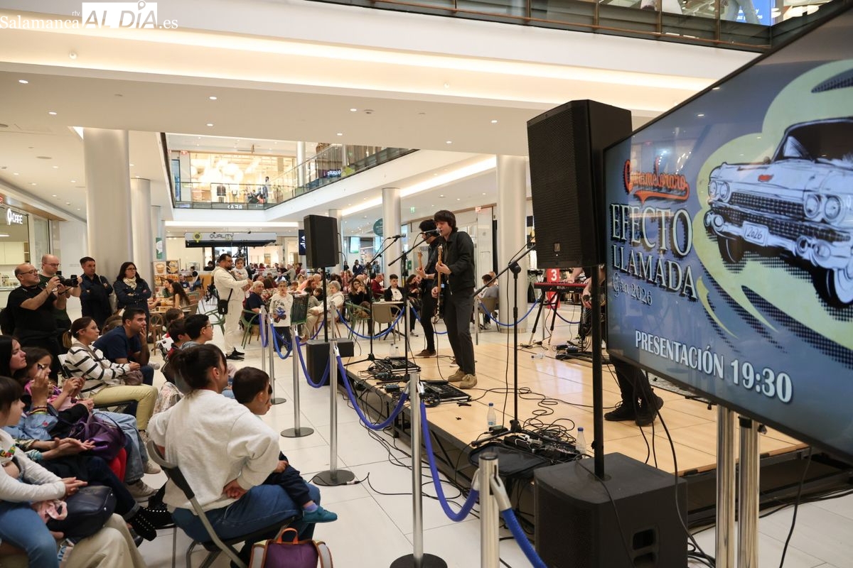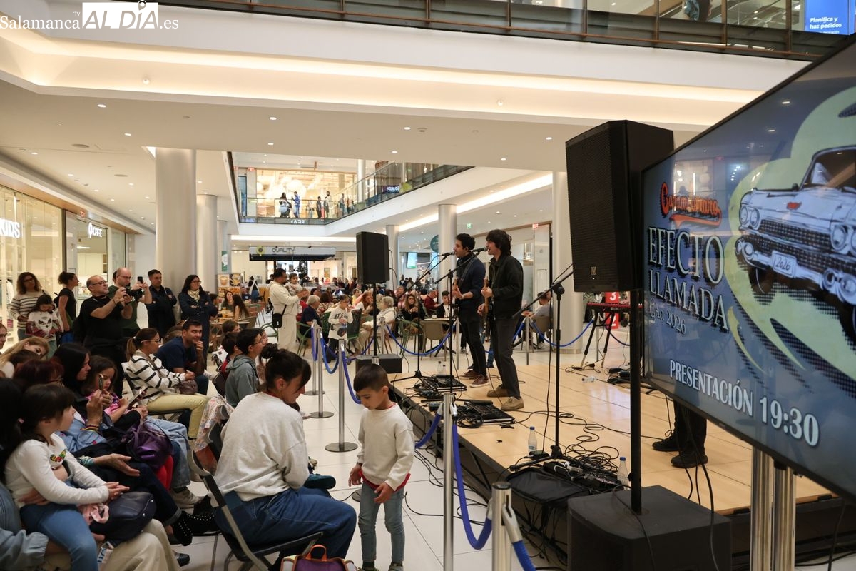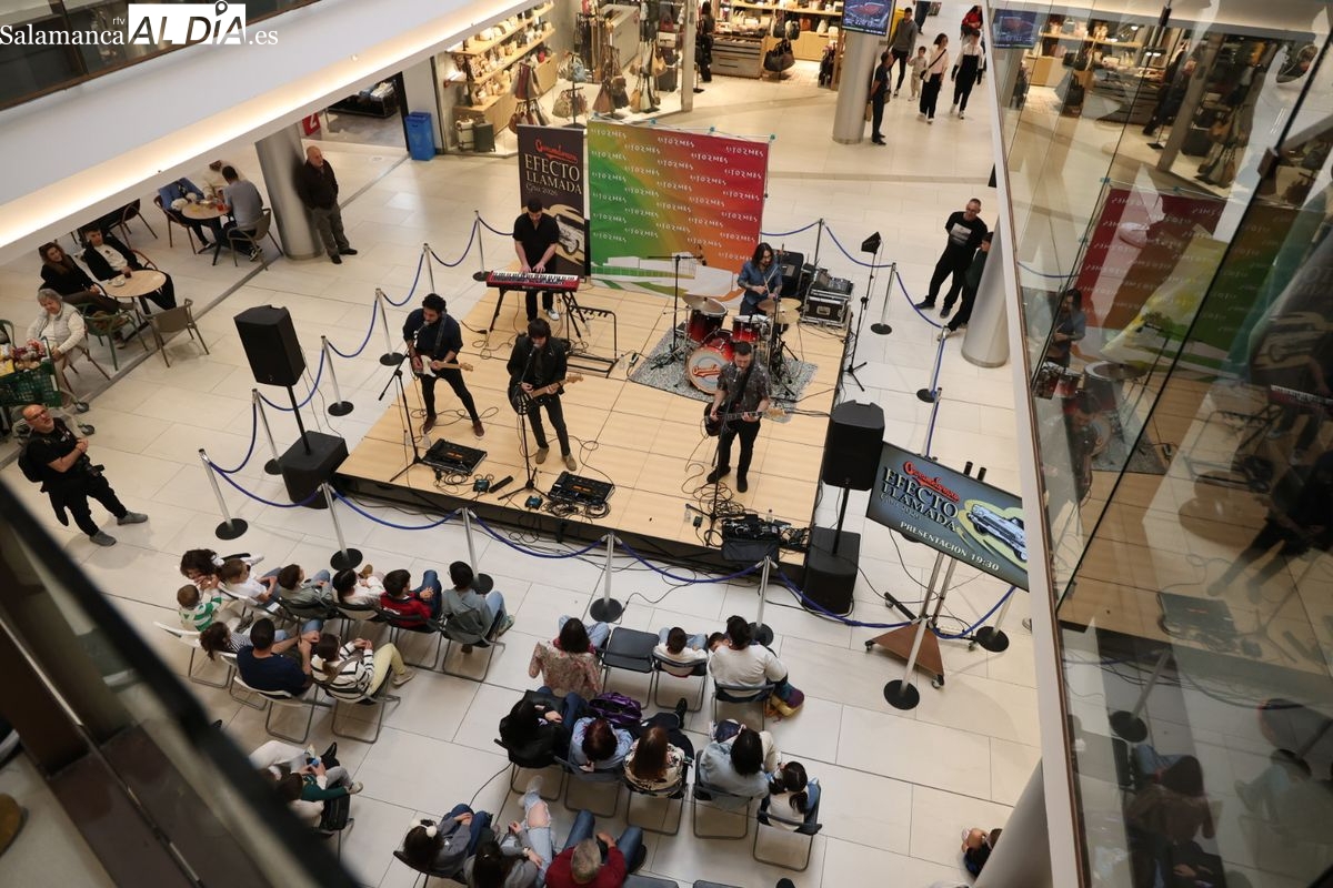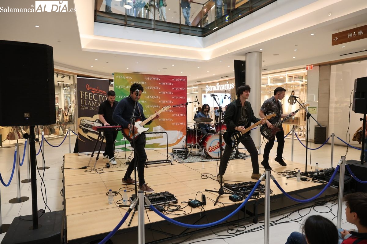 El Centro Comercial El Tormes ha acogido este viernes, 24 de abril, la presentación oficial de la gira nacional 'Efecto Llamada' del grupo salmantino Carameloraro. El evento ha combinado música en directo con proyecciones audiovisuales.