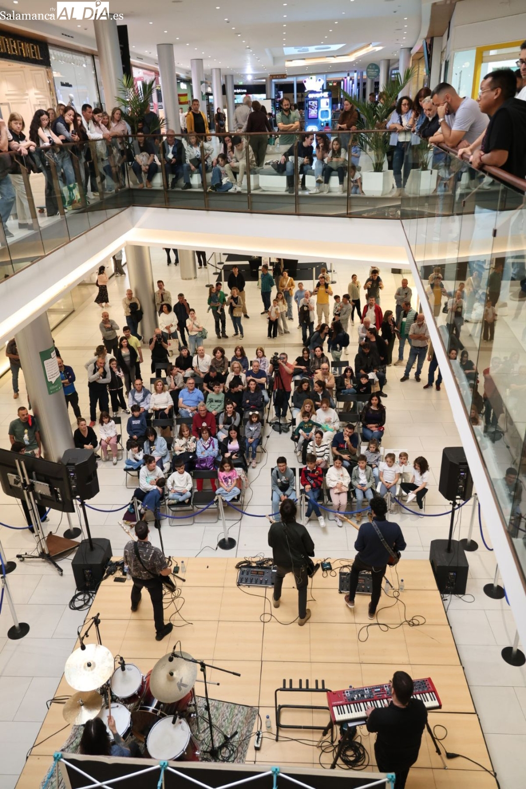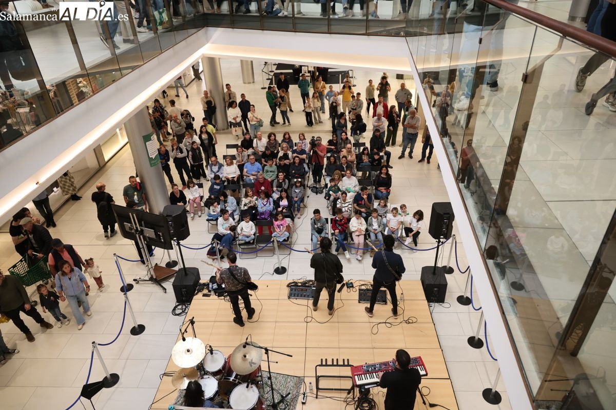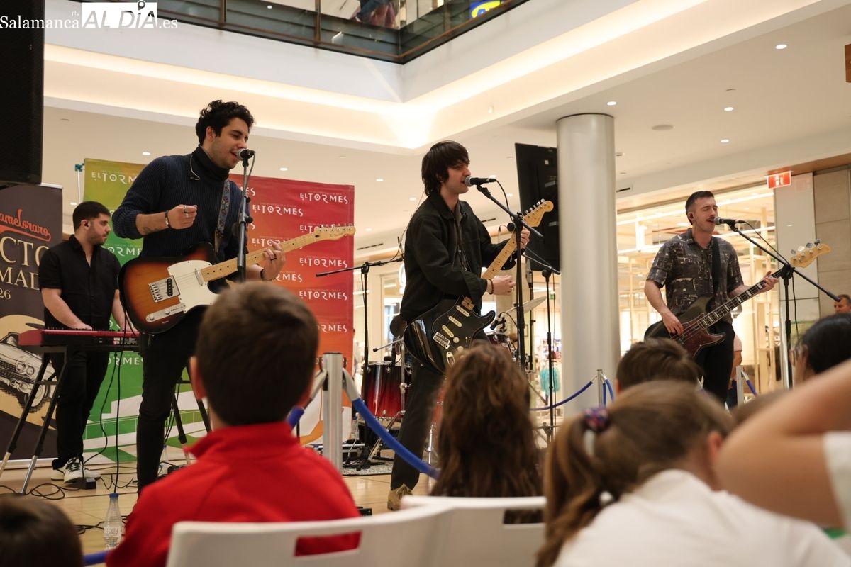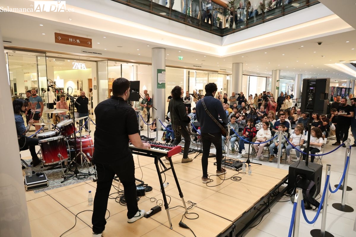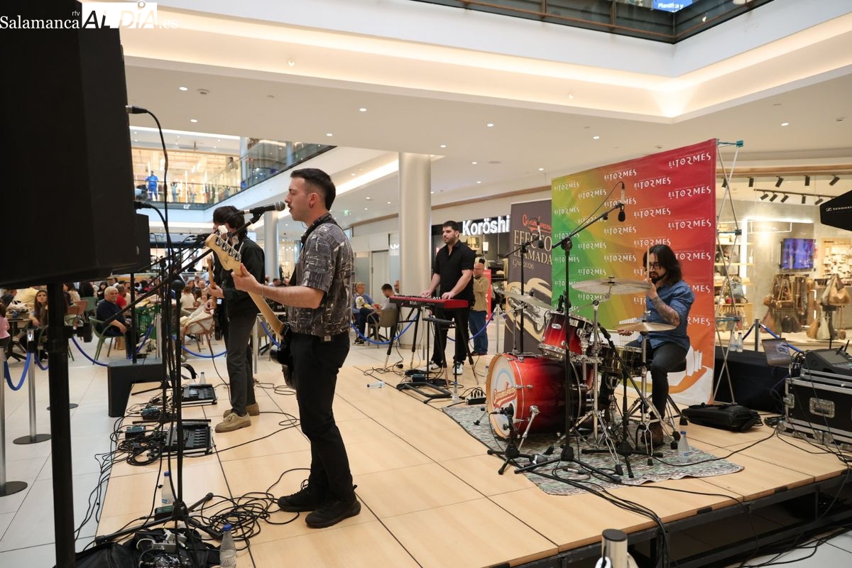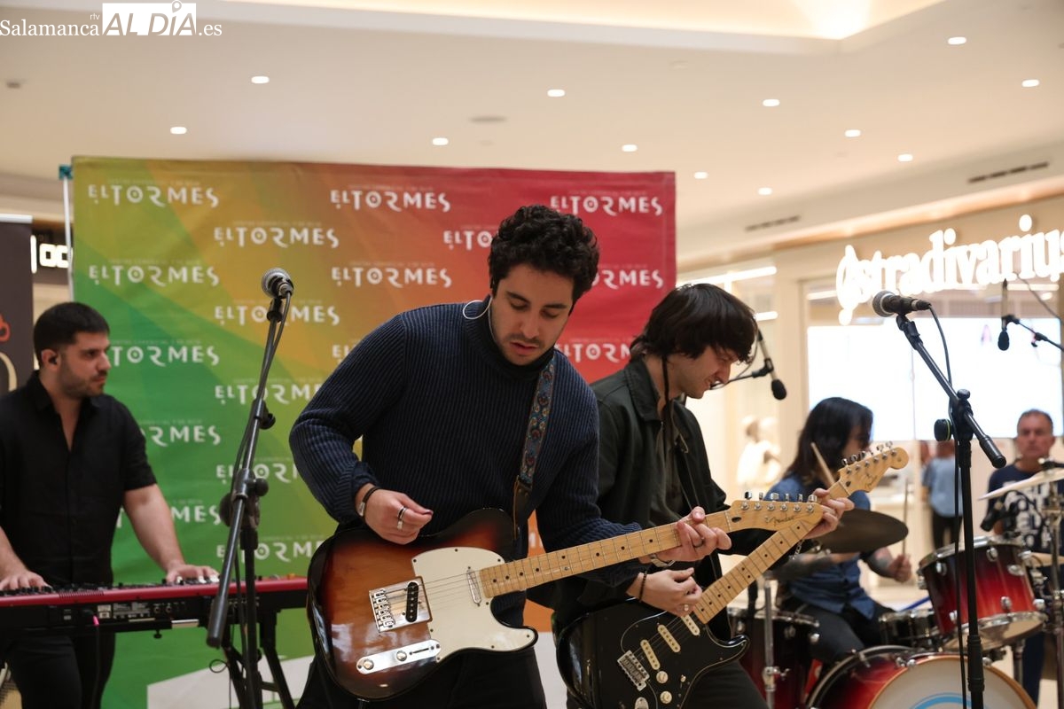 El Centro Comercial El Tormes ha acogido este viernes, 24 de abril, la presentación oficial de la gira nacional 'Efecto Llamada' del grupo salmantino Carameloraro. El evento ha combinado música en directo con proyecciones audiovisuales.