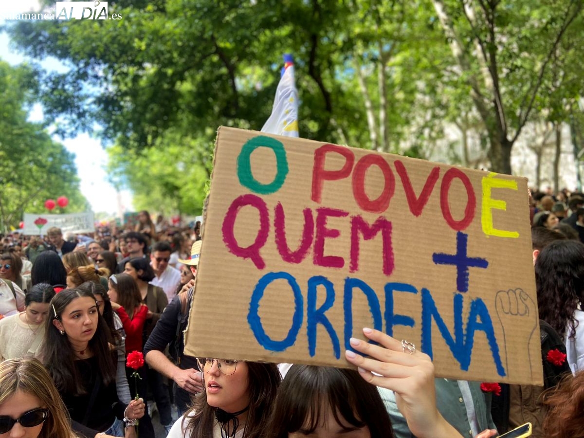 Descender la tarde del 25 de abril la Avenida da Liberdade juntos, con claveles, cánticos, proclamas y reivindicaciones es una costumbre vivida año tras año por personas de todas las edades, que acuden a esta cita con amigos, familiares o formando parte de colectivos. La fecha se convierte en fiesta, pero también en protesta y reclamación de derechos y en un recordatorio de que la libertad es un tesoro muy valioso que el pueblo portugués ganó un día y no quiere vivir sin él nunca más. Los mayores reflejan en su rostro la dignidad y los jóvenes la unión en la esperanza de resolver los problemas de su día a día.