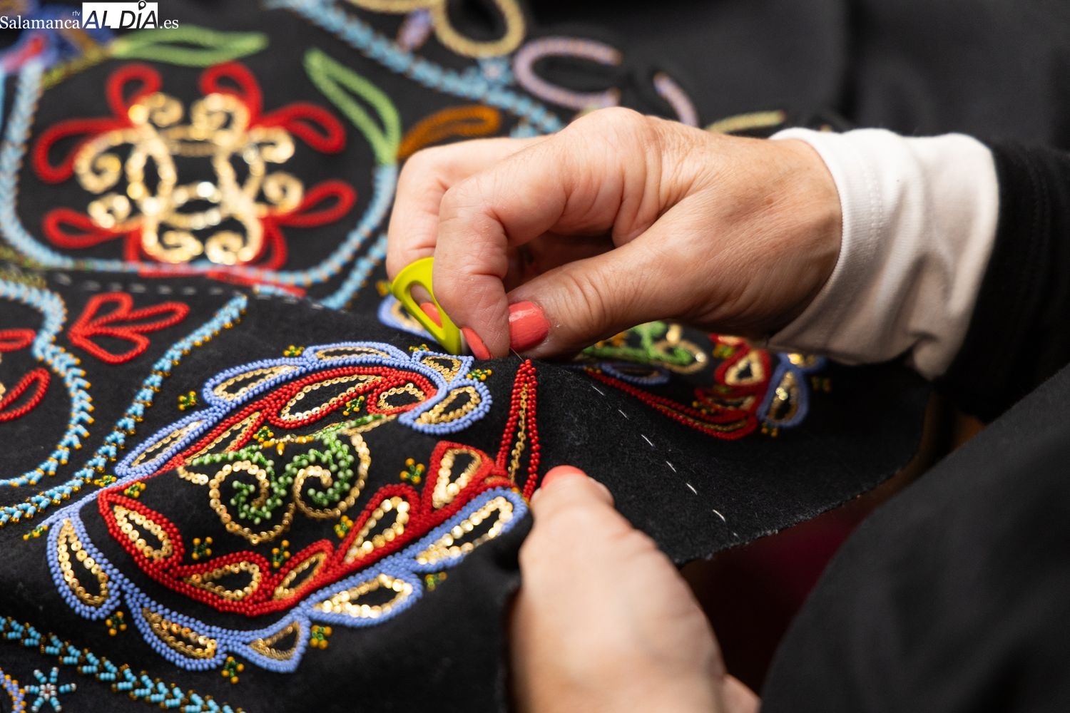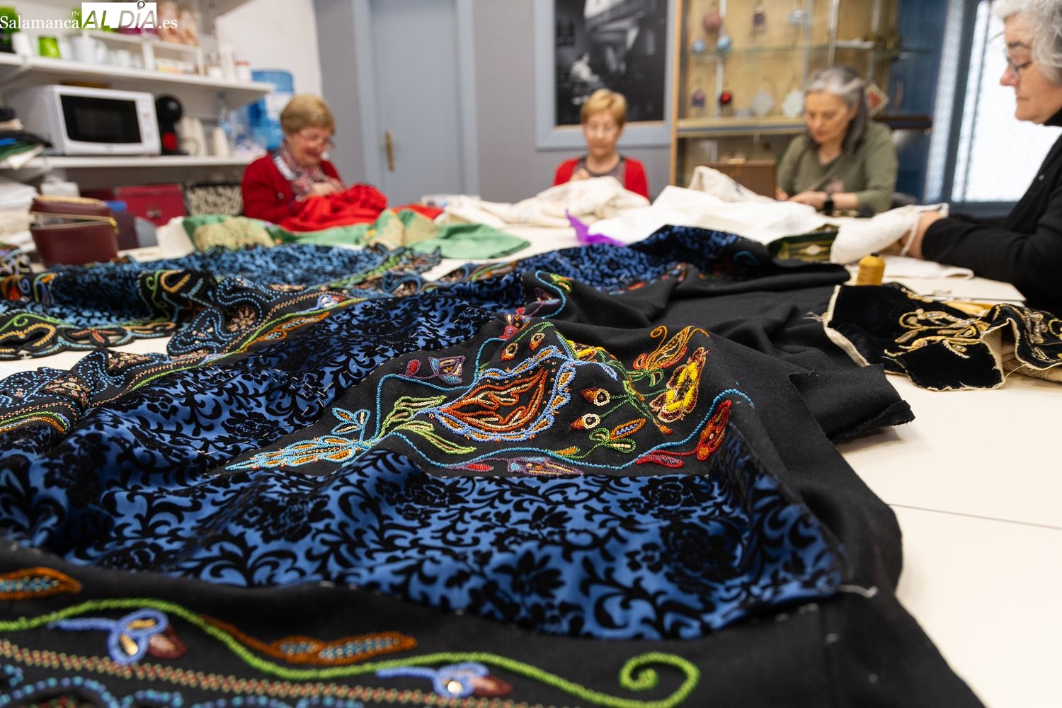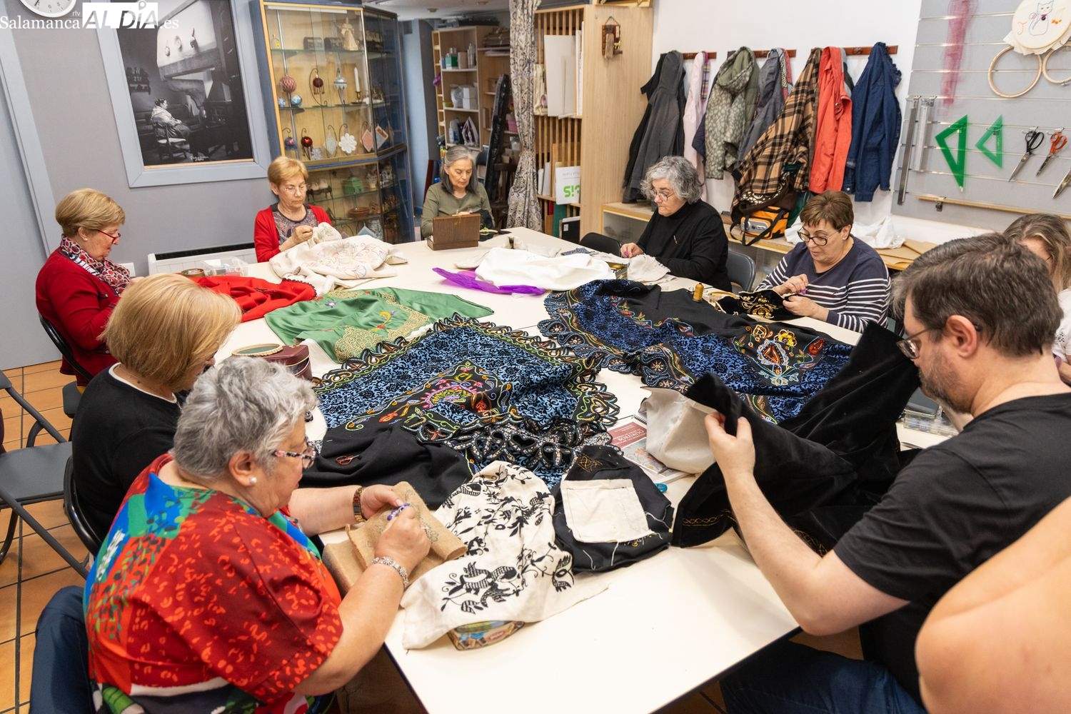 El catálogo de labores que se imparten en el aula abarca la práctica totalidad de los adornos históricos. Entre las técnicas más demandadas, el bordado con mostacillas destaca especialmente. "Suele llamar mucho la atención por lo vistoso que es y gusta mucho", ha señalado el charro. Sin embargo, el currículo va mucho más allá, incluyendo el bordado de mantones, el bordado a realce, los deshilados y las vainicas.