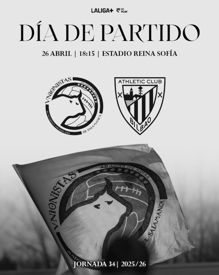 ¡Saludos y bienvenidos a la retransmisión en directo del Unionistas - Bilbao Athletic! Desde SALAMANCArtv AL DÍA te contamos todo lo que pase en el partido y así no te pierdes absolutamente nada gracias a nuestro minuto a minuto. El balón comenzará a rodar en el Reina Sofía a partir de las 18:15 horas en la jornada 34 de Liga de Primera Federación.