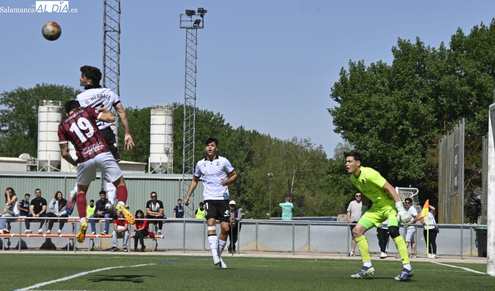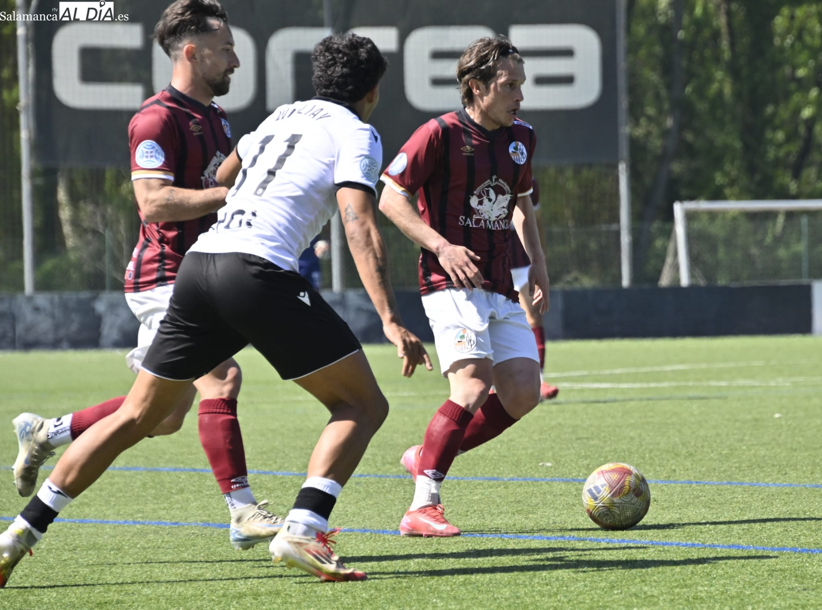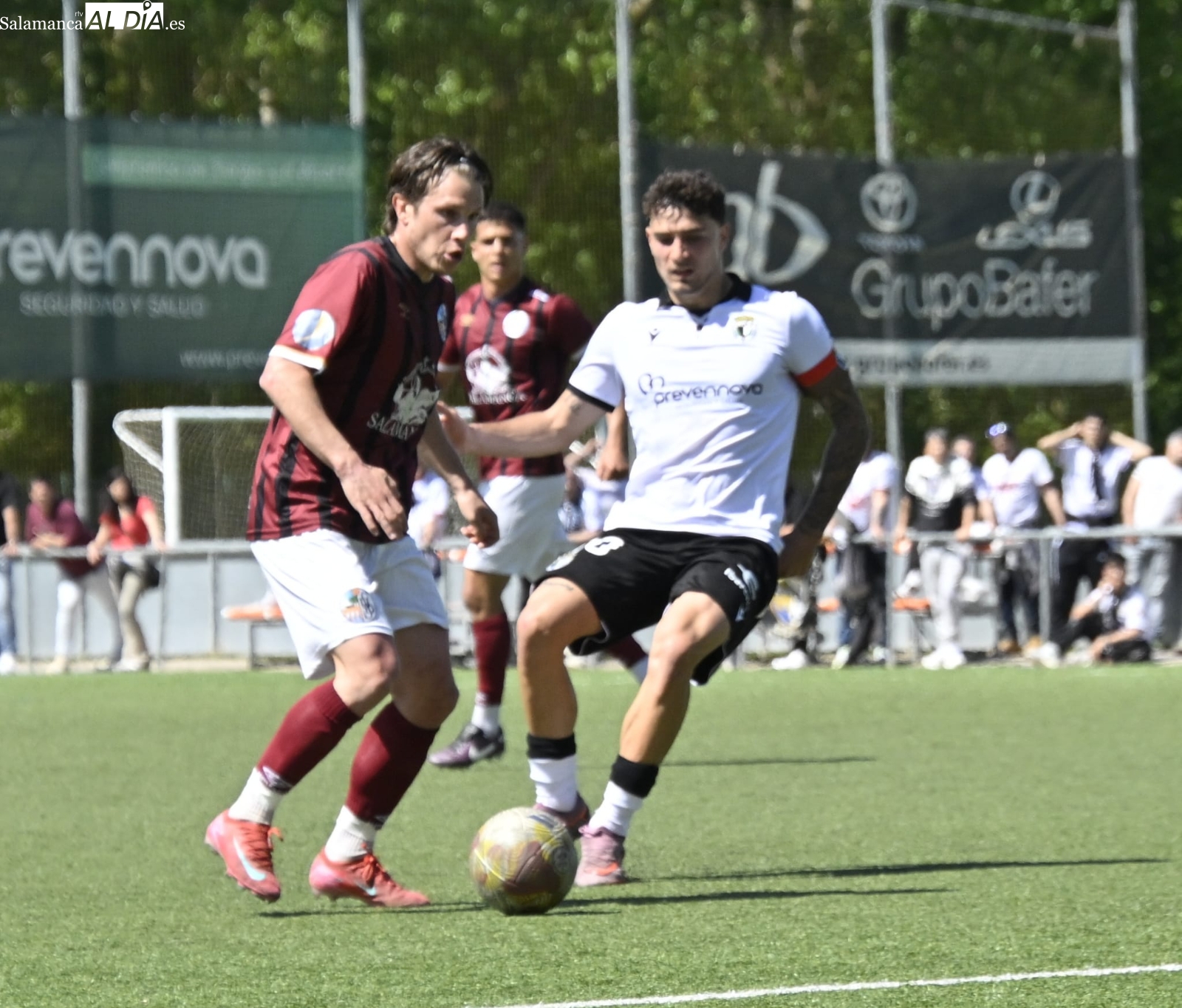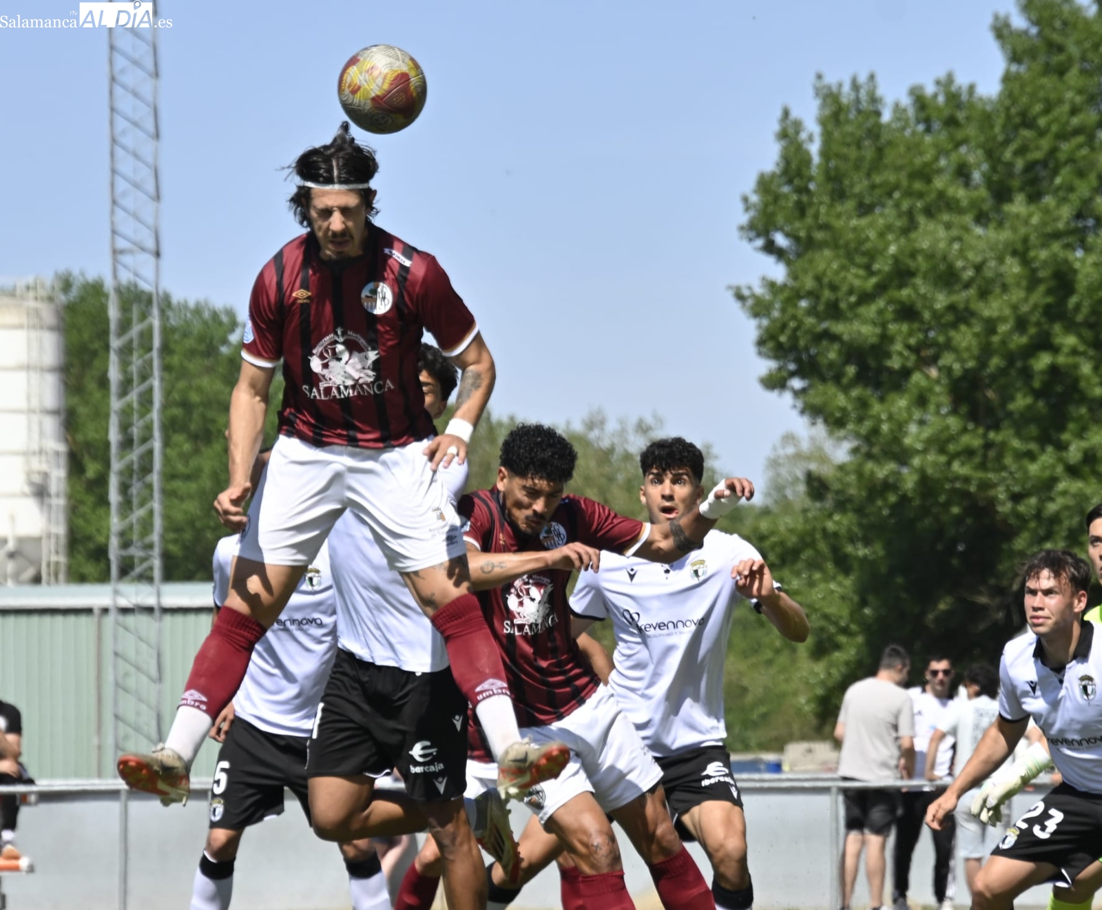 En los primeros compases, la igualdad ha sido la tónica dominante, pero las primeras ocasiones han llegado para los charros: primero con un tiro de Pulpón y luego con un cabezazo de Marotías, al que no ha llegado a remachar Murua en el segundo palo, a la salida de un córner. Más tarde sí que ha habido una oportunidad de los locales, que no han salido a regalar el encuentro pese a estar ya descendidos, por medio de Jan.