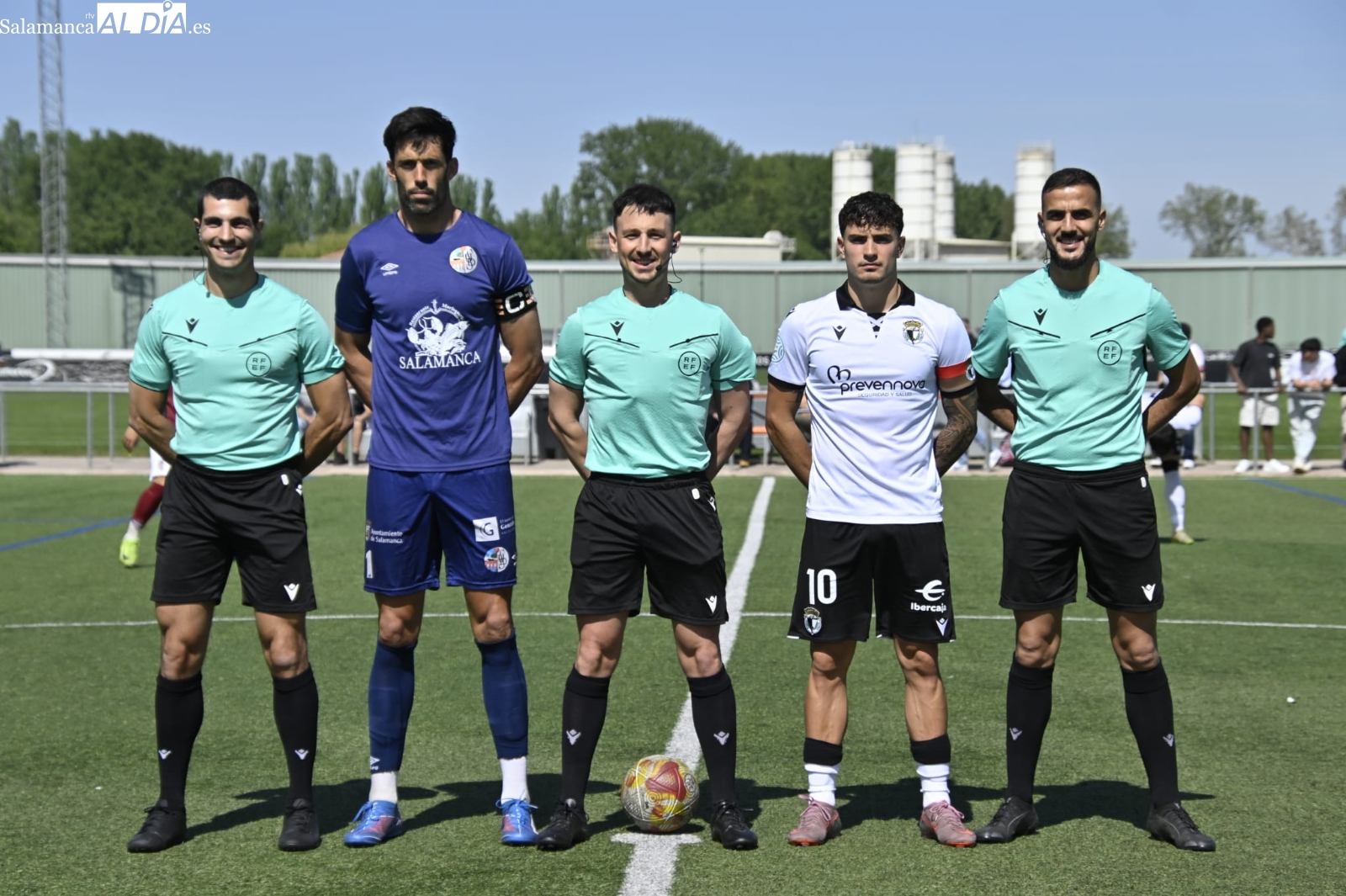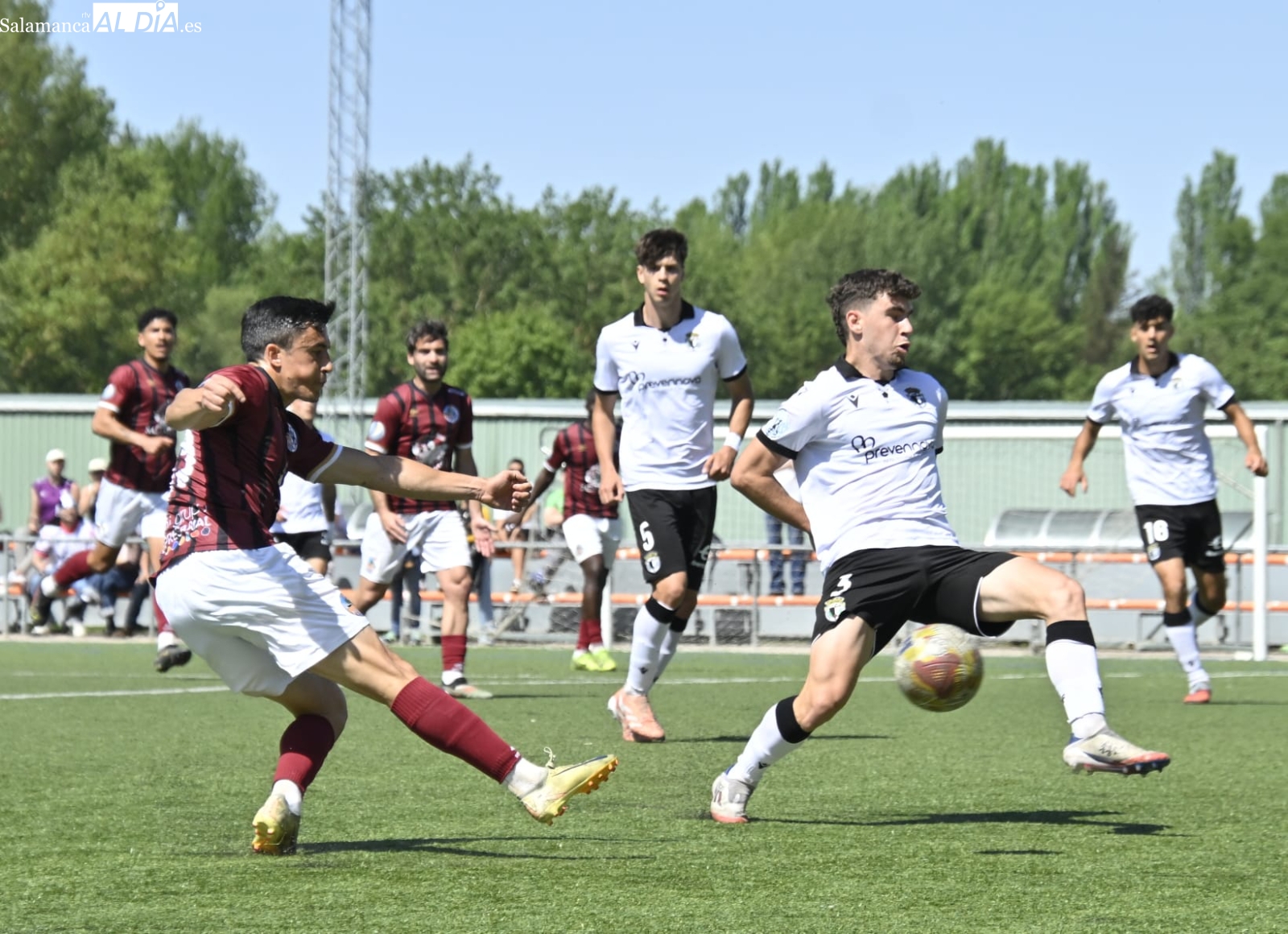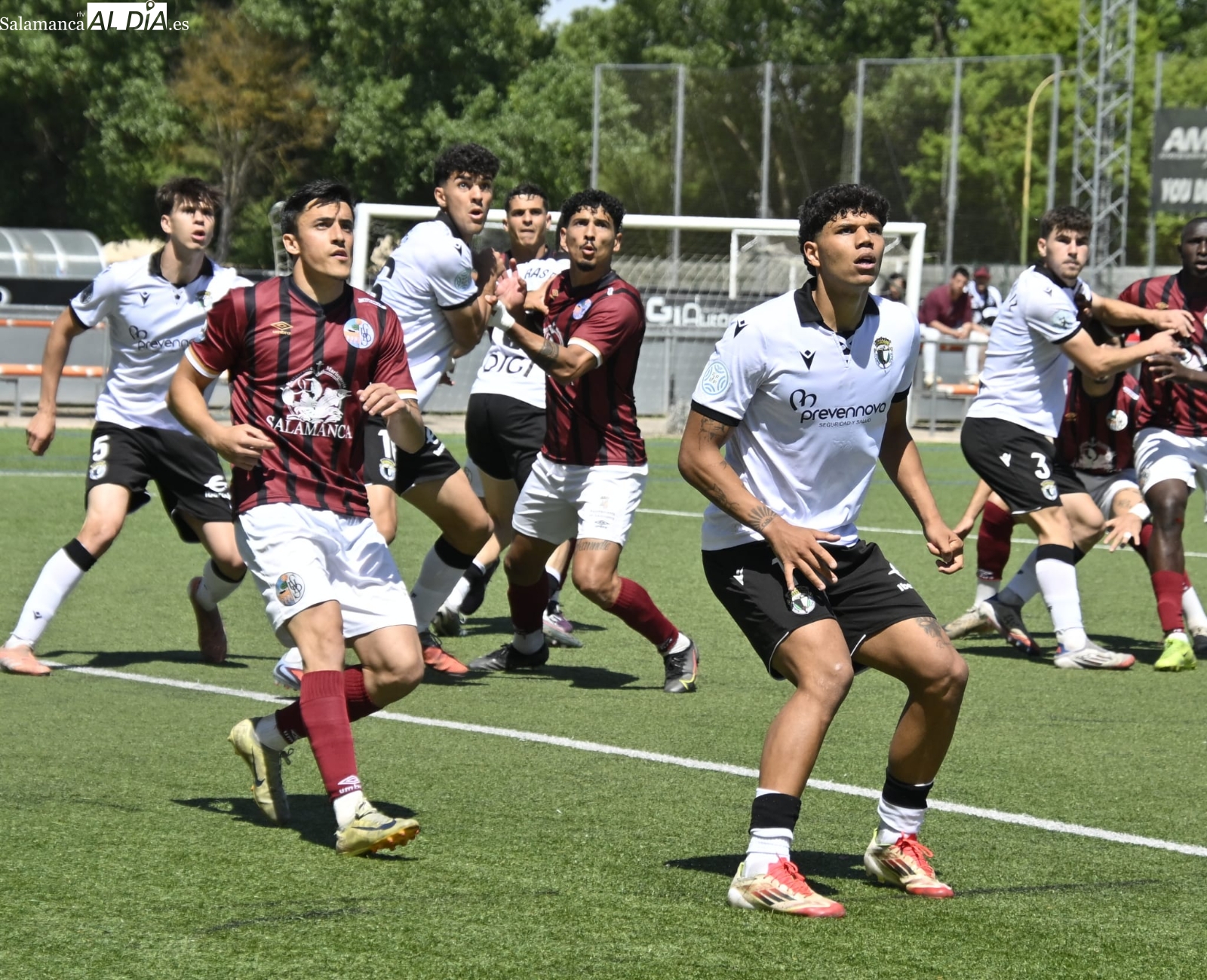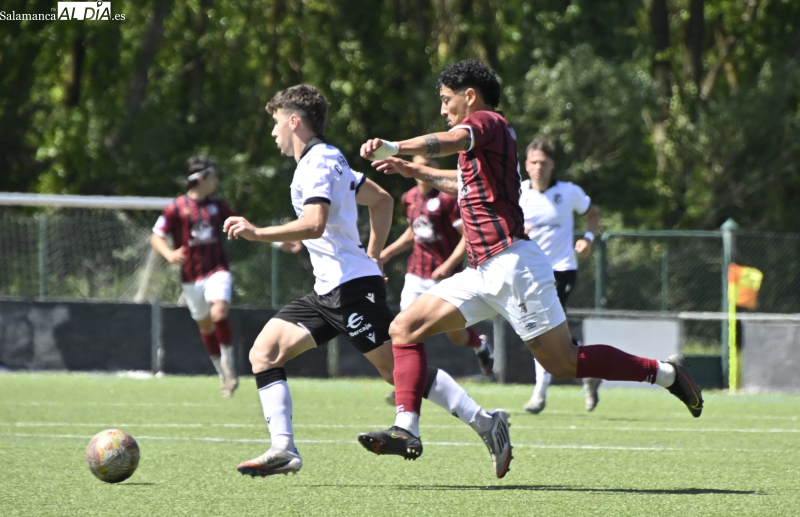 En los primeros compases, la igualdad ha sido la tónica dominante, pero las primeras ocasiones han llegado para los charros: primero con un tiro de Pulpón y luego con un cabezazo de Marotías, al que no ha llegado a remachar Murua en el segundo palo, a la salida de un córner. Más tarde sí que ha habido una oportunidad de los locales, que no han salido a regalar el encuentro pese a estar ya descendidos, por medio de Jan.