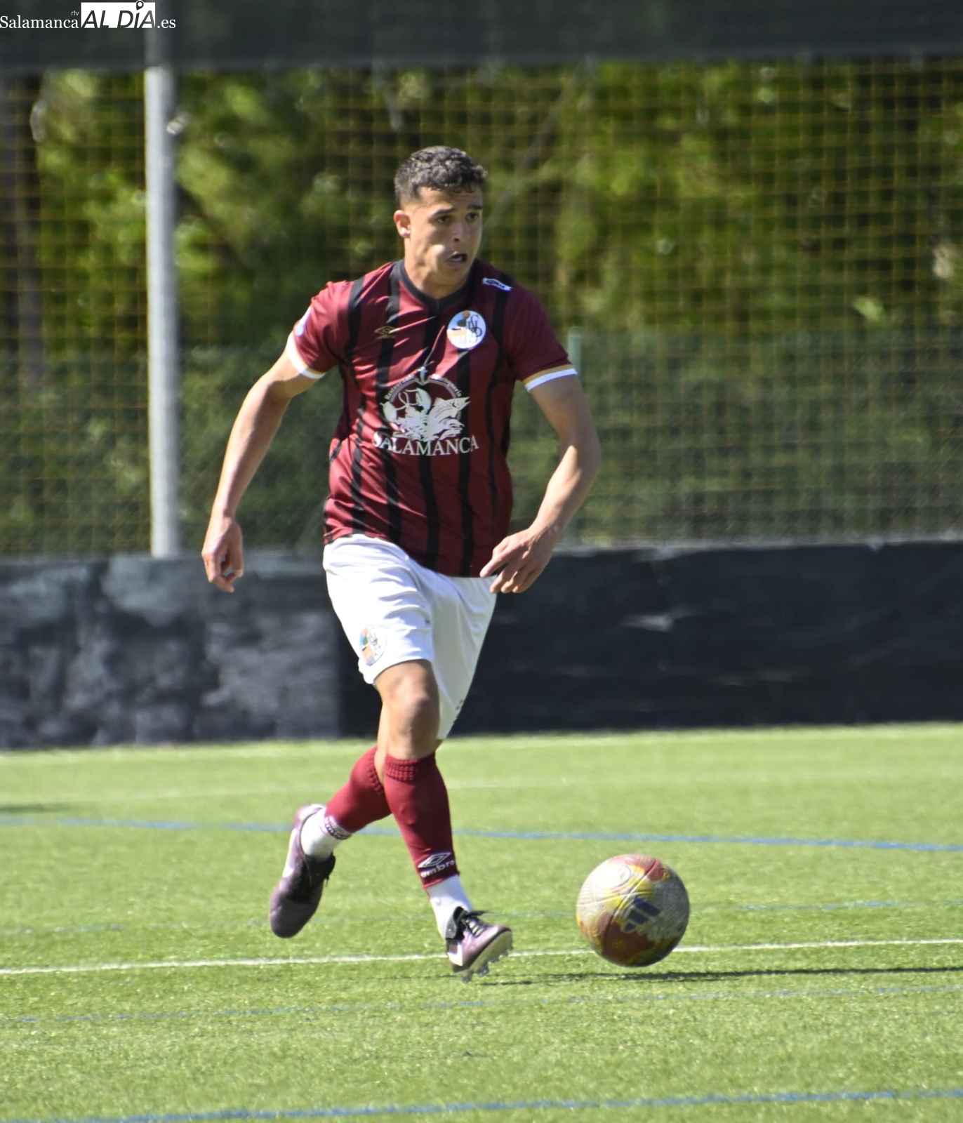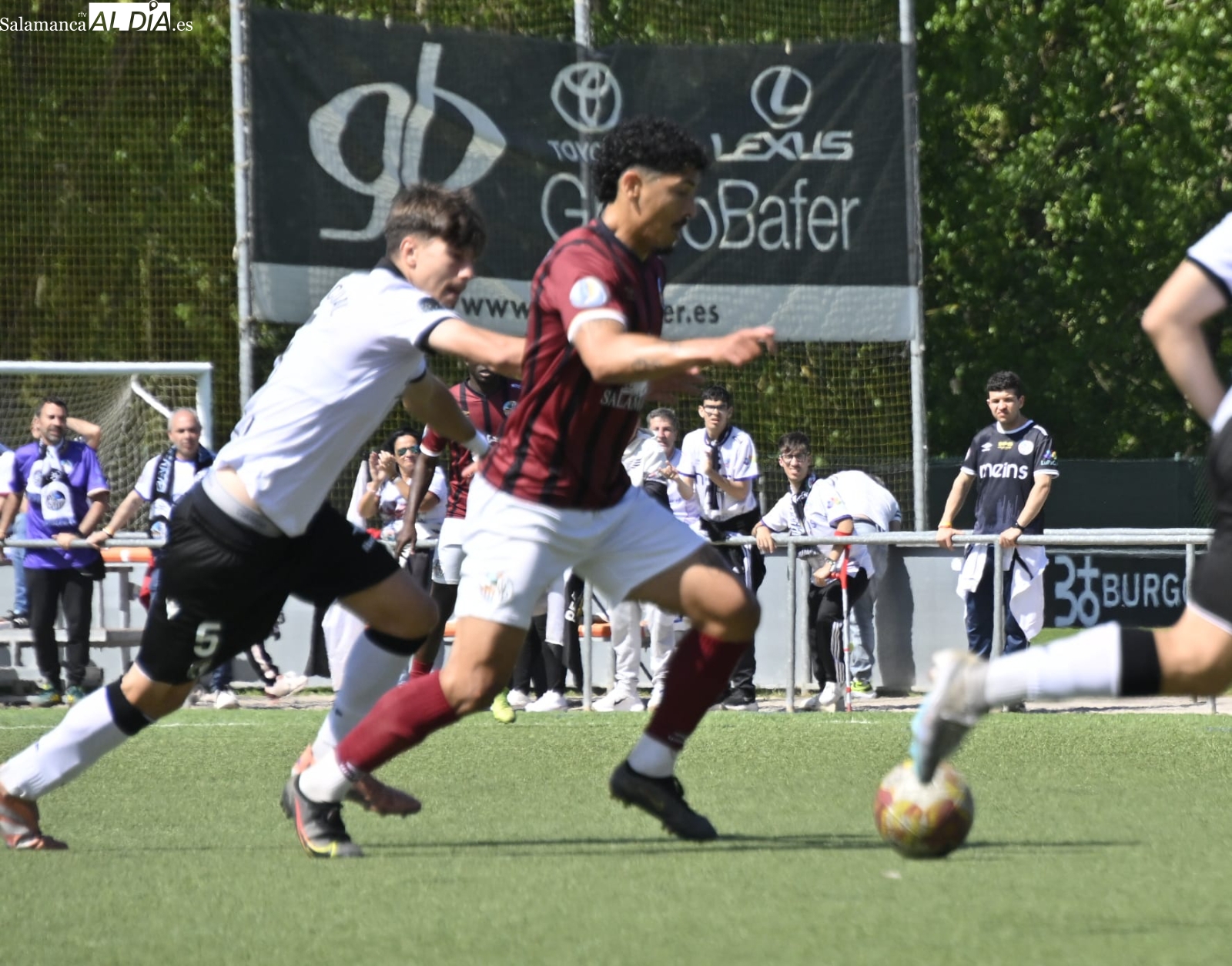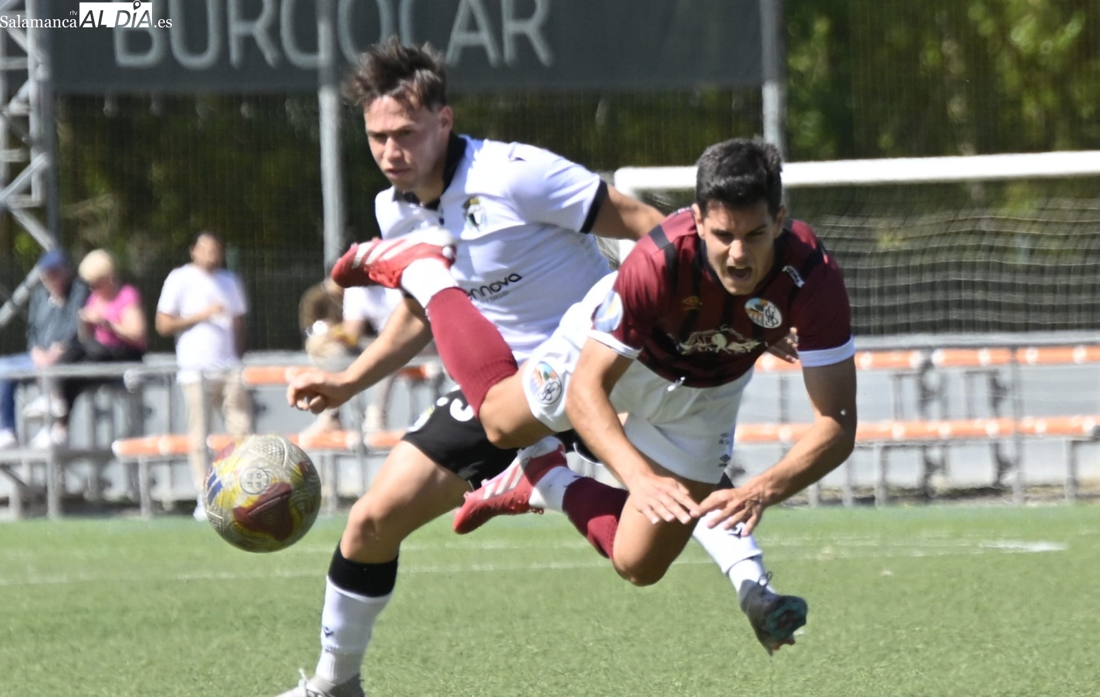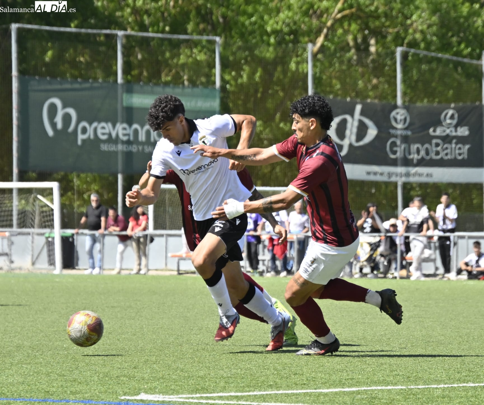 En los primeros compases, la igualdad ha sido la tónica dominante, pero las primeras ocasiones han llegado para los charros: primero con un tiro de Pulpón y luego con un cabezazo de Marotías, al que no ha llegado a remachar Murua en el segundo palo, a la salida de un córner. Más tarde sí que ha habido una oportunidad de los locales, que no han salido a regalar el encuentro pese a estar ya descendidos, por medio de Jan.