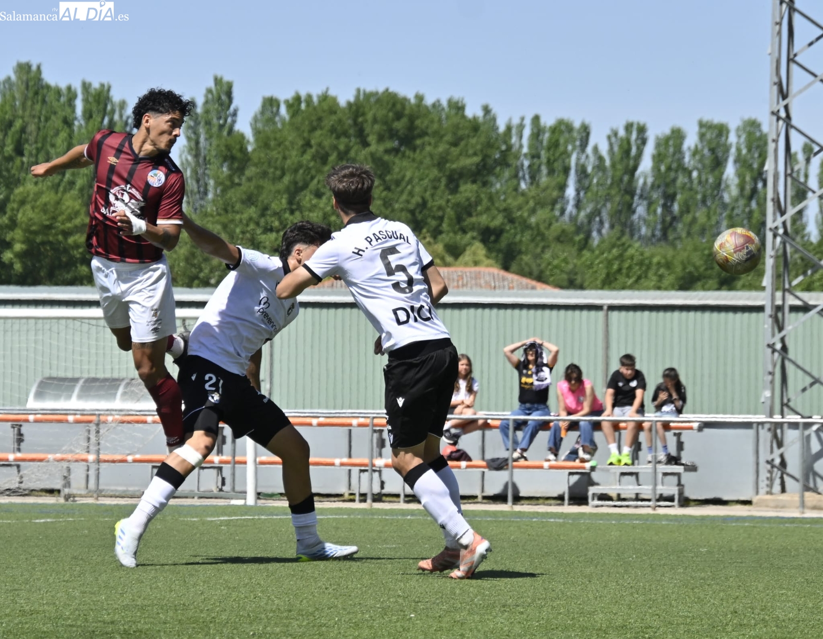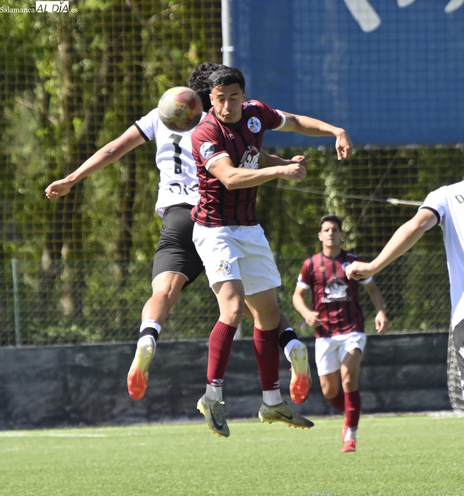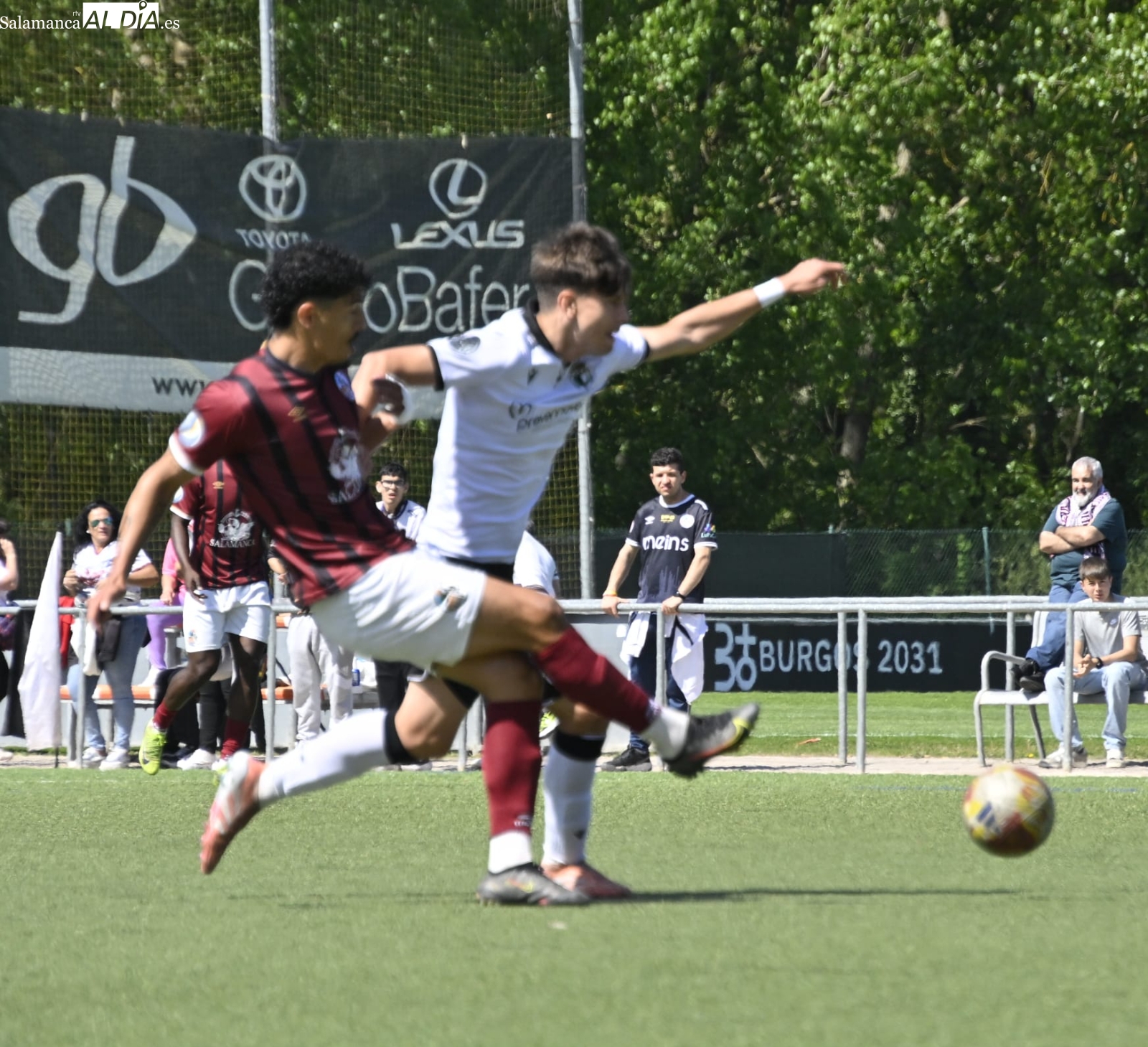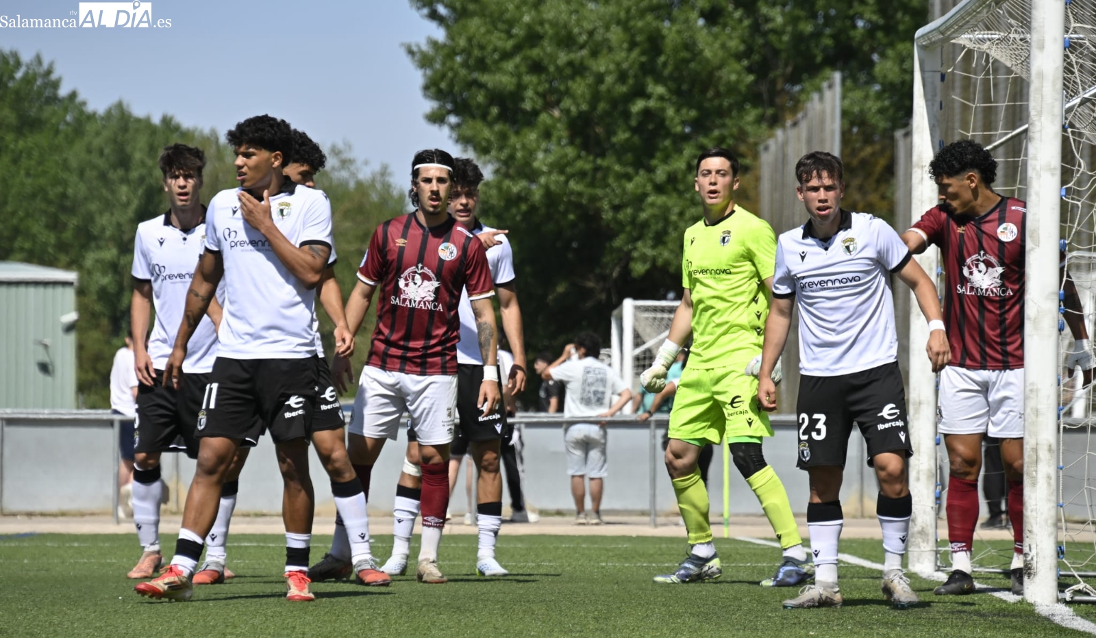En los primeros compases, la igualdad ha sido la tónica dominante, pero las primeras ocasiones han llegado para los charros: primero con un tiro de Pulpón y luego con un cabezazo de Marotías, al que no ha llegado a remachar Murua en el segundo palo, a la salida de un córner. Más tarde sí que ha habido una oportunidad de los locales, que no han salido a regalar el encuentro pese a estar ya descendidos, por medio de Jan.