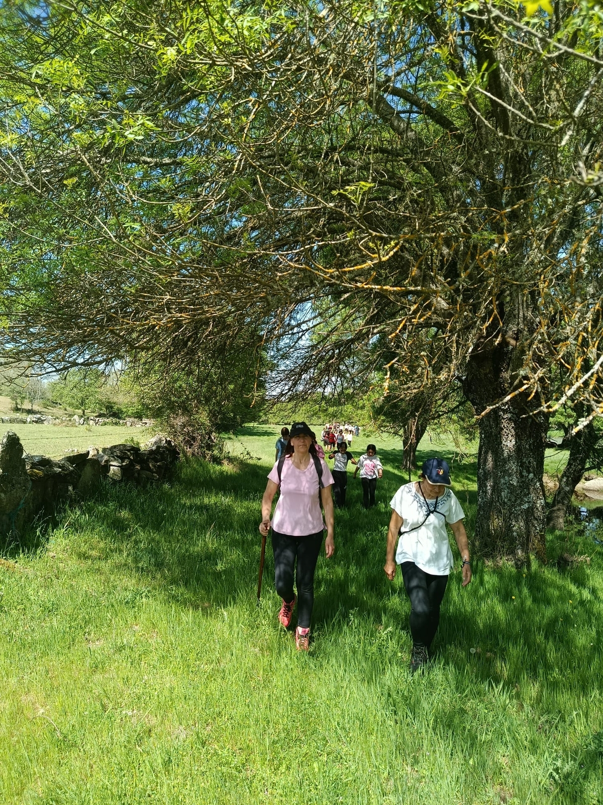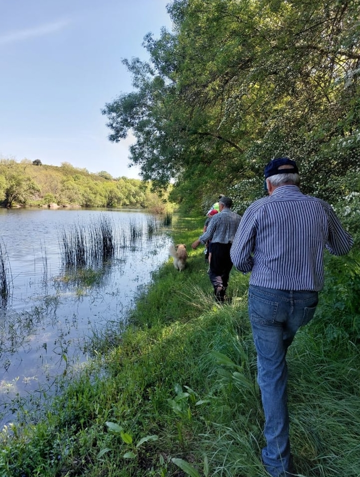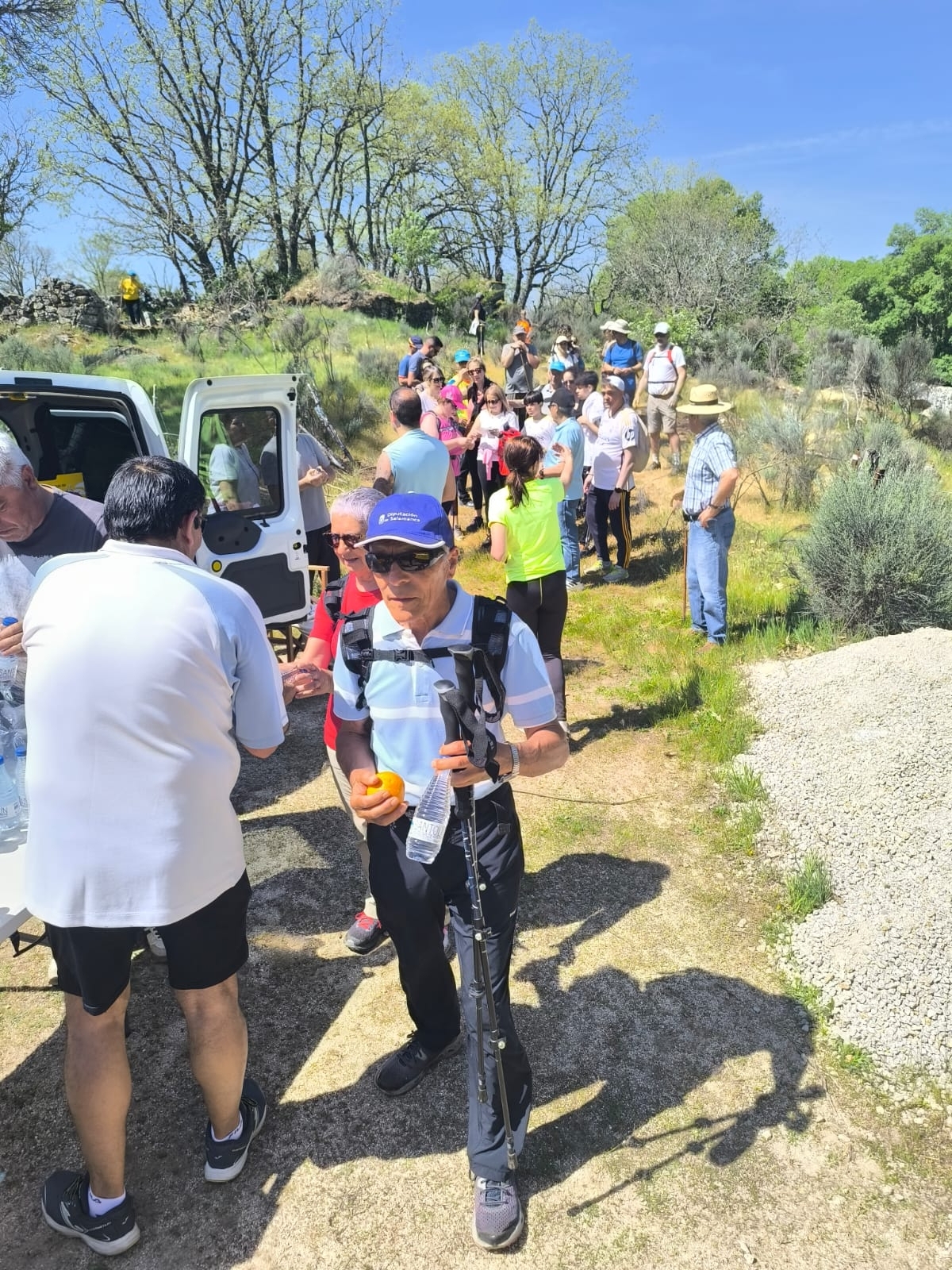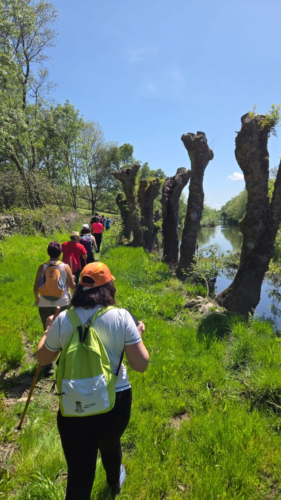 Tras la merecida pausa, la ruta continuó recorriendo las chorreras del río Uces y la vega de Pocito Redondo. En la Puente La Nava, los senderistas cambiaron de margen y recorrieron la orilla derecha del Río hasta llegar al Puente Germán, último paraje de paso antes de llegar al entorno de la mina de El Sancho, donde los participantes disfrutaron de una comida a base de carne asada a la brasa y de un postre rematado con la tradicional rosquilla. Tras el almuerzo, el paseo continuó hasta llegar al pueblo de Valderrodrigo.