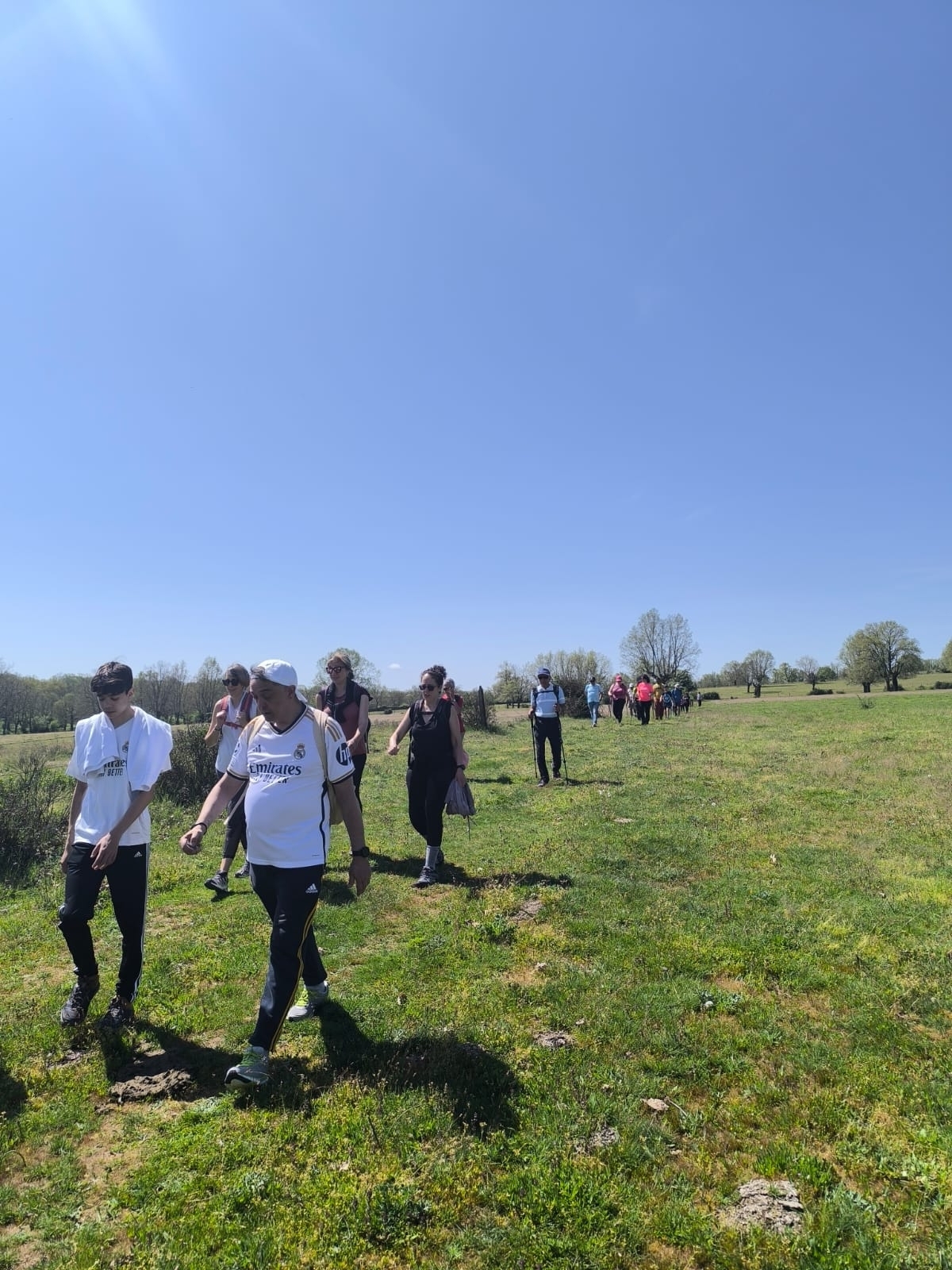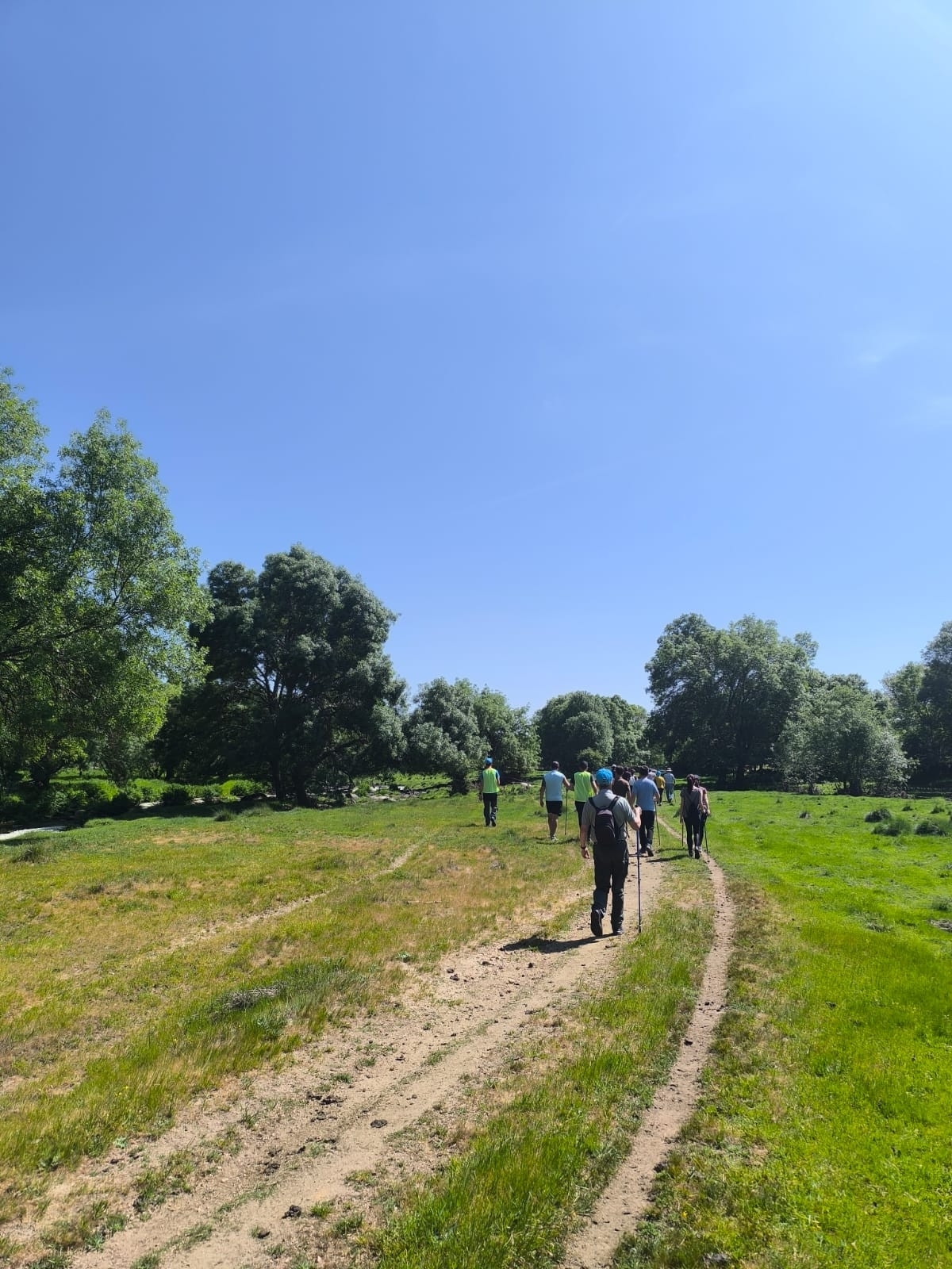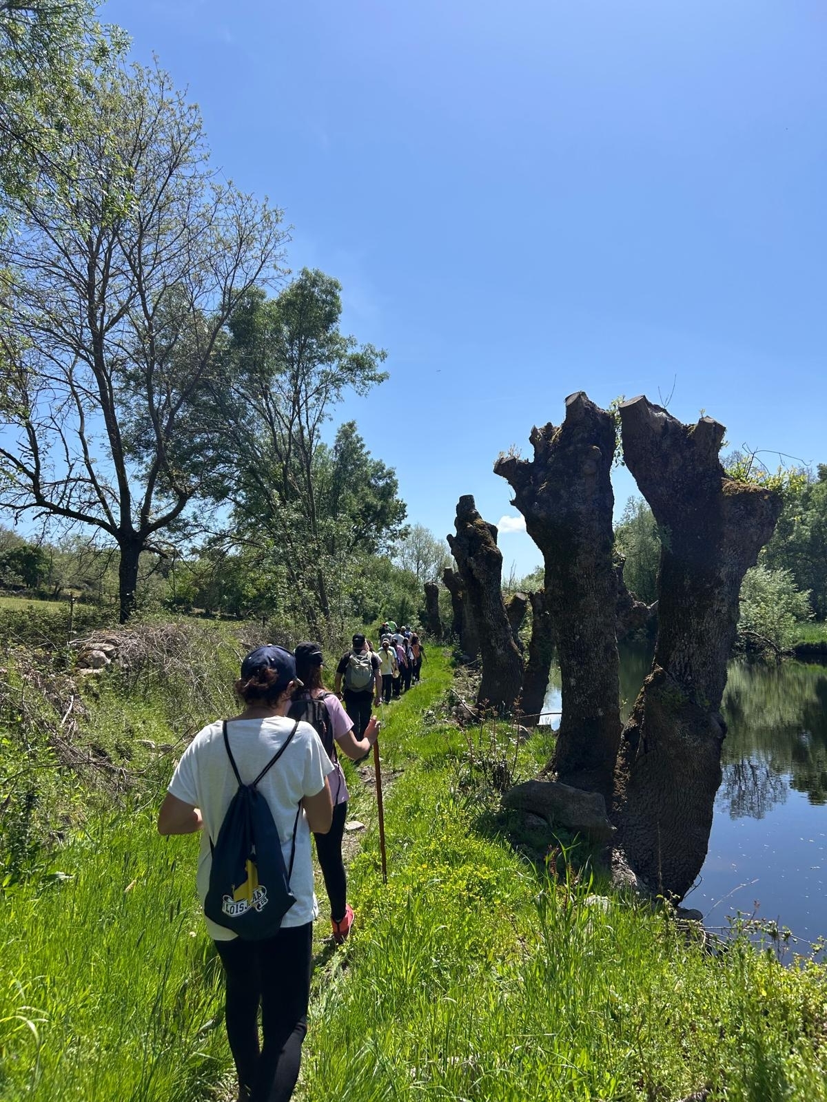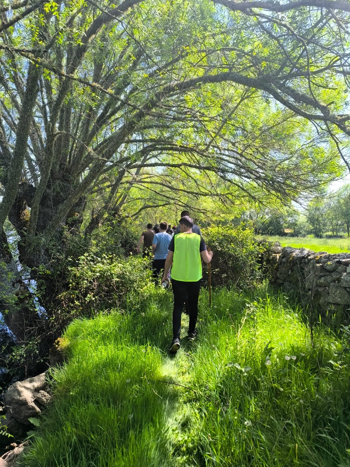 Tras la merecida pausa, la ruta continuó recorriendo las chorreras del río Uces y la vega de Pocito Redondo. En la Puente La Nava, los senderistas cambiaron de margen y recorrieron la orilla derecha del Río hasta llegar al Puente Germán, último paraje de paso antes de llegar al entorno de la mina de El Sancho, donde los participantes disfrutaron de una comida a base de carne asada a la brasa y de un postre rematado con la tradicional rosquilla. Tras el almuerzo, el paseo continuó hasta llegar al pueblo de Valderrodrigo.