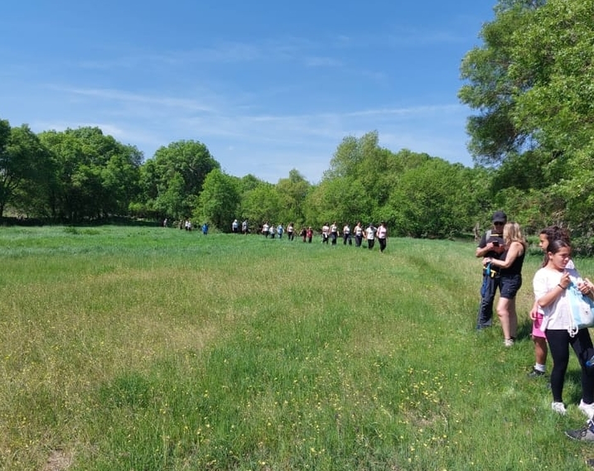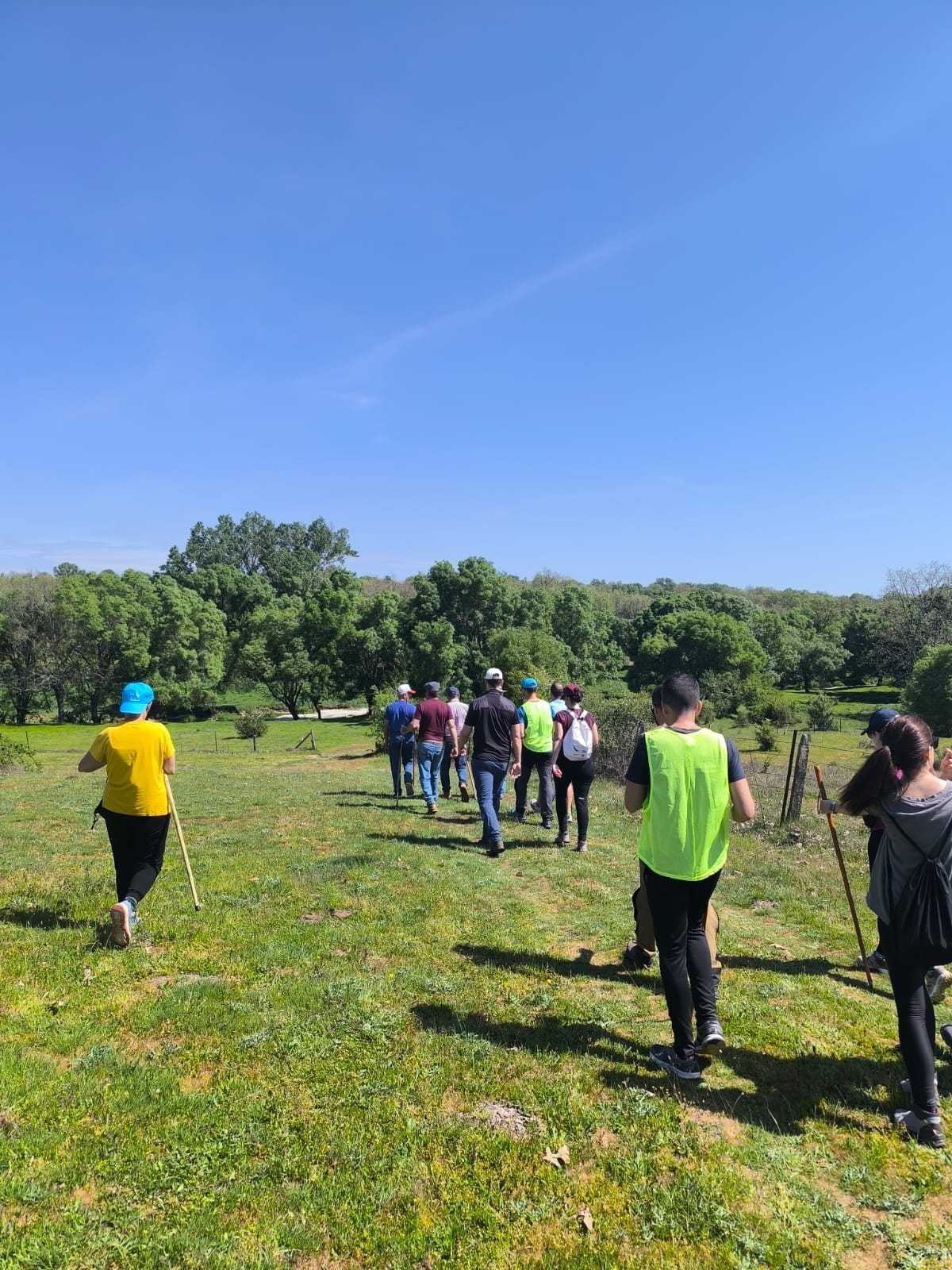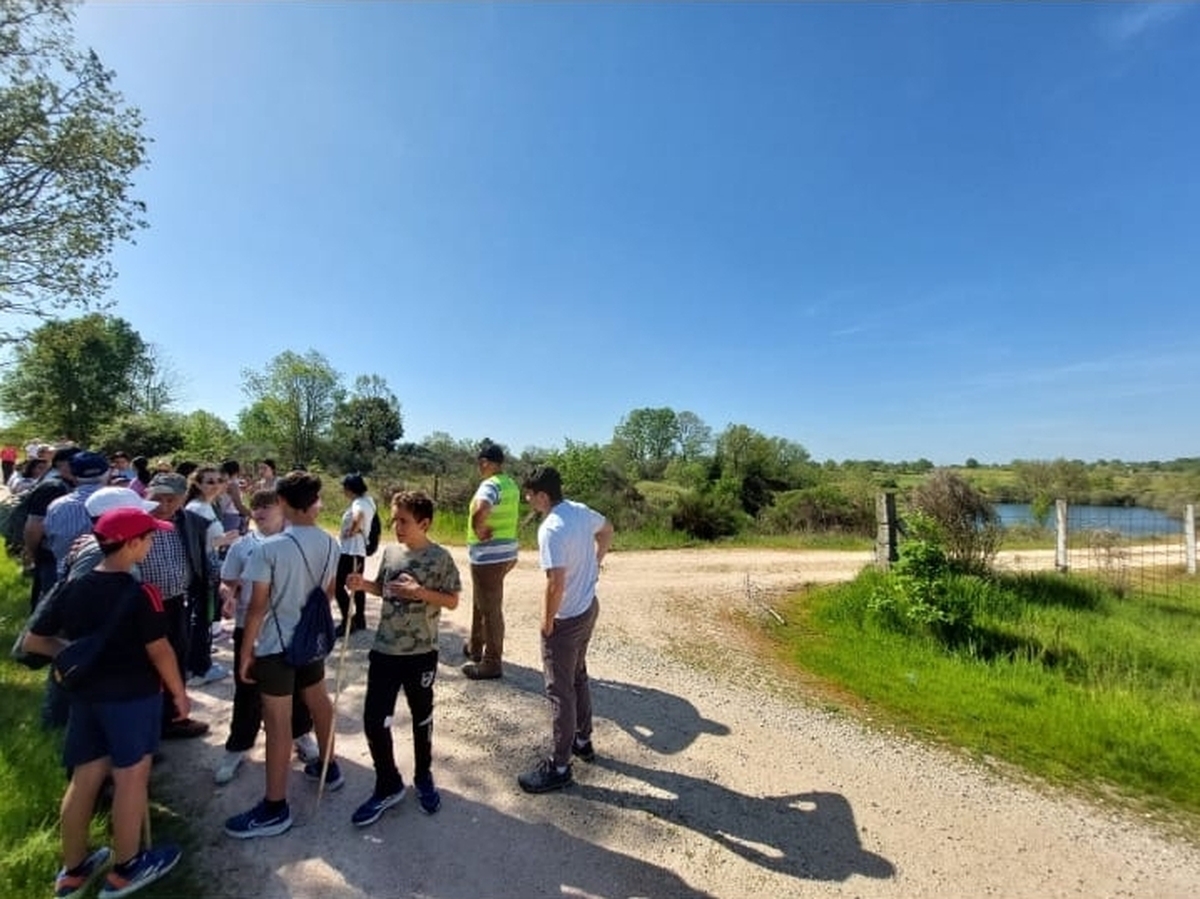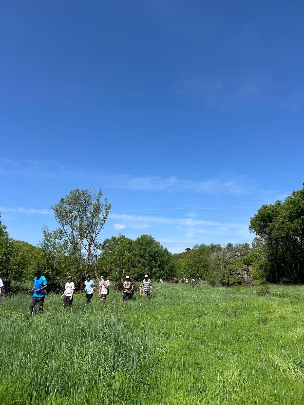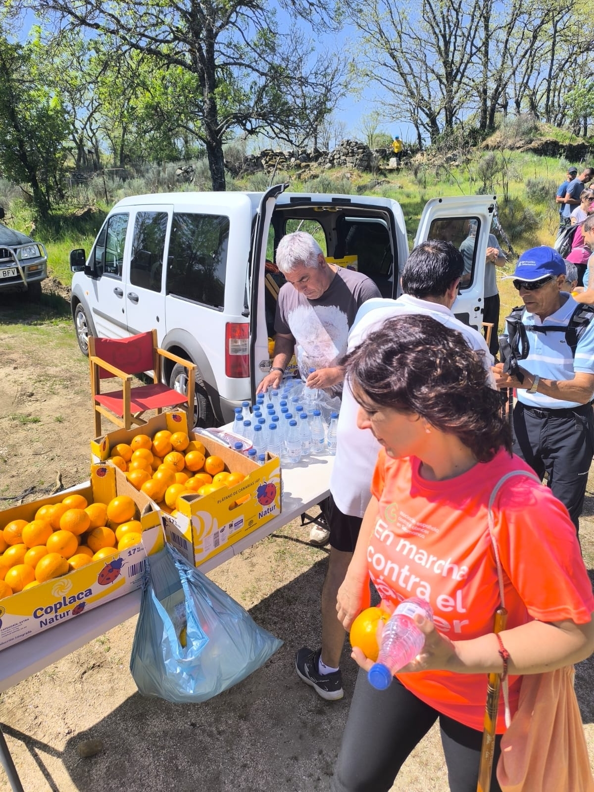 Tras la merecida pausa, la ruta continuó recorriendo las chorreras del río Uces y la vega de Pocito Redondo. En la Puente La Nava, los senderistas cambiaron de margen y recorrieron la orilla derecha del Río hasta llegar al Puente Germán, último paraje de paso antes de llegar al entorno de la mina de El Sancho, donde los participantes disfrutaron de una comida a base de carne asada a la brasa y de un postre rematado con la tradicional rosquilla. Tras el almuerzo, el paseo continuó hasta llegar al pueblo de Valderrodrigo.
