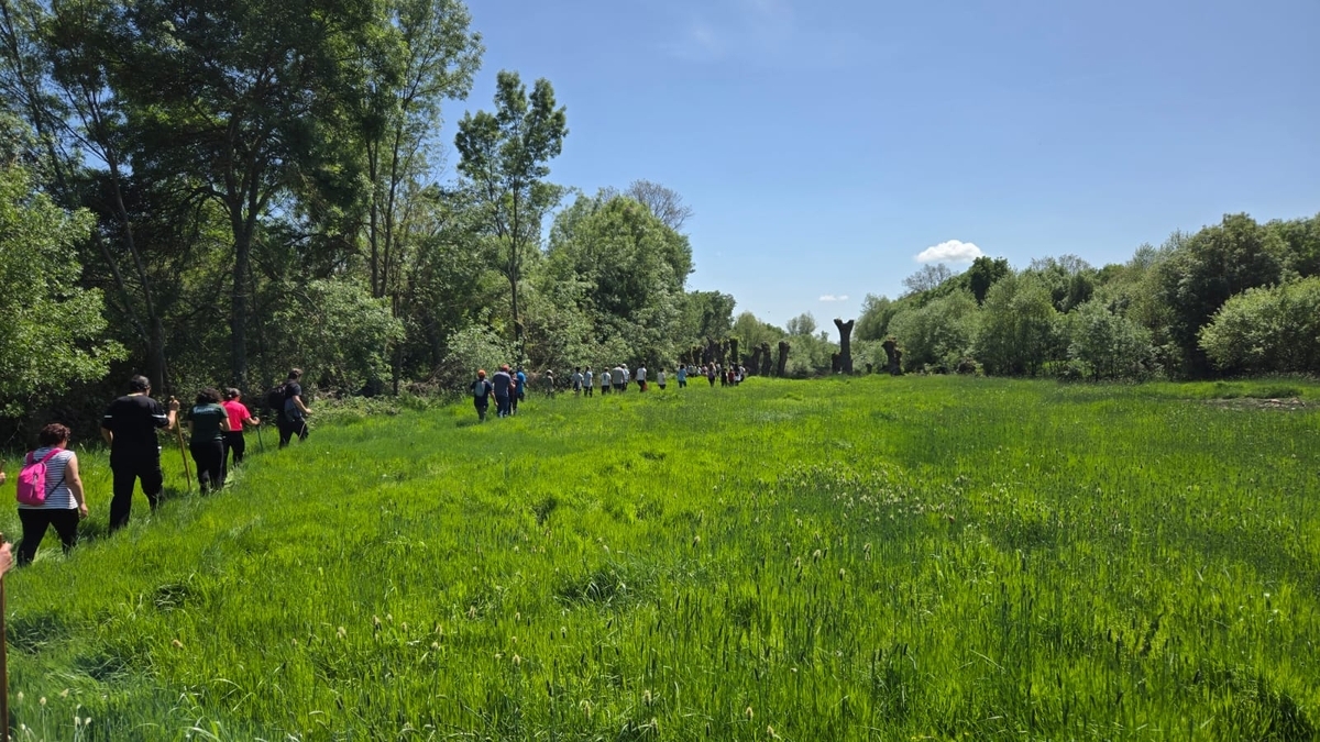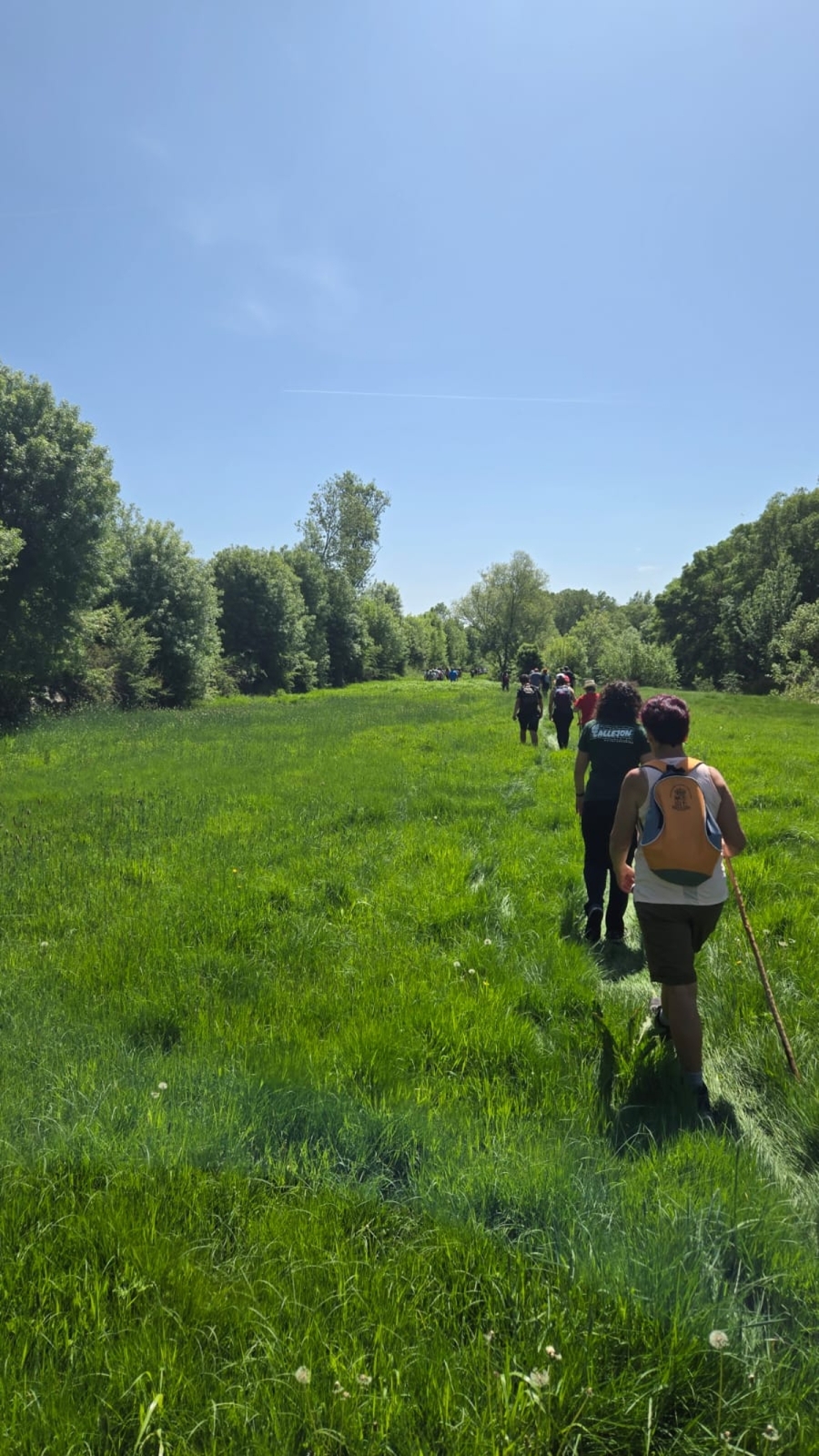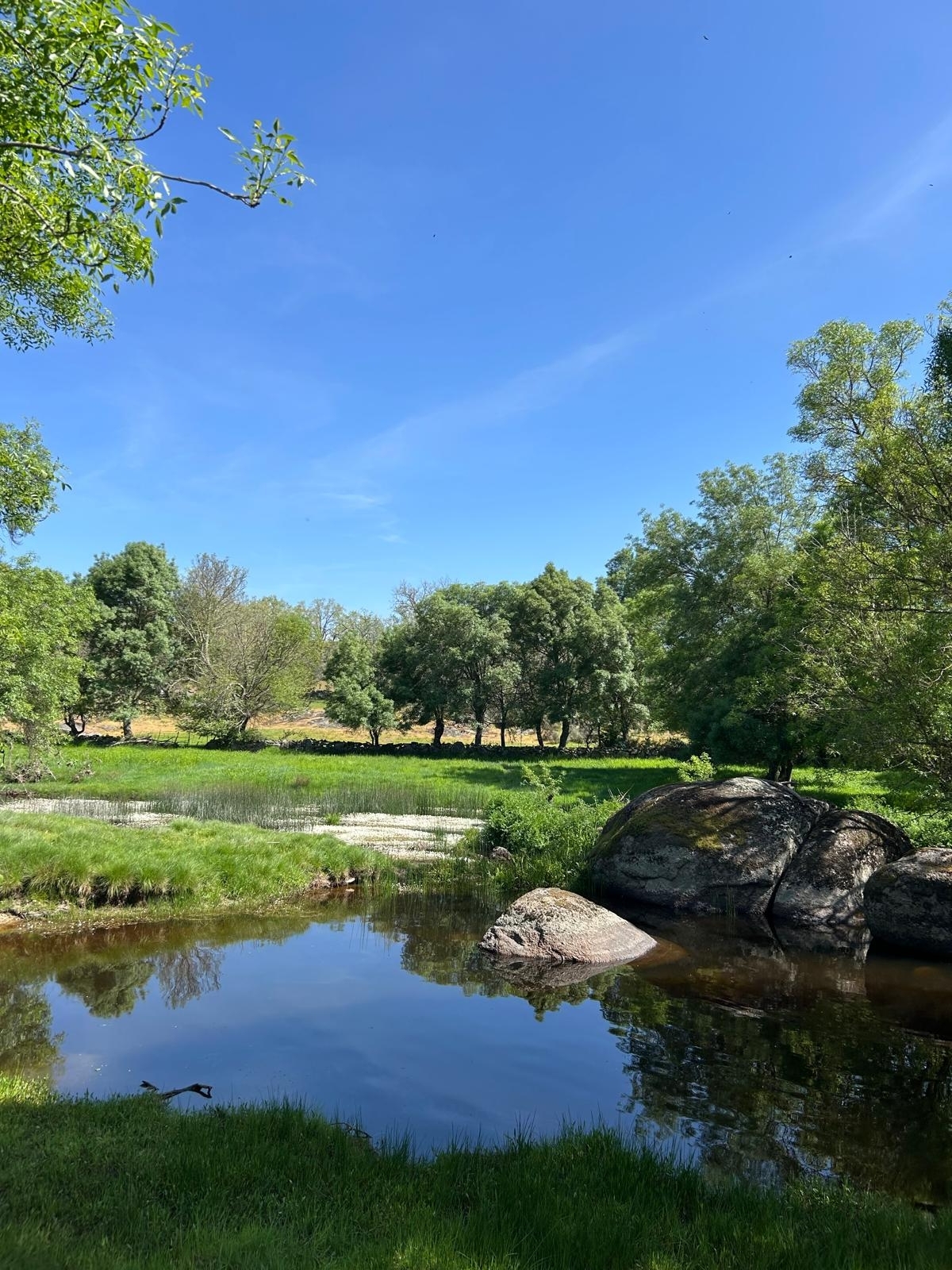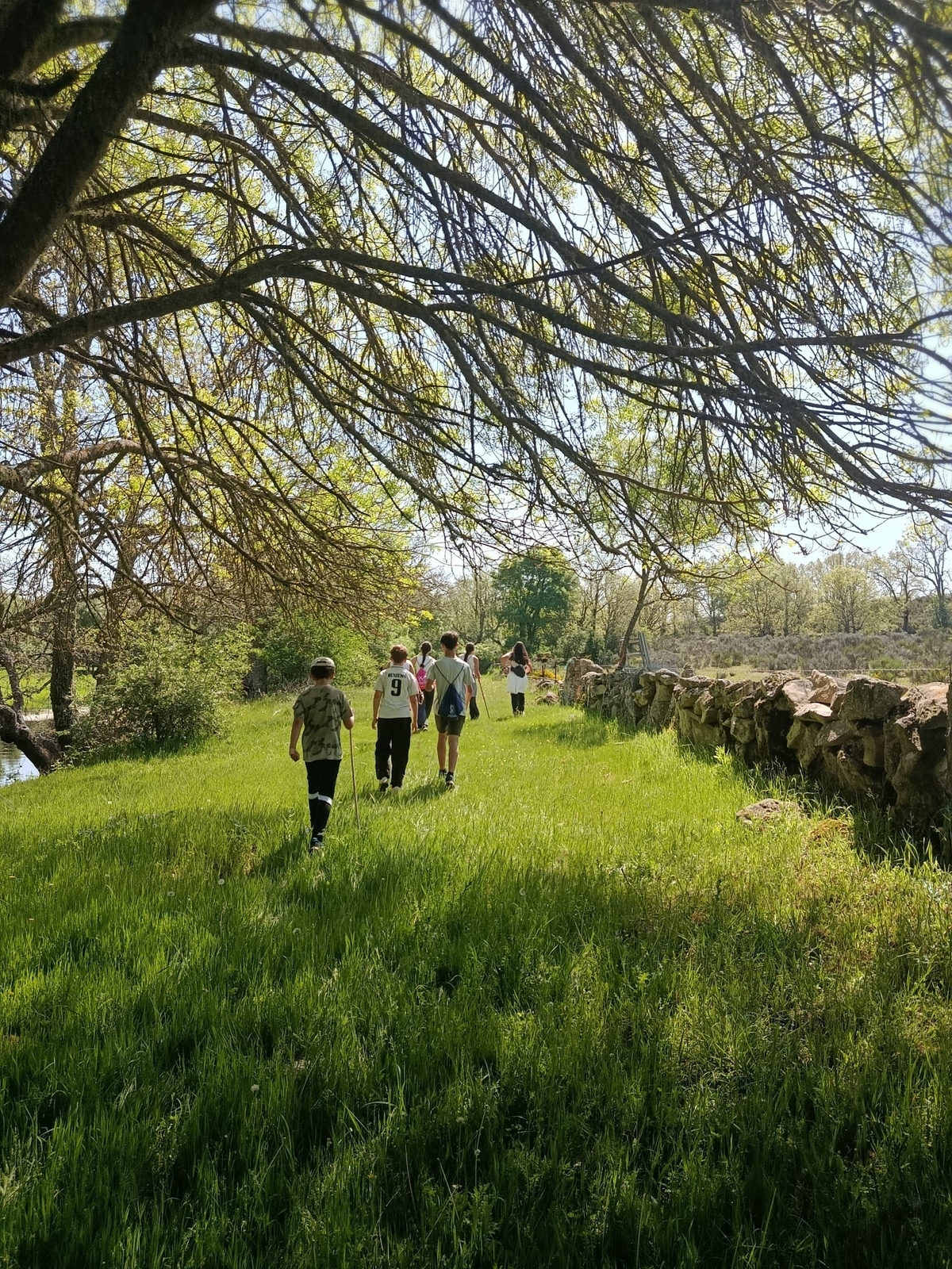 Tras la merecida pausa, la ruta continuó recorriendo las chorreras del río Uces y la vega de Pocito Redondo. En la Puente La Nava, los senderistas cambiaron de margen y recorrieron la orilla derecha del Río hasta llegar al Puente Germán, último paraje de paso antes de llegar al entorno de la mina de El Sancho, donde los participantes disfrutaron de una comida a base de carne asada a la brasa y de un postre rematado con la tradicional rosquilla. Tras el almuerzo, el paseo continuó hasta llegar al pueblo de Valderrodrigo.