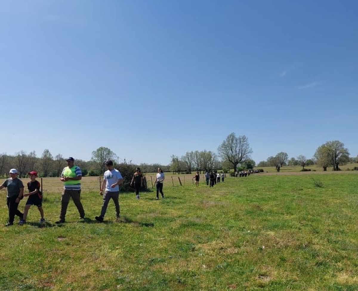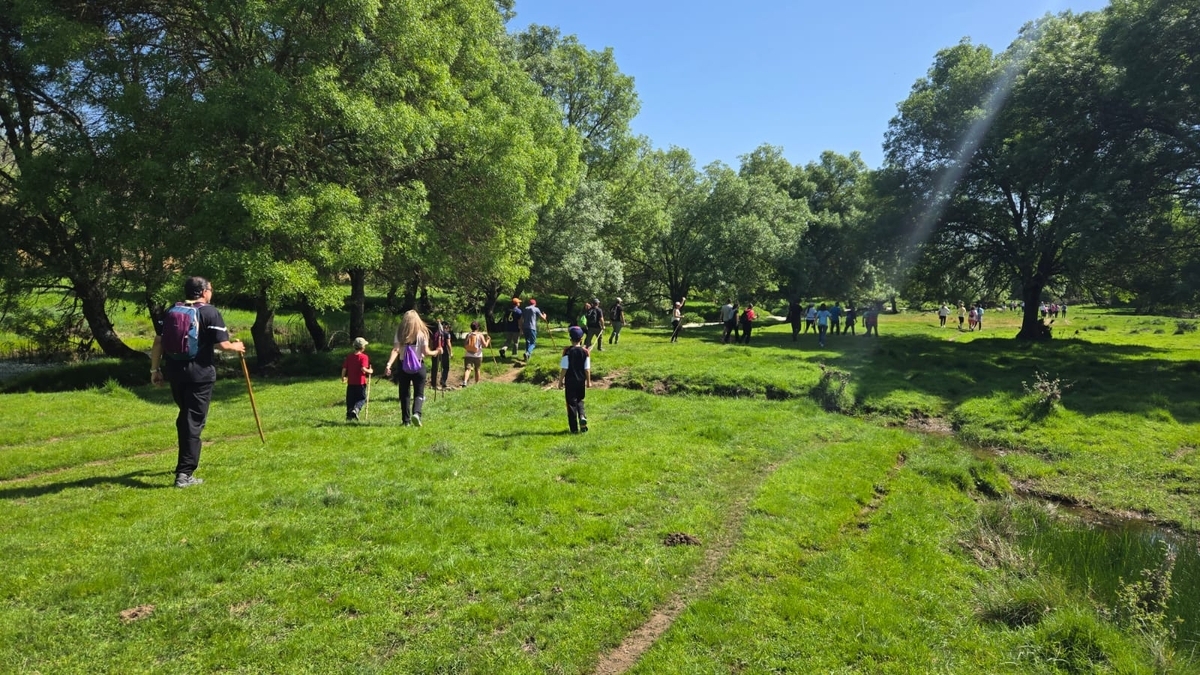La salida se daba a las 11 de la mañana desde la Plaza de la Iglesia tras la formalización de las inscripciones. Desde allí, los senderistas pusieron rumbo al antiguo pozo minero de los Coriscos para luego descender hasta el puente de El Ran, que cruza las aguas del río Uces. En este enclave tuvo lugar una parada para el avituallamiento, que permitió reponer fuerzas y disfrutar del paisaje en plena Vega del Uces.