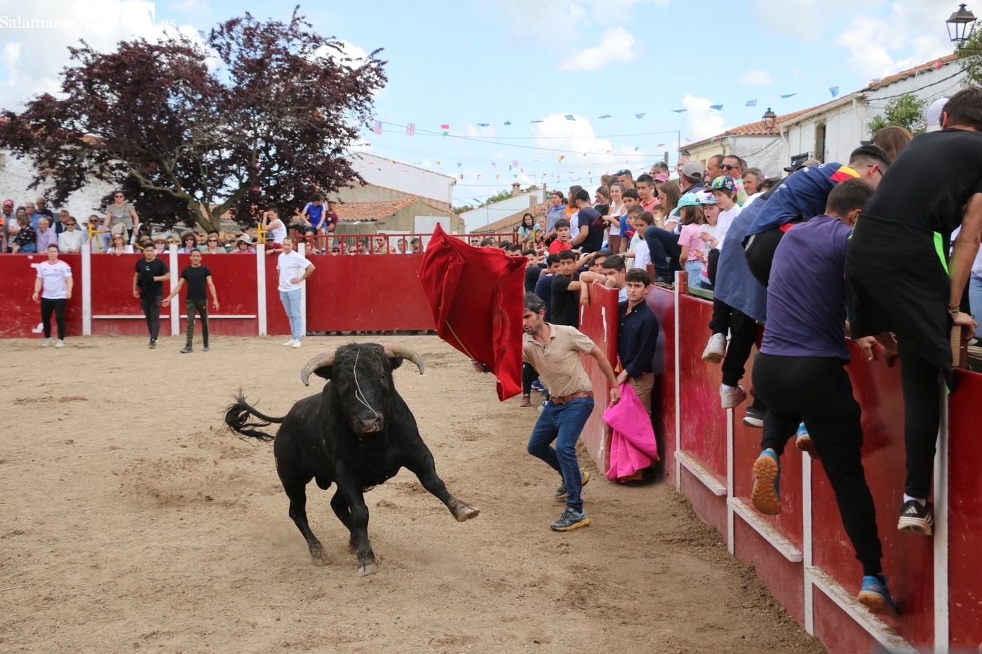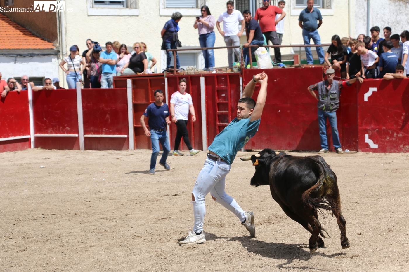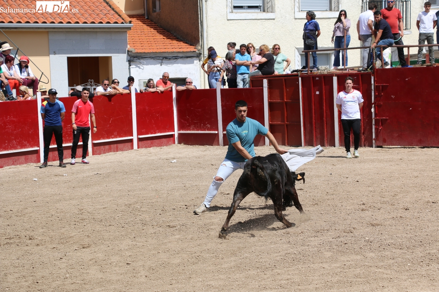 Los festejos taurinos populares son los protagonistas este domingo 26 de abril en Olmedo de Camaces, último día de las fiestas de San Jorge y que comenzaba con una entretenida capea después de una larga noche amenizada por la orquesta Princesa.