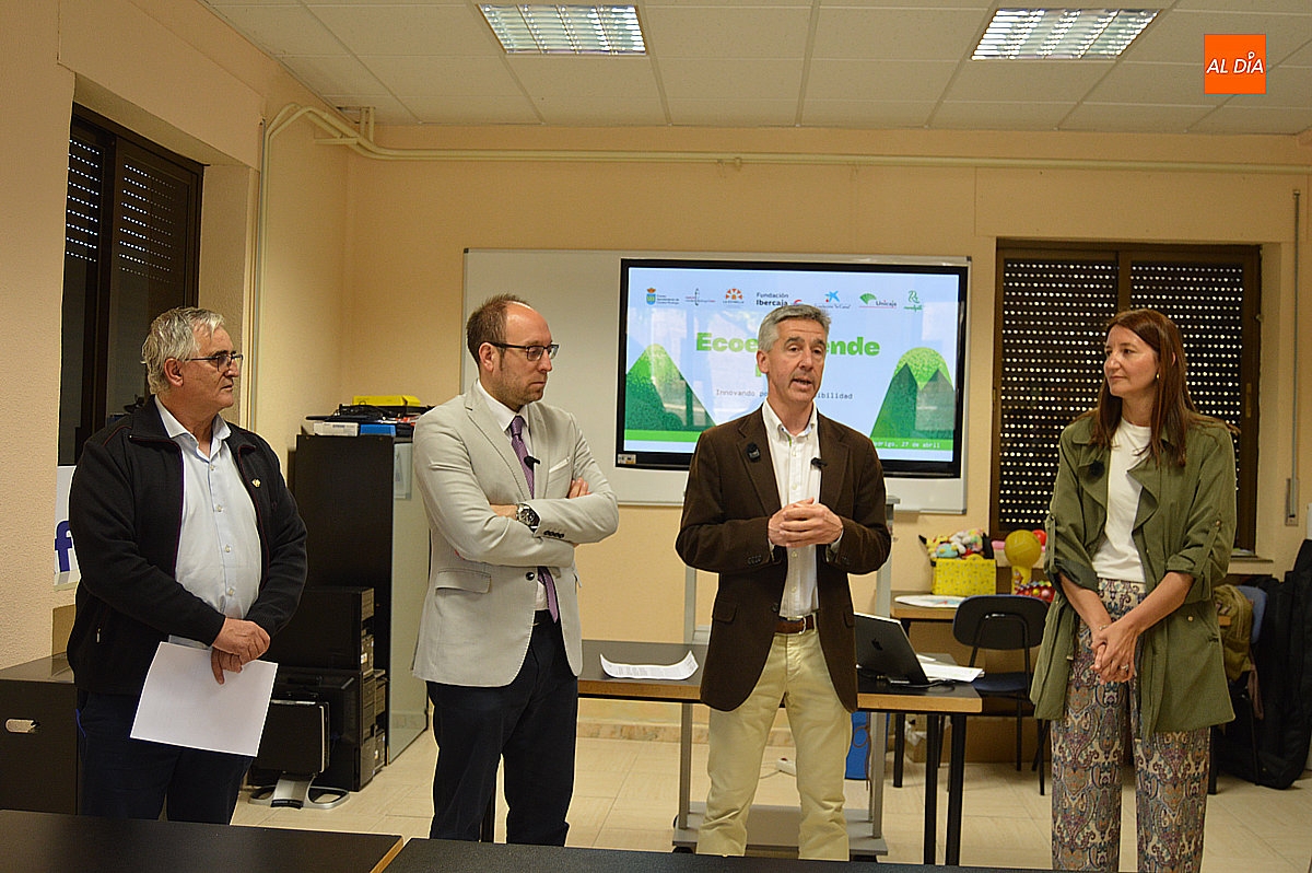 Ciudad Rodrigo ha acogido la presentación del proyecto ‘Ecoemprende Rural’, una iniciativa promovida por la Fundación Ciudad Rodrigo en colaboración con la empresa Ruralízate, que busca fomentar el emprendimiento sostenible entre los jóvenes de la comarca y frenar la despoblación. En esta presentación estuvieron el alcalde de Ciudad Rodrigo, Marcos Iglesias, directora de Ibercaja Sonia Benito Polo, representación de Fundación Ciudad Rodrigo,el presidente Manuel Barbero y el secretario Juan Carlos, de la empresa Rrualízate, Fuensanta Martín y también Jorge Rodríguez director del IES Fray Diego Tadeo.