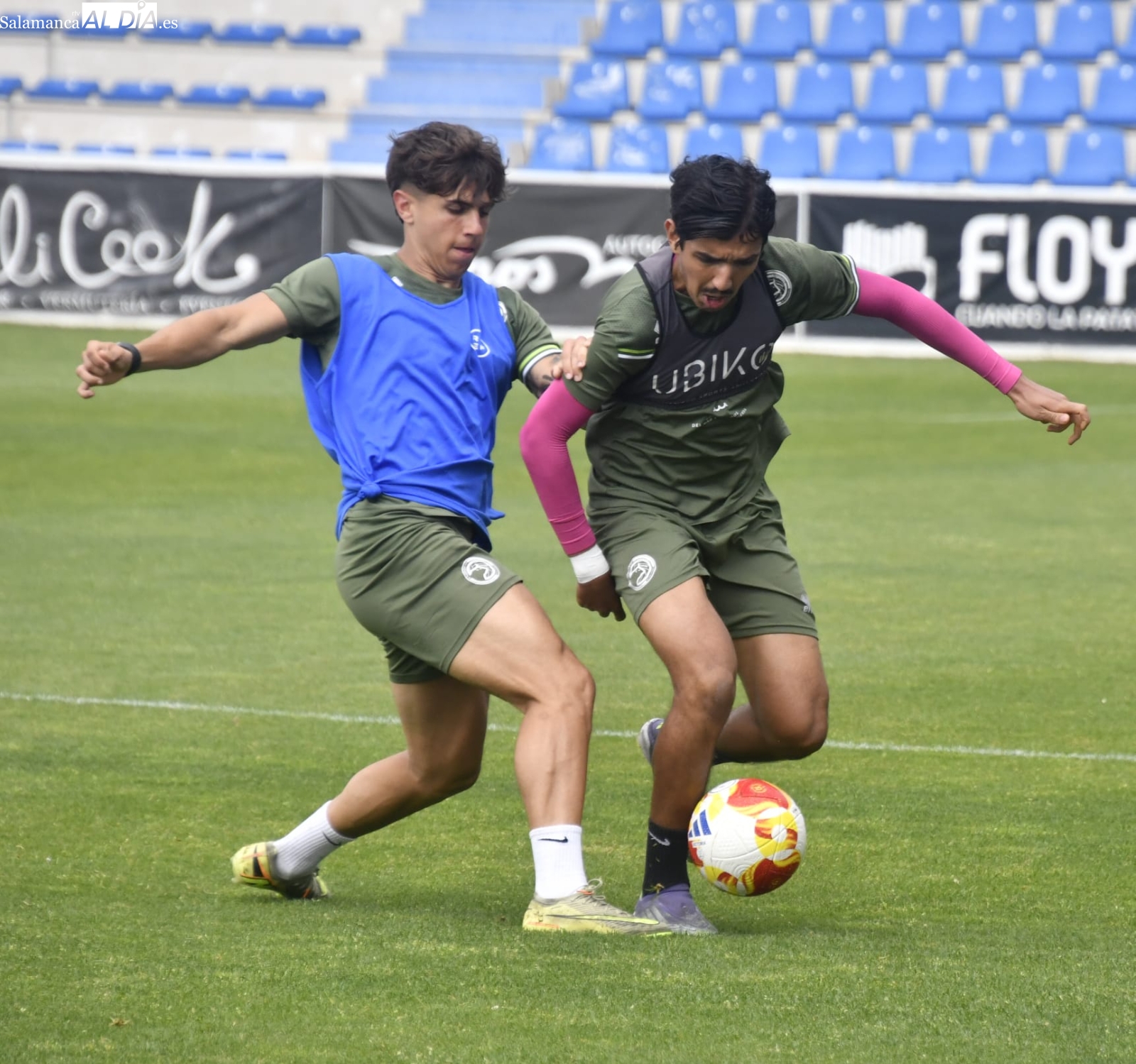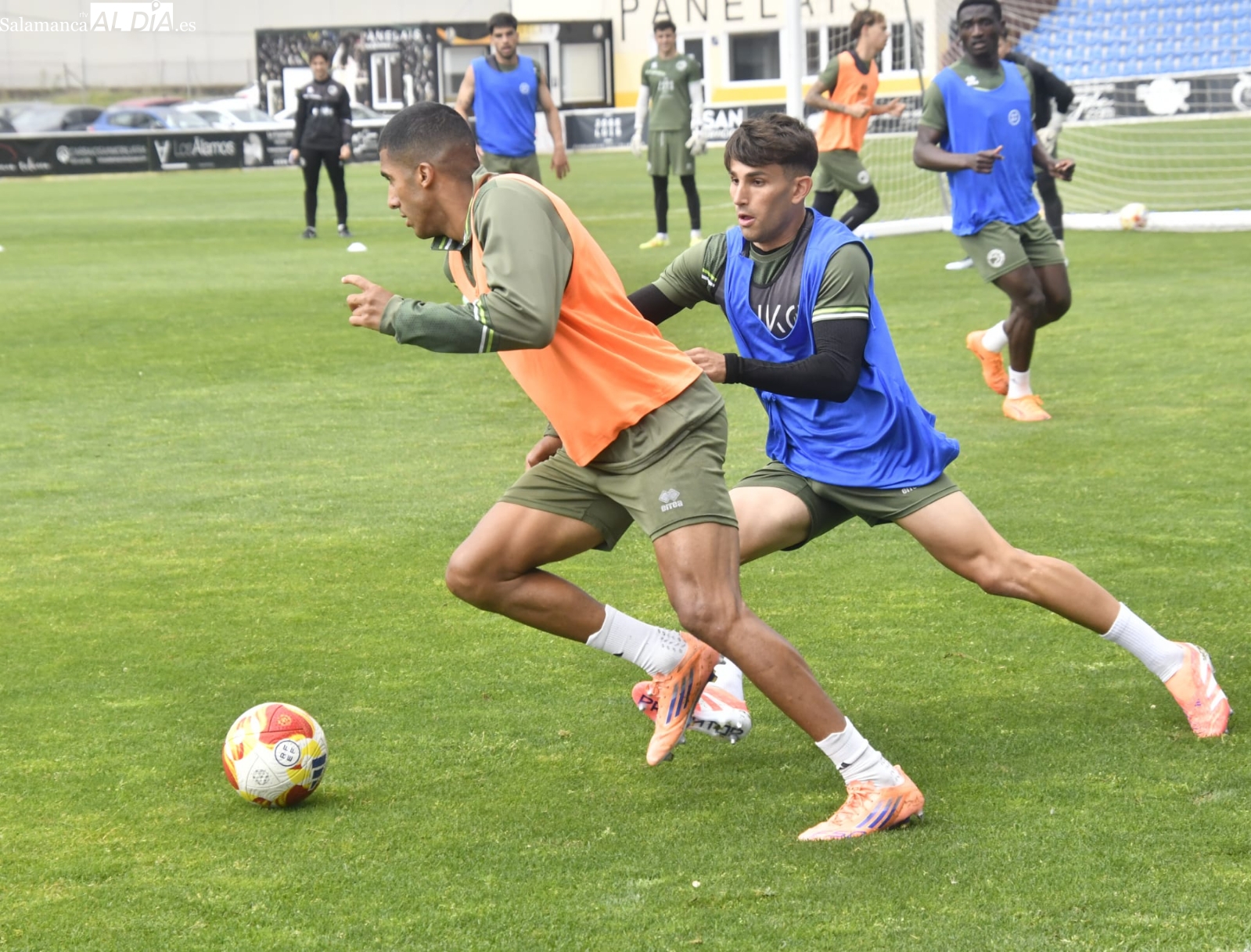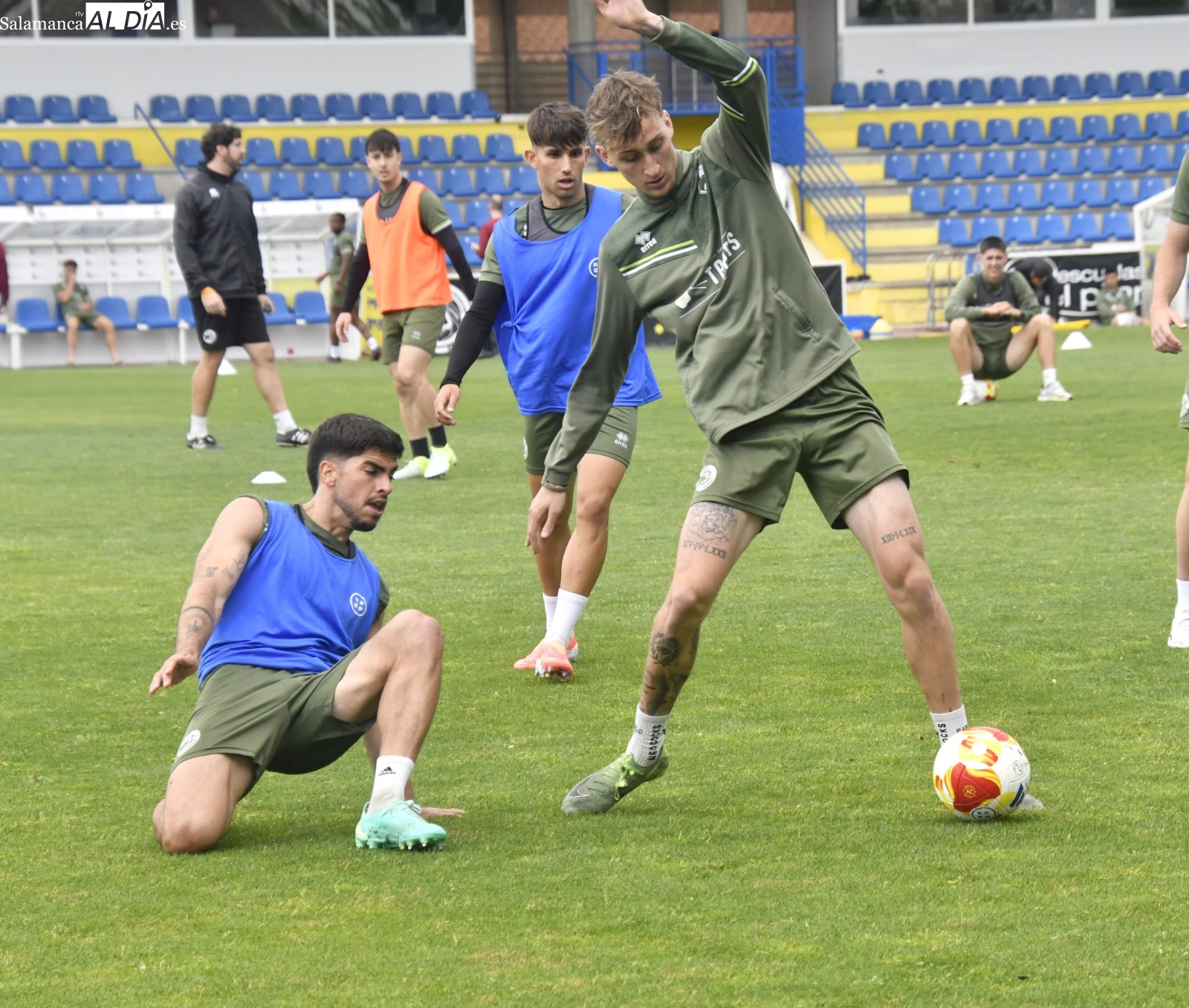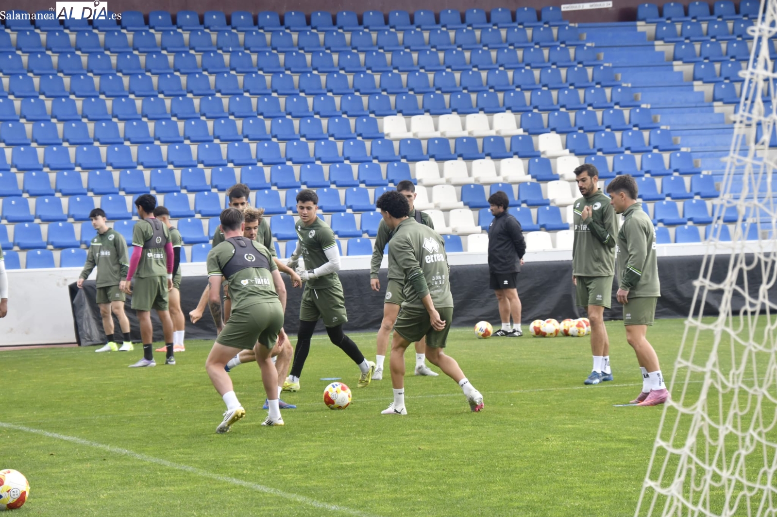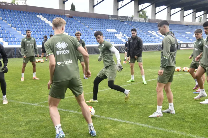 Asimismo, Mario Simón ha tenido que apañarse en el estadio para llevar a cabo la sesión de trabajo en busca de preparar a sus jugadores de la mejor de las formas para la primera de las cuatros 'fiestas' que le quedan al curso. Olmedo y Gorjón no han acabado el entrenamiento, aunque parece que es por gestionar las cargas de trabajo y podrán estar OK en Madrid.