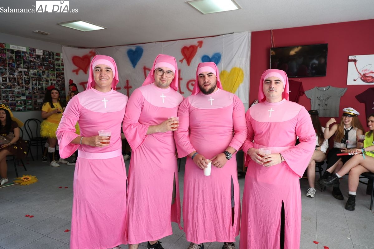 El buen ambiente es la nota predominante de una jornada que fomenta la convivencia fuera de las aulas. Como es habitual en este tipo de eventos universitarios, la imaginación ha tomado el protagonismo a través de los coloridos disfraces elegidos por los grupos de estudiantes. La banda sonora de la celebración corría a cargo de una tradicional charanga.