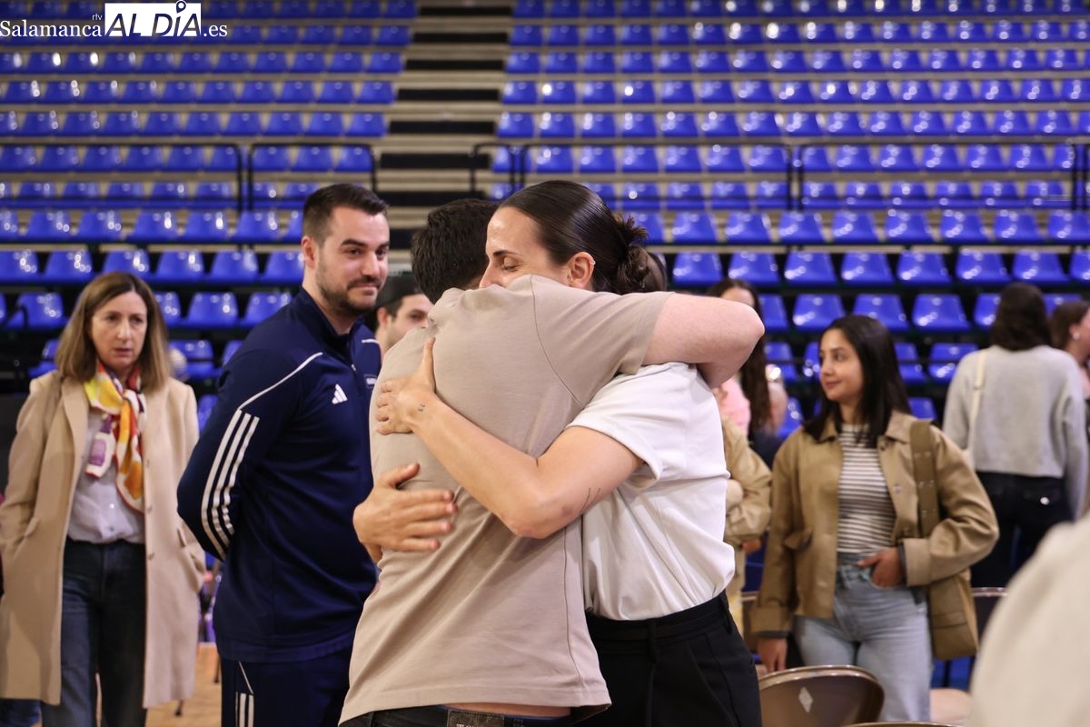 El acto ha contado con la presencia de todas sus compañeras de vestuario, entre las que se encontraban jugadoras como Iyana Martín, también visiblemente afectadas. Asimismo, han asistido miembros del cuerpo técnico actual y de años anteriores, demostrando el profundo calado humano que la jugadora deja en el baloncesto salmantino.