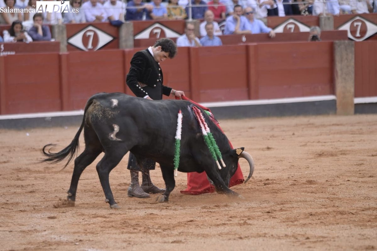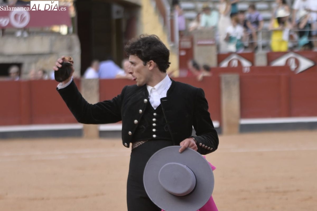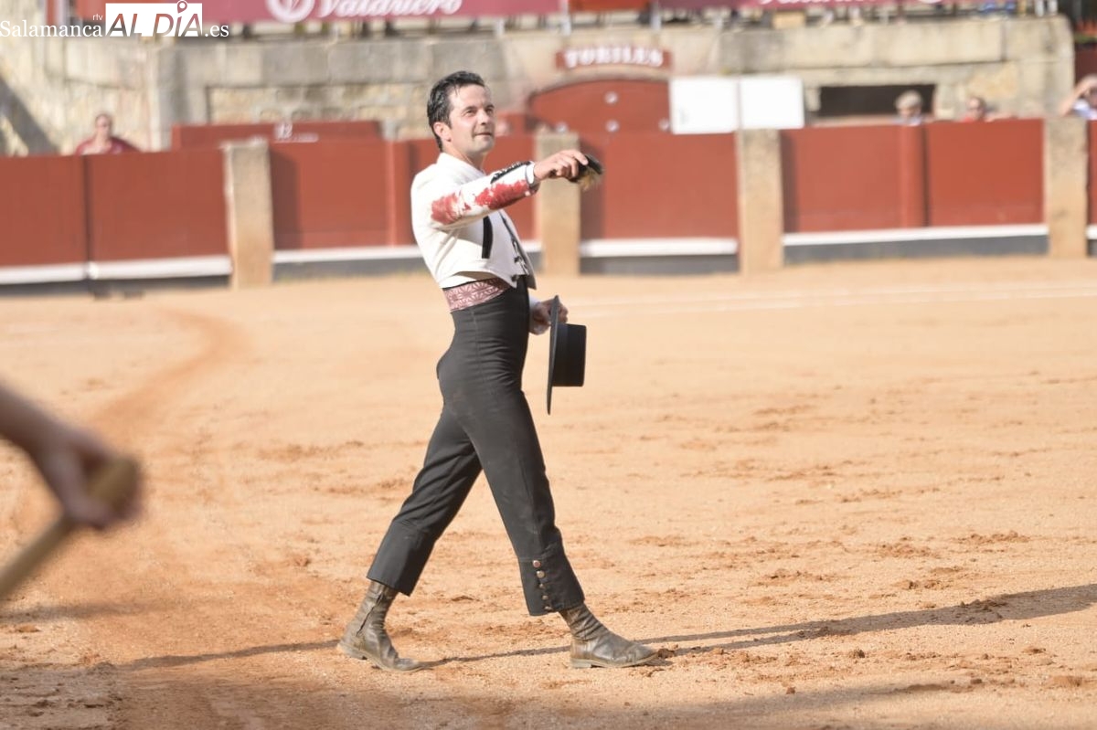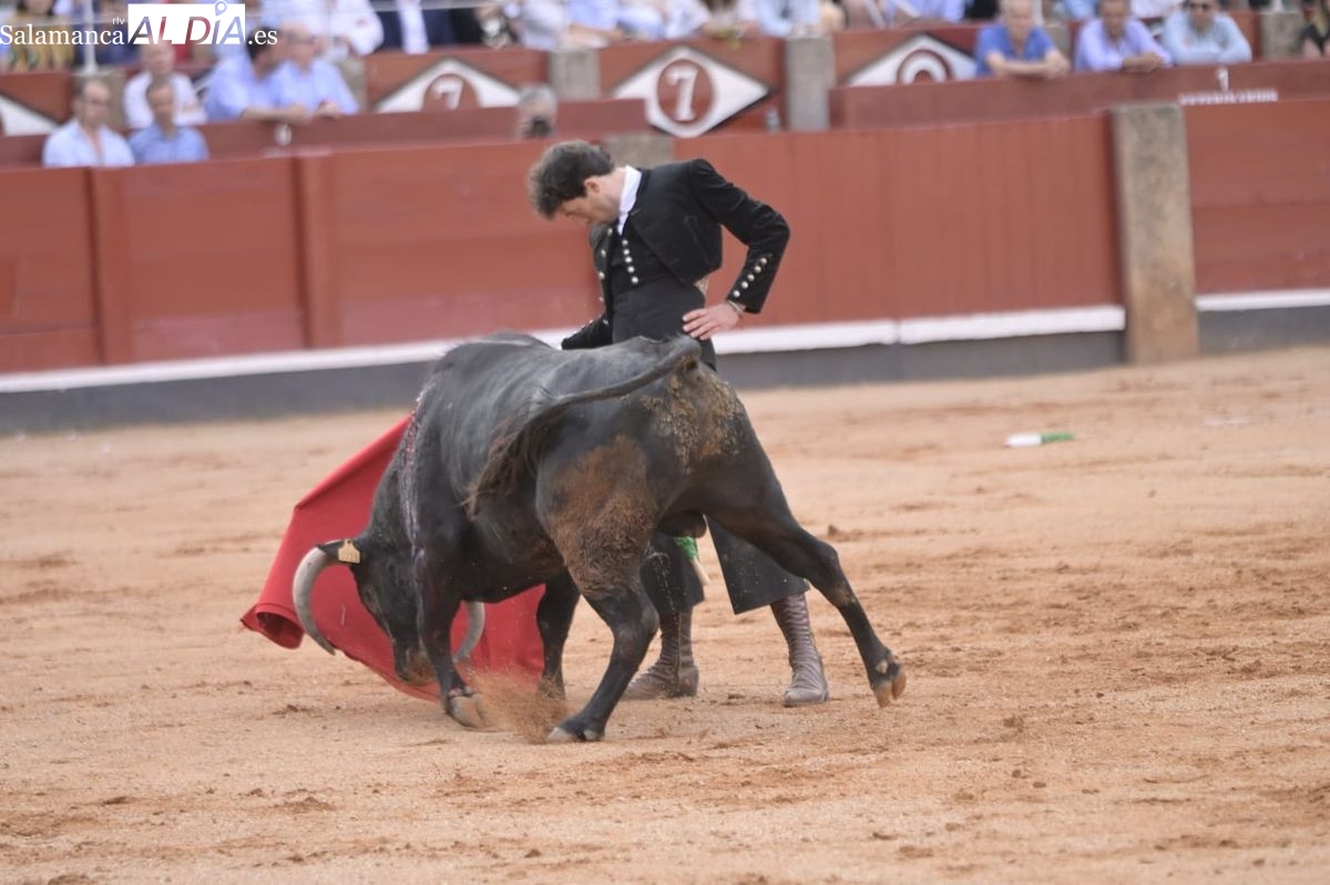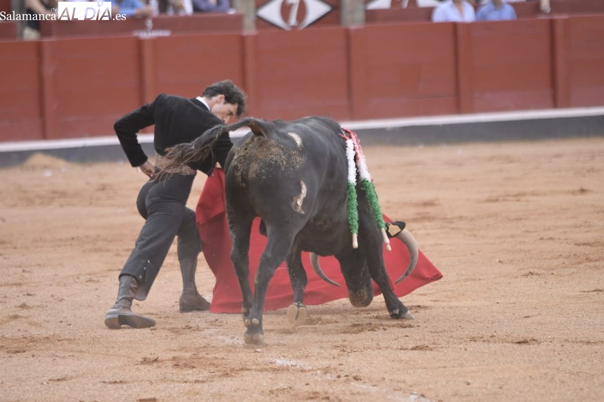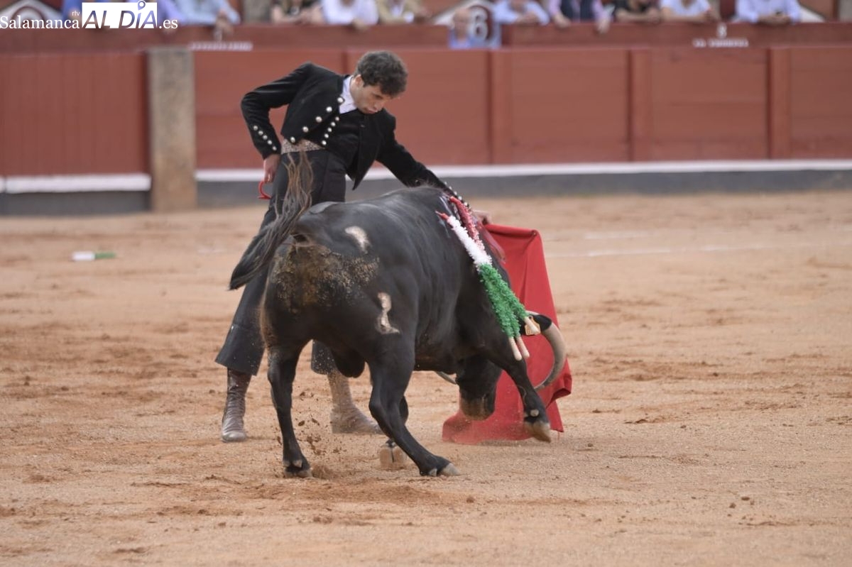 La actuación de más ecode la tarde fue la de Manuel Diosleguarde, que cortó las dos orejas al quinto de la tarde tras una faena de absoluta entrega rubricada con un espadazo soberbio volcándose en el morrillo, saliendo prendido de forma dramática y dejando atrás los fantasmas que habitaban en su cabeza después de la terrible cornada que sufrió en Cuéllar hace casi tres años. Después de aquel fatídico percance se le habían escapado varios triunfos a Diosleguarde por la vía de la espada. No se lo podía dejar marchar en Salamanca y ejecutó la suerte con una verdad absoluta.
