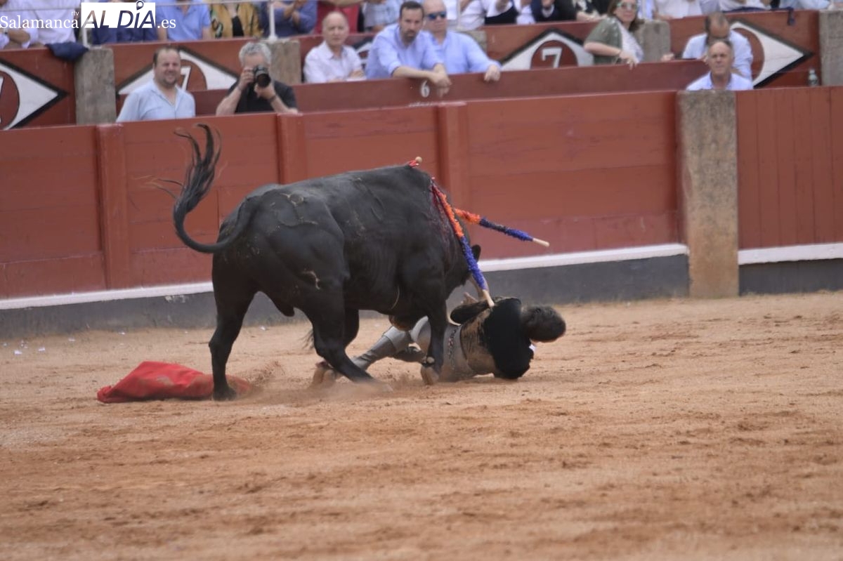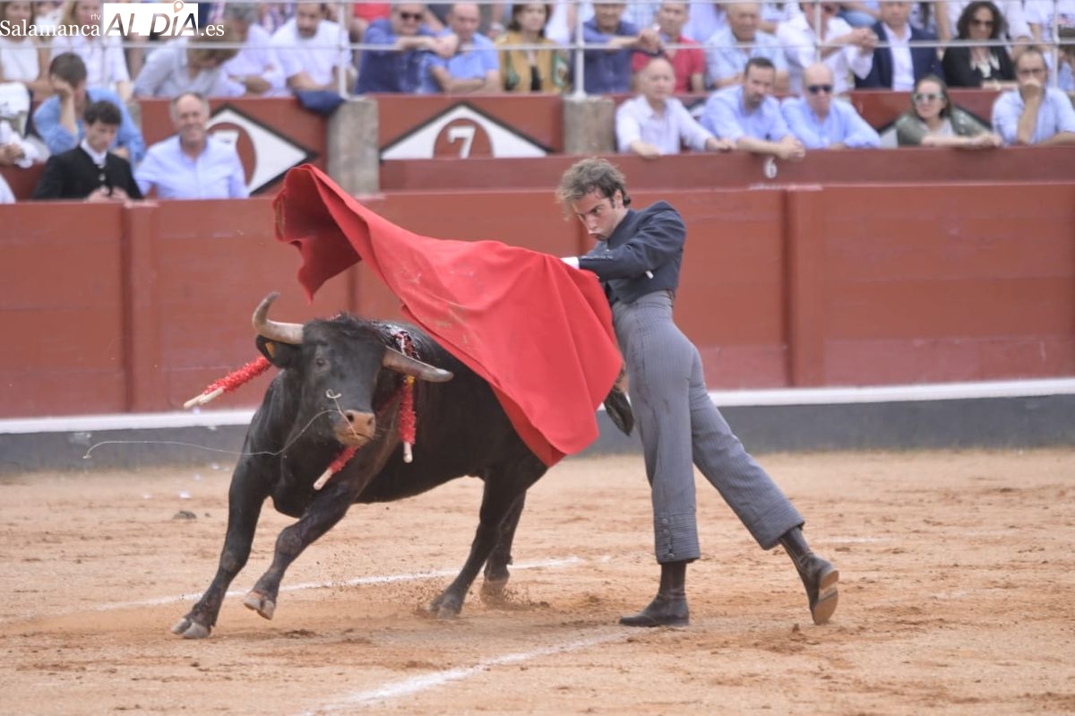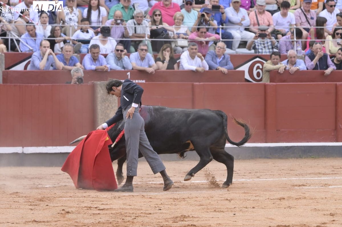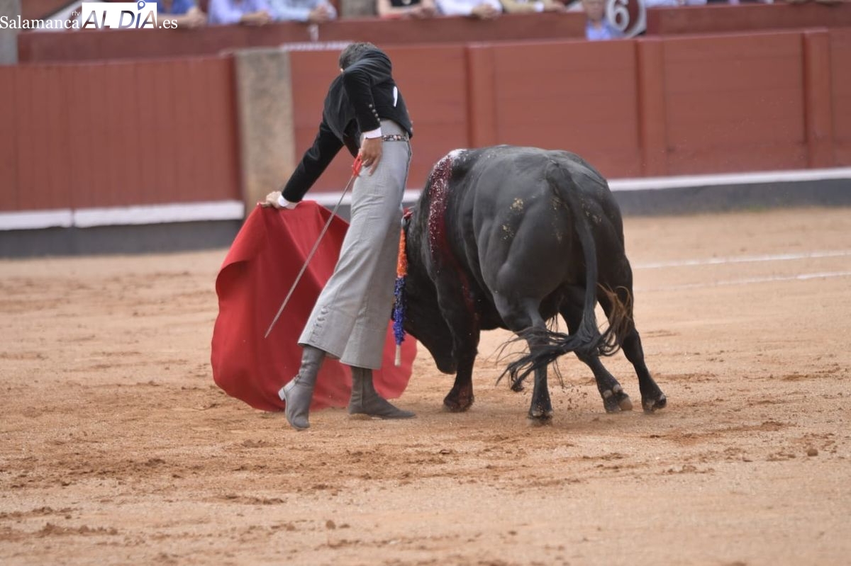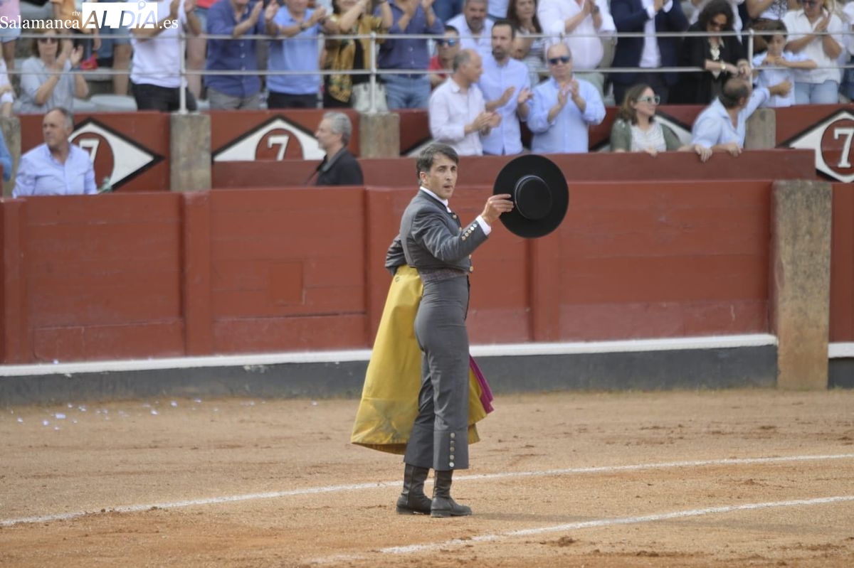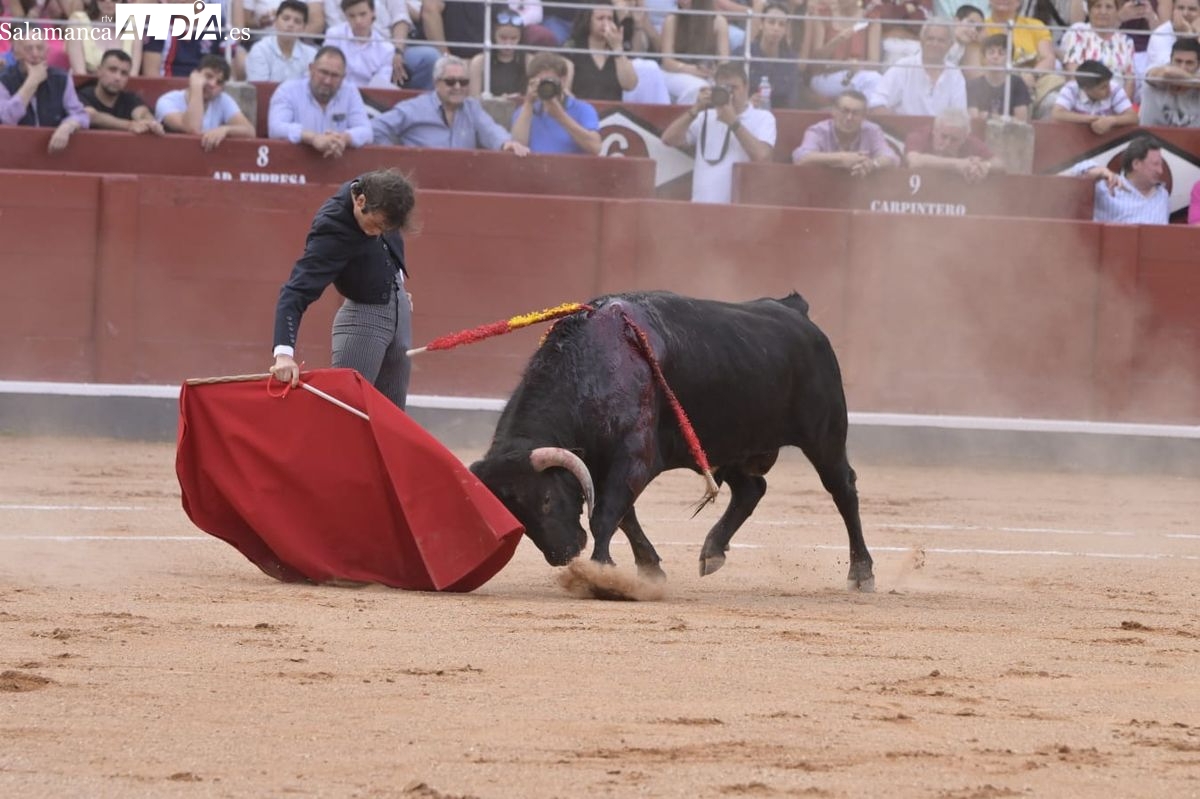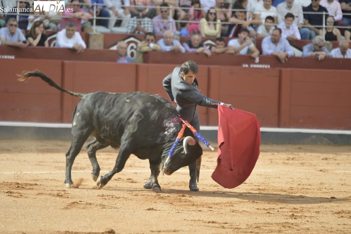 La actuación de más ecode la tarde fue la de Manuel Diosleguarde, que cortó las dos orejas al quinto de la tarde tras una faena de absoluta entrega rubricada con un espadazo soberbio volcándose en el morrillo, saliendo prendido de forma dramática y dejando atrás los fantasmas que habitaban en su cabeza después de la terrible cornada que sufrió en Cuéllar hace casi tres años. Después de aquel fatídico percance se le habían escapado varios triunfos a Diosleguarde por la vía de la espada. No se lo podía dejar marchar en Salamanca y ejecutó la suerte con una verdad absoluta.