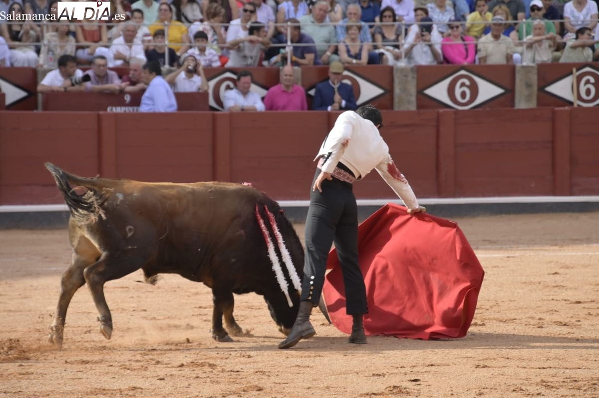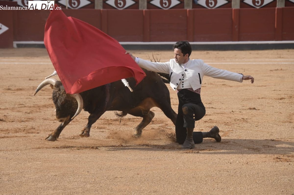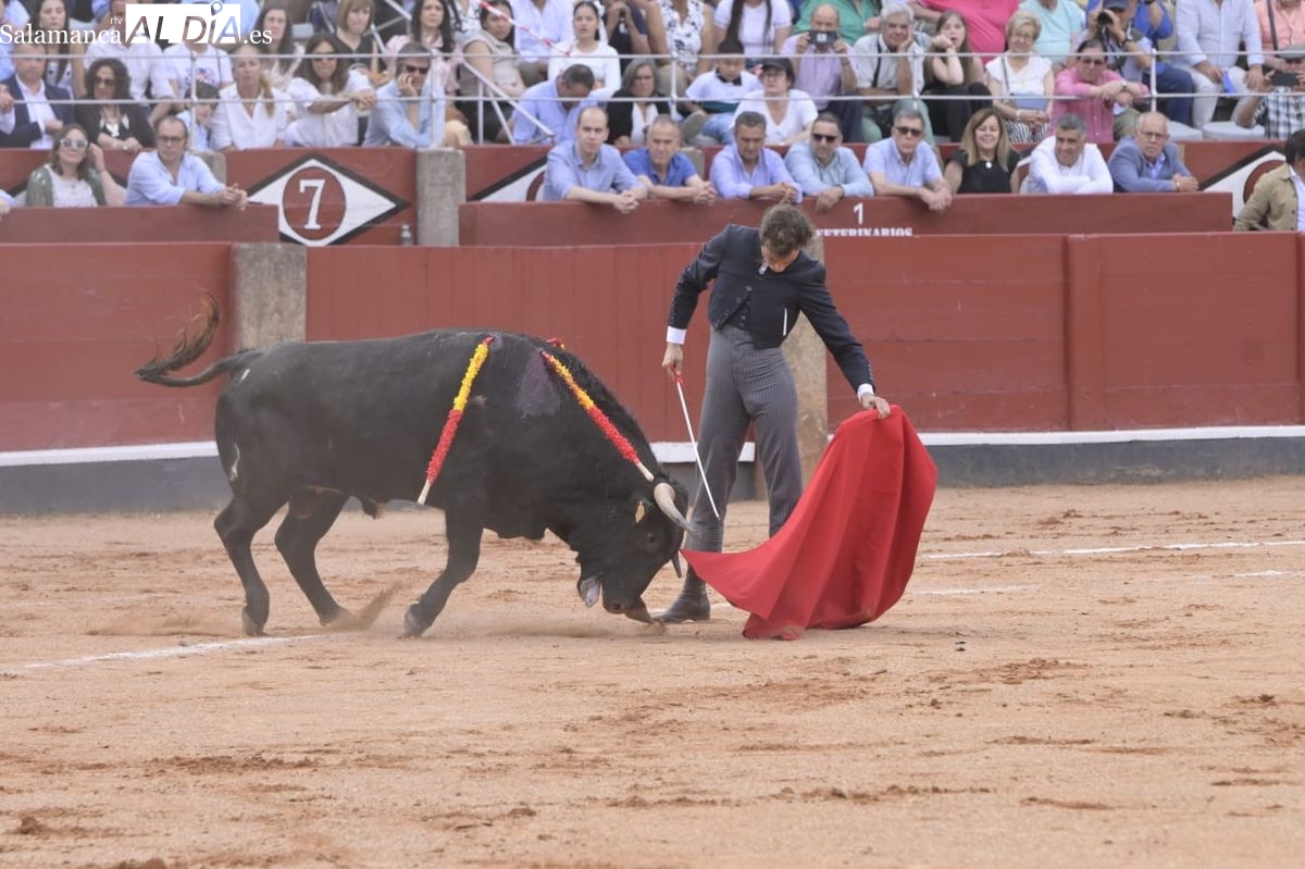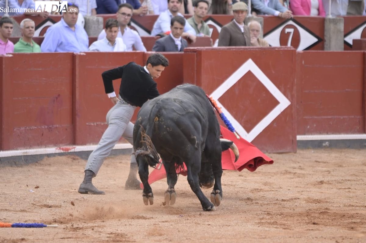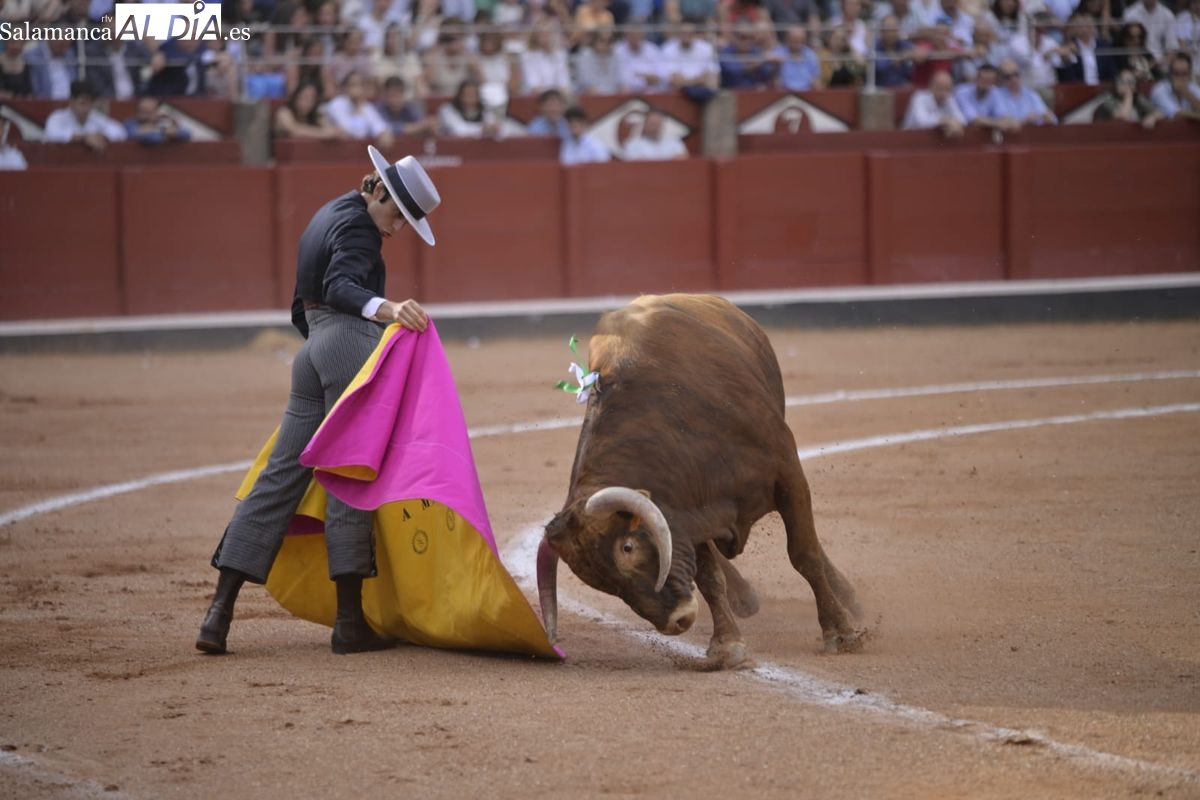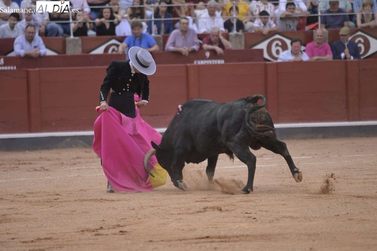 La actuación de más ecode la tarde fue la de Manuel Diosleguarde, que cortó las dos orejas al quinto de la tarde tras una faena de absoluta entrega rubricada con un espadazo soberbio volcándose en el morrillo, saliendo prendido de forma dramática y dejando atrás los fantasmas que habitaban en su cabeza después de la terrible cornada que sufrió en Cuéllar hace casi tres años. Después de aquel fatídico percance se le habían escapado varios triunfos a Diosleguarde por la vía de la espada. No se lo podía dejar marchar en Salamanca y ejecutó la suerte con una verdad absoluta.