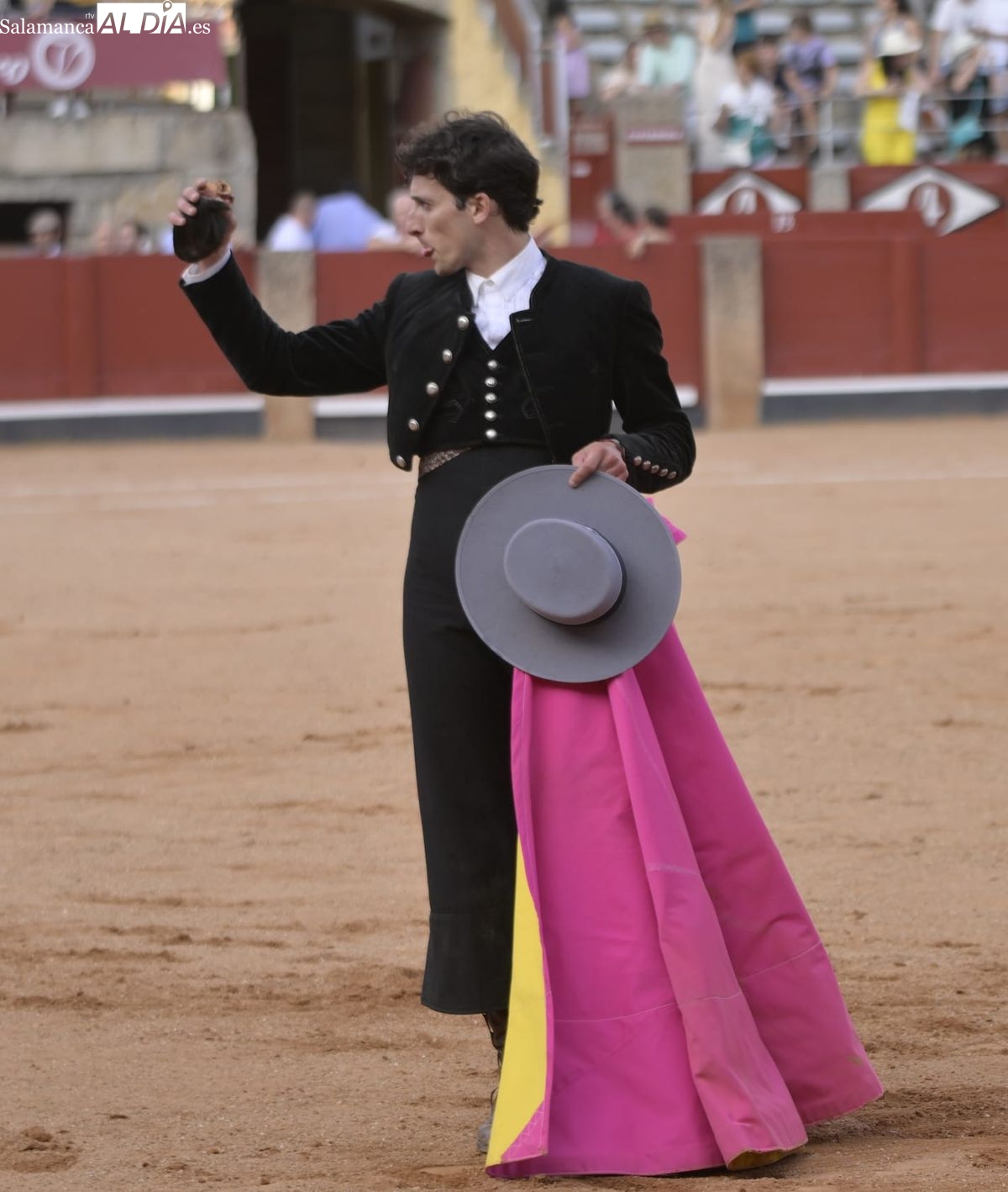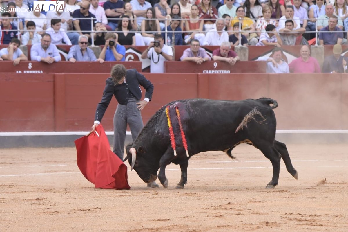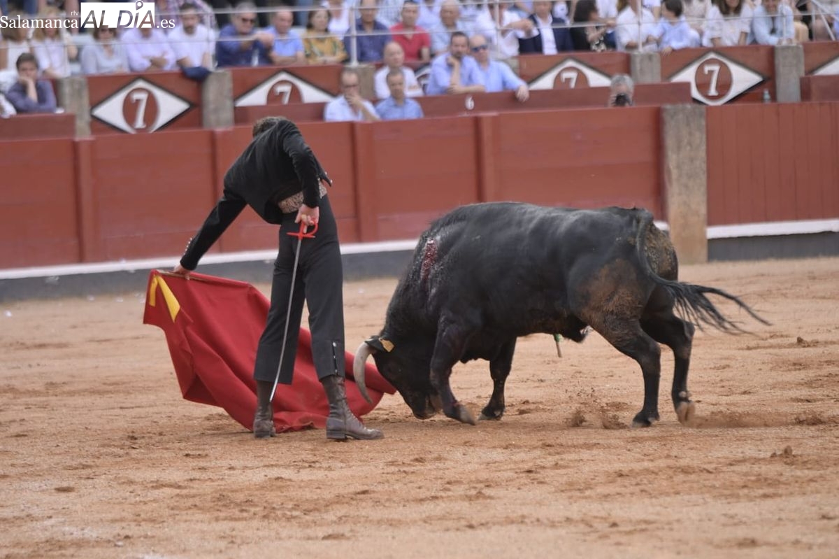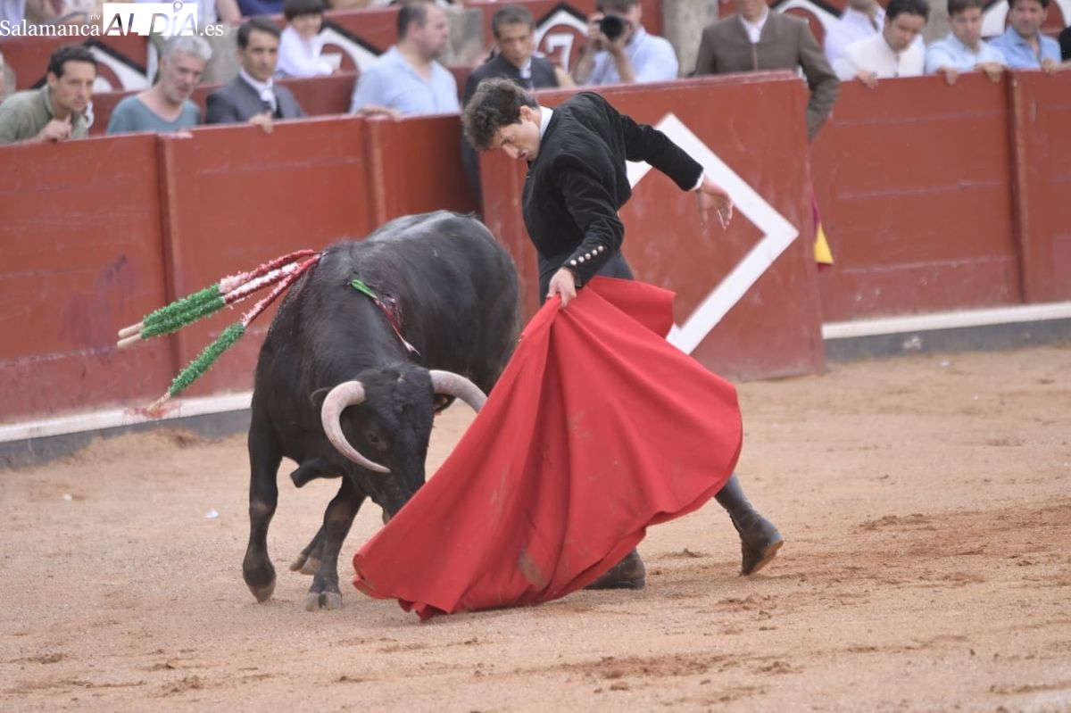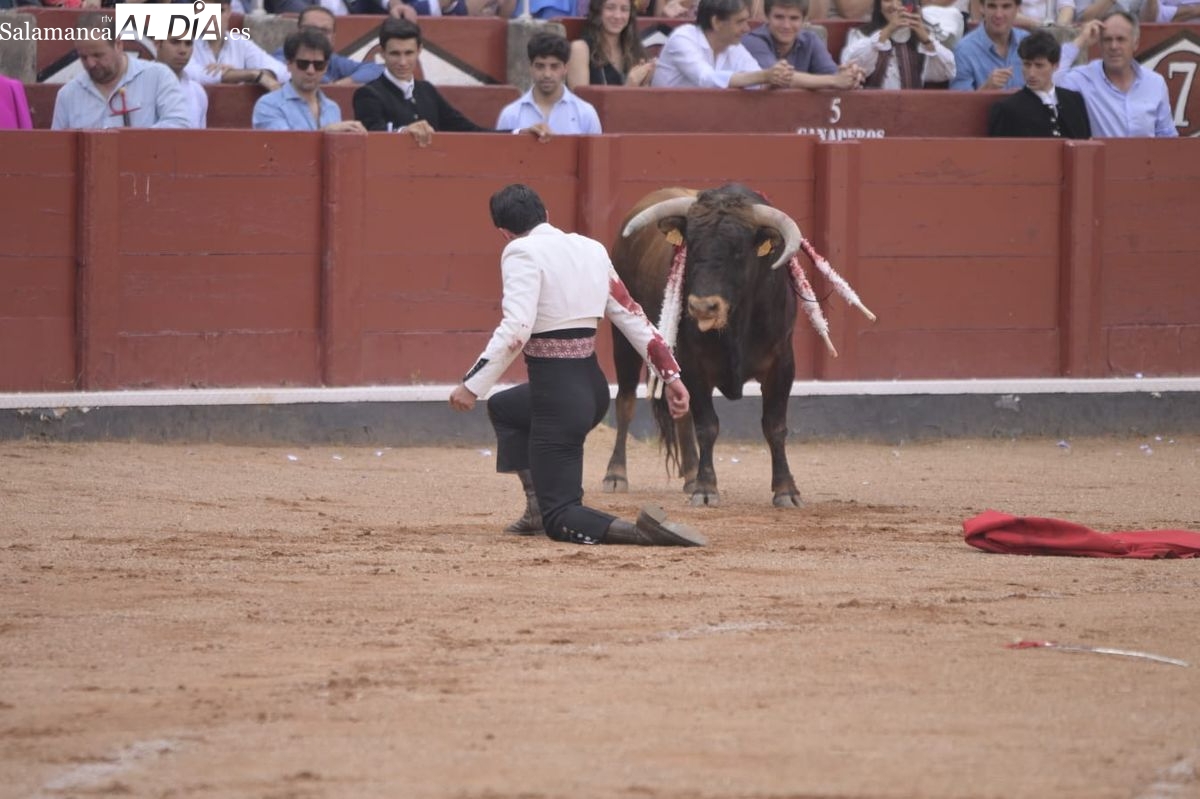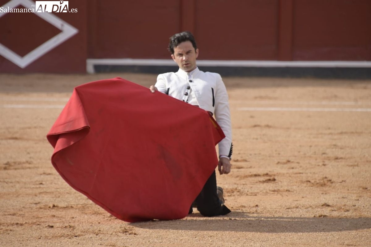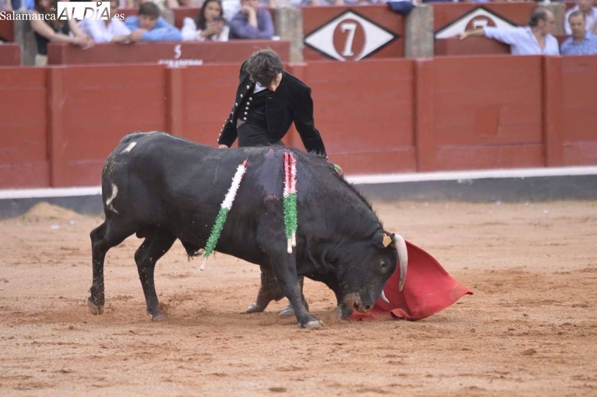 La actuación de más ecode la tarde fue la de Manuel Diosleguarde, que cortó las dos orejas al quinto de la tarde tras una faena de absoluta entrega rubricada con un espadazo soberbio volcándose en el morrillo, saliendo prendido de forma dramática y dejando atrás los fantasmas que habitaban en su cabeza después de la terrible cornada que sufrió en Cuéllar hace casi tres años. Después de aquel fatídico percance se le habían escapado varios triunfos a Diosleguarde por la vía de la espada. No se lo podía dejar marchar en Salamanca y ejecutó la suerte con una verdad absoluta.
