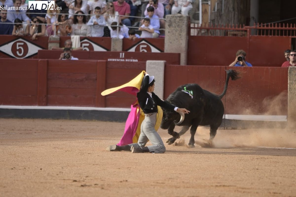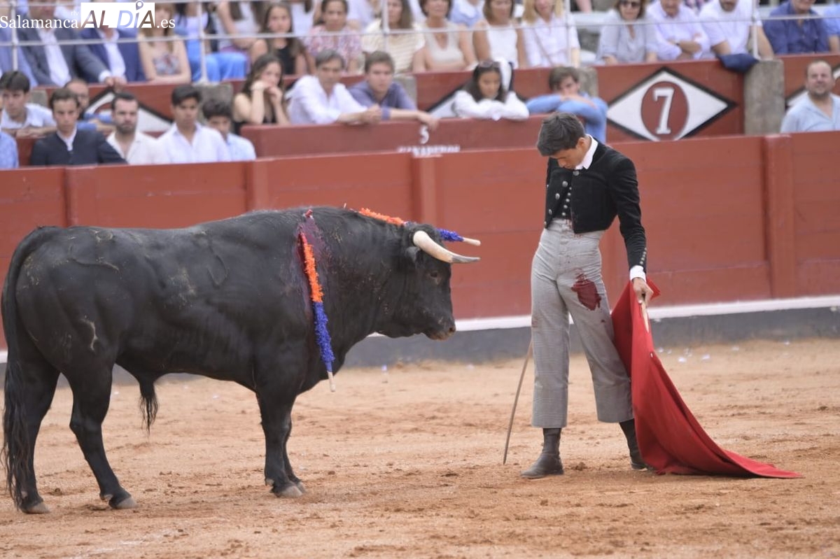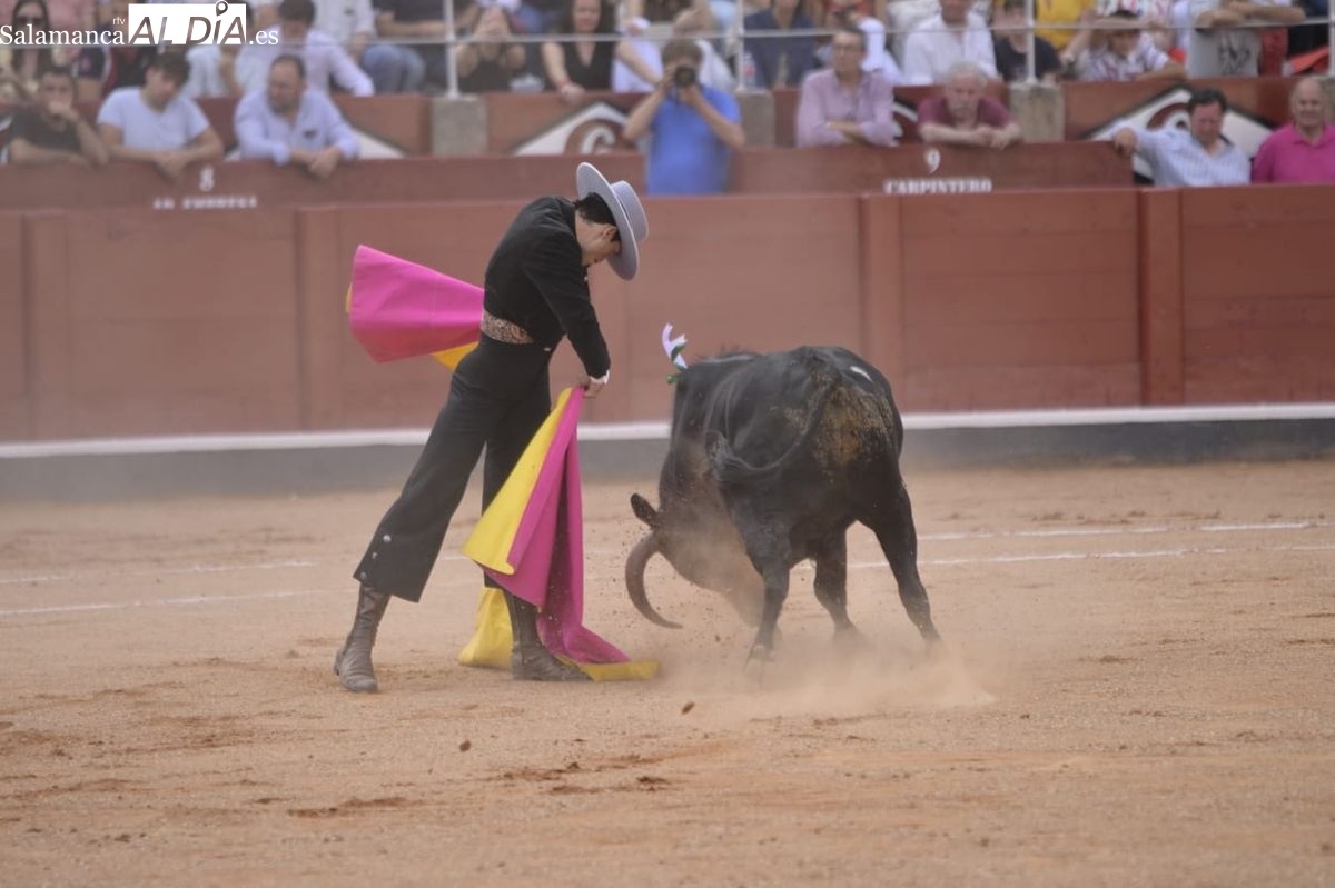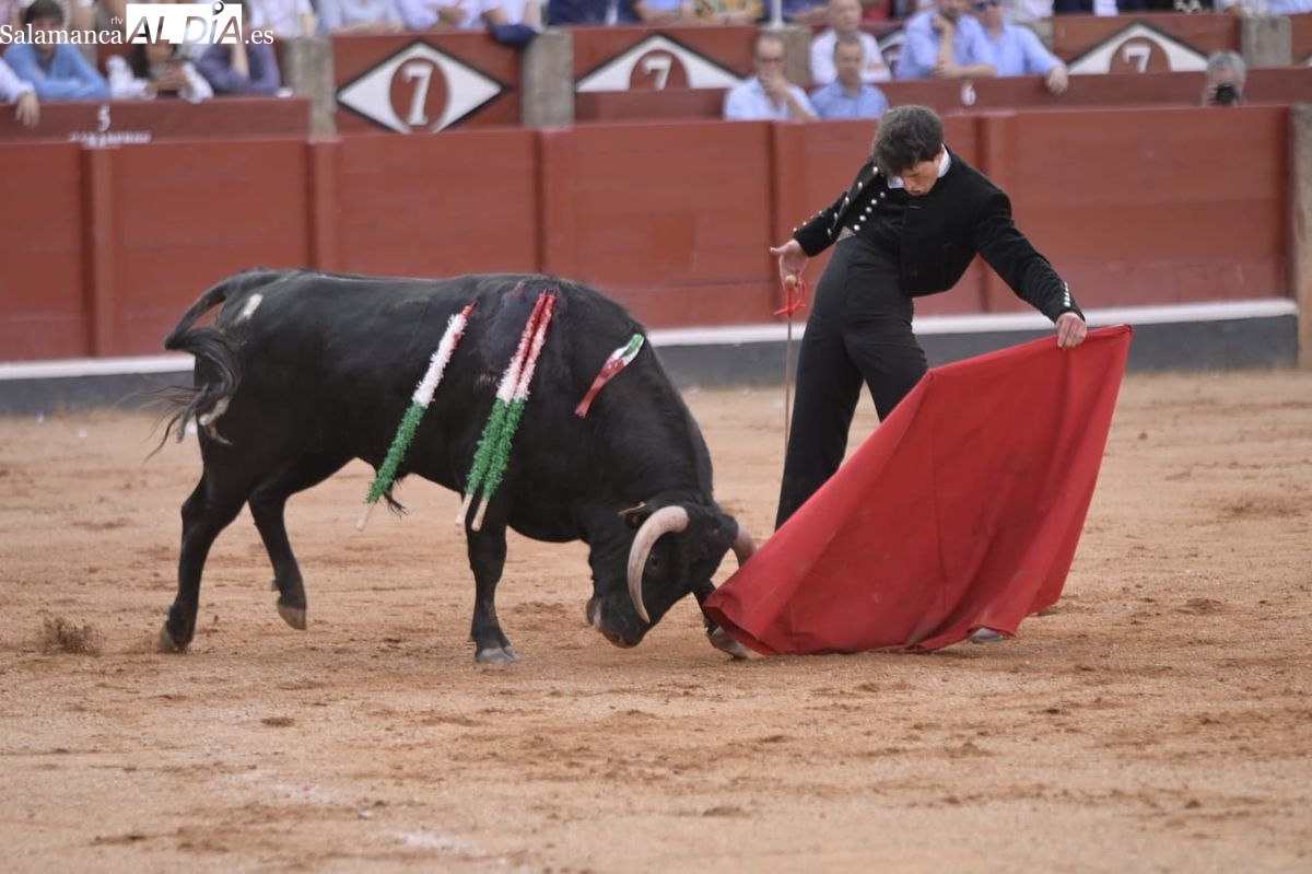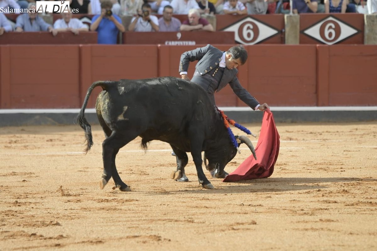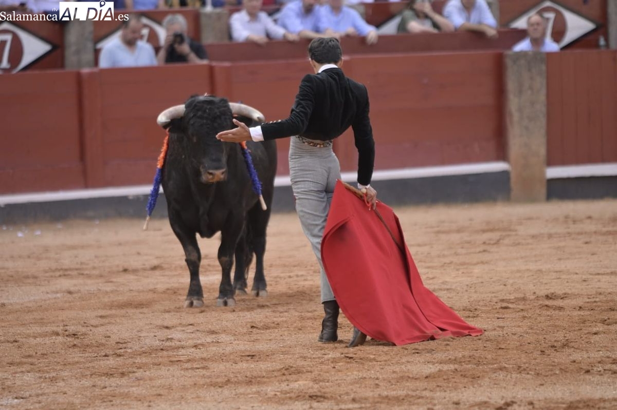 La actuación de más ecode la tarde fue la de Manuel Diosleguarde, que cortó las dos orejas al quinto de la tarde tras una faena de absoluta entrega rubricada con un espadazo soberbio volcándose en el morrillo, saliendo prendido de forma dramática y dejando atrás los fantasmas que habitaban en su cabeza después de la terrible cornada que sufrió en Cuéllar hace casi tres años. Después de aquel fatídico percance se le habían escapado varios triunfos a Diosleguarde por la vía de la espada. No se lo podía dejar marchar en Salamanca y ejecutó la suerte con una verdad absoluta.